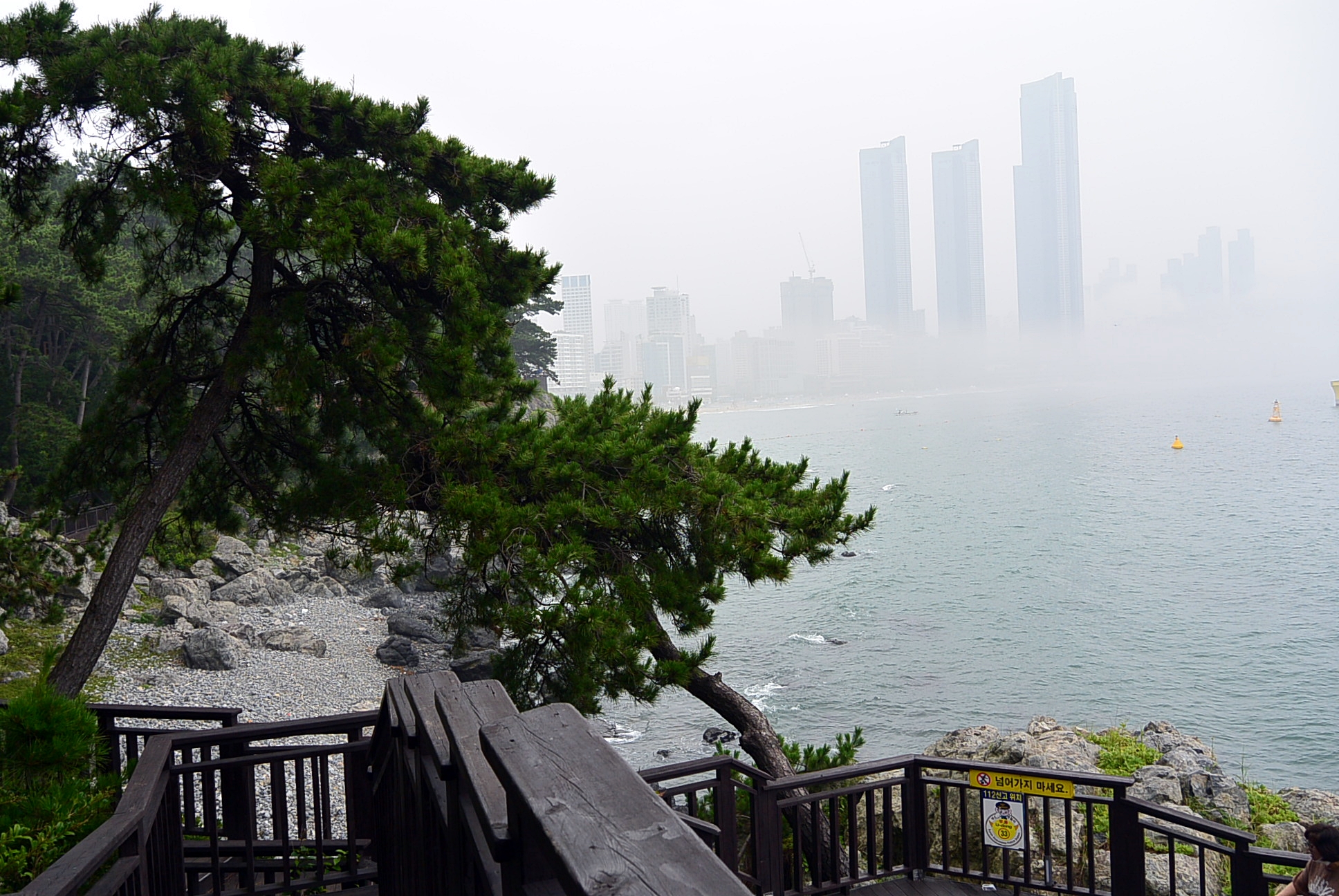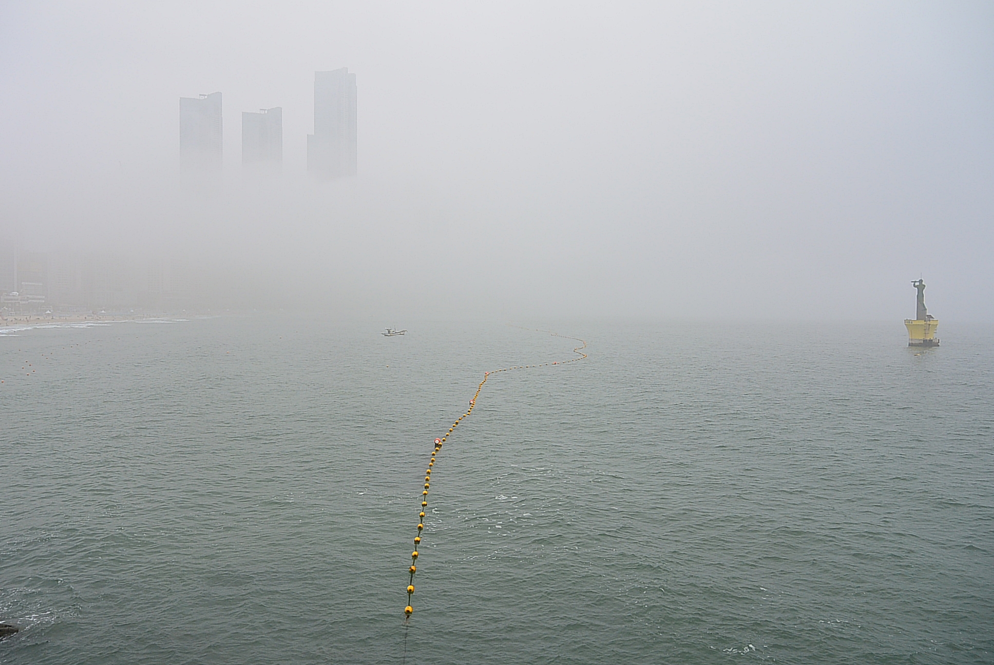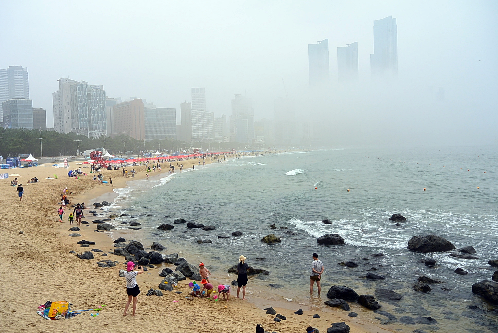 해운대해수욕장. 안개로 인하여 달맞이언덕은 사라지고 ~