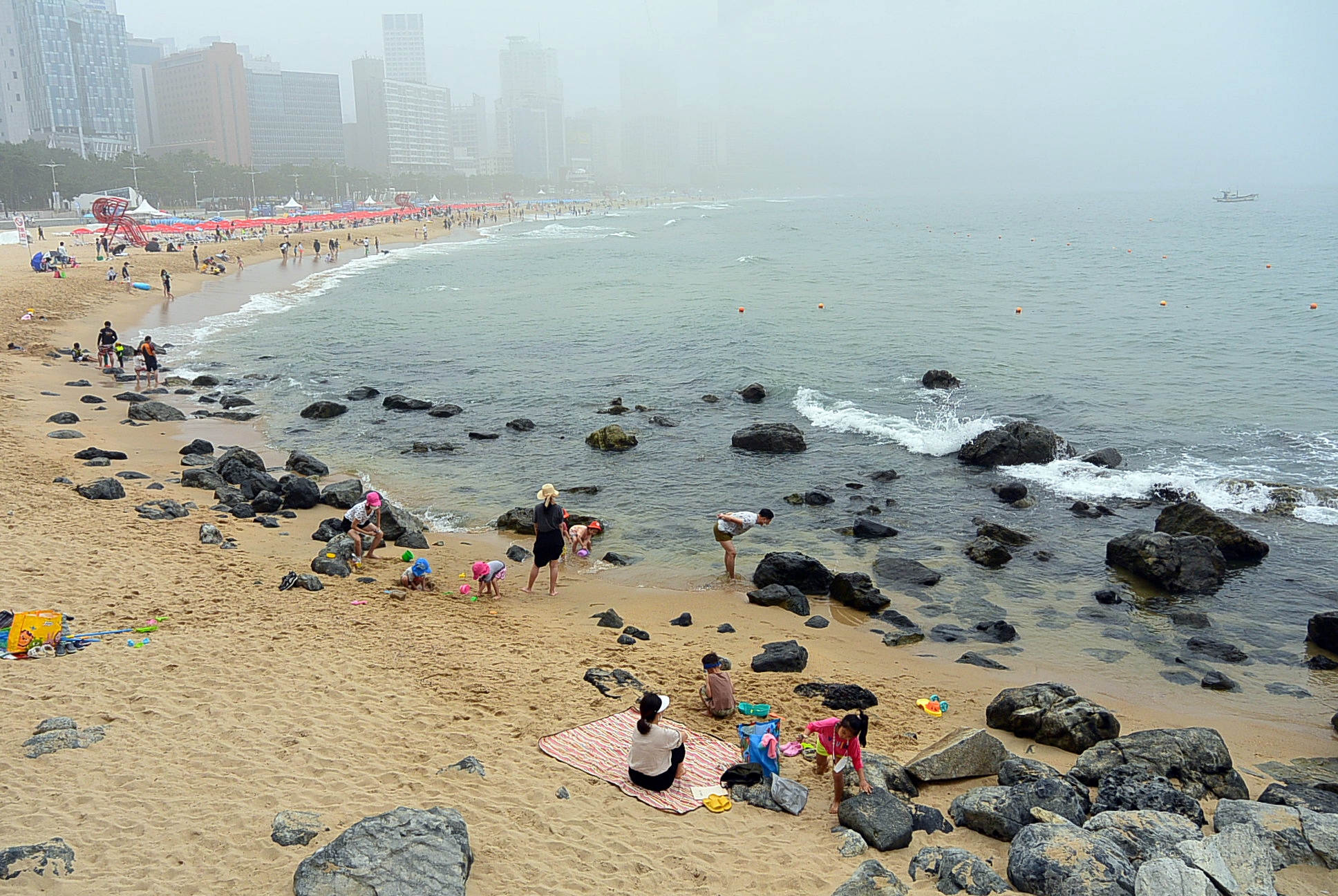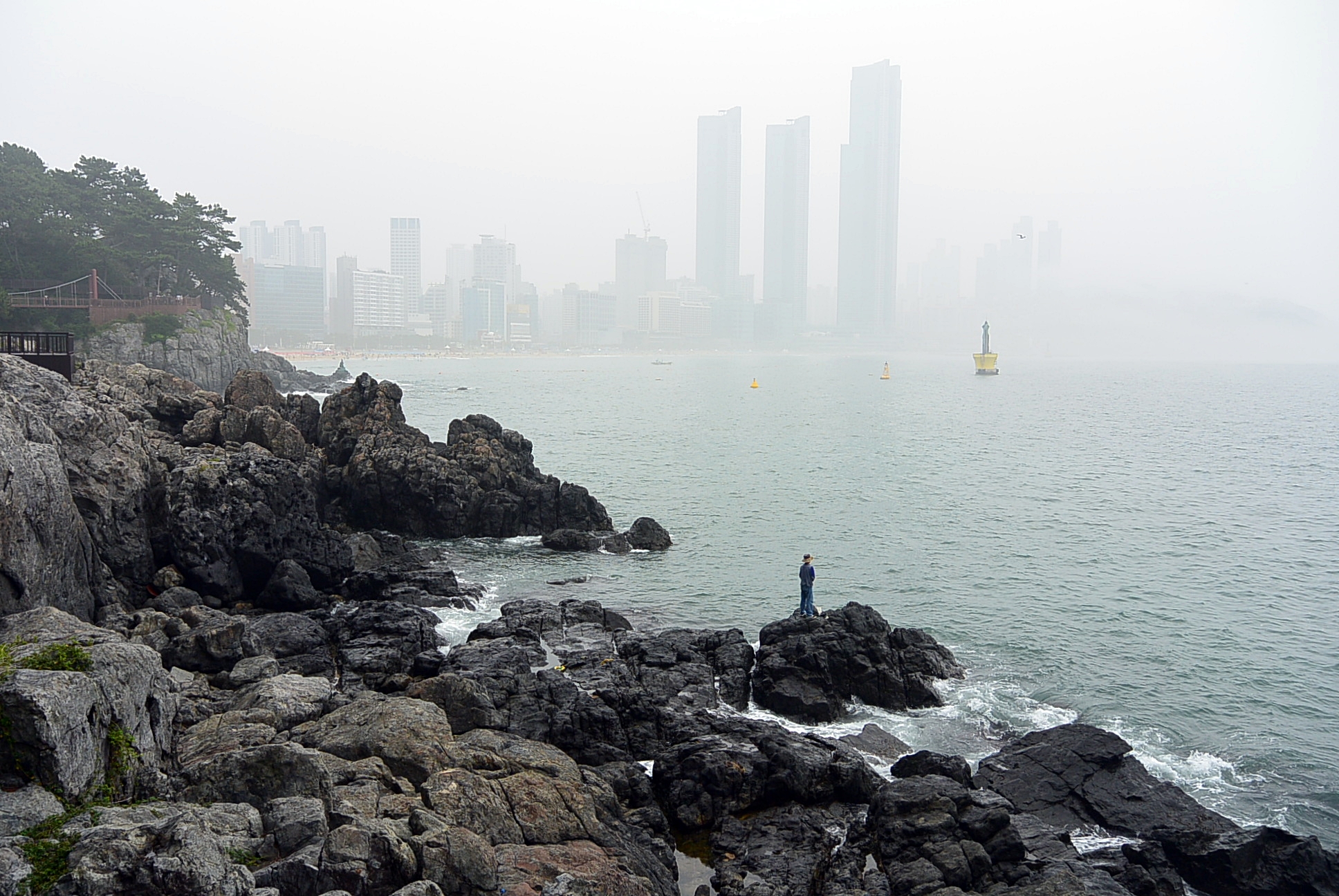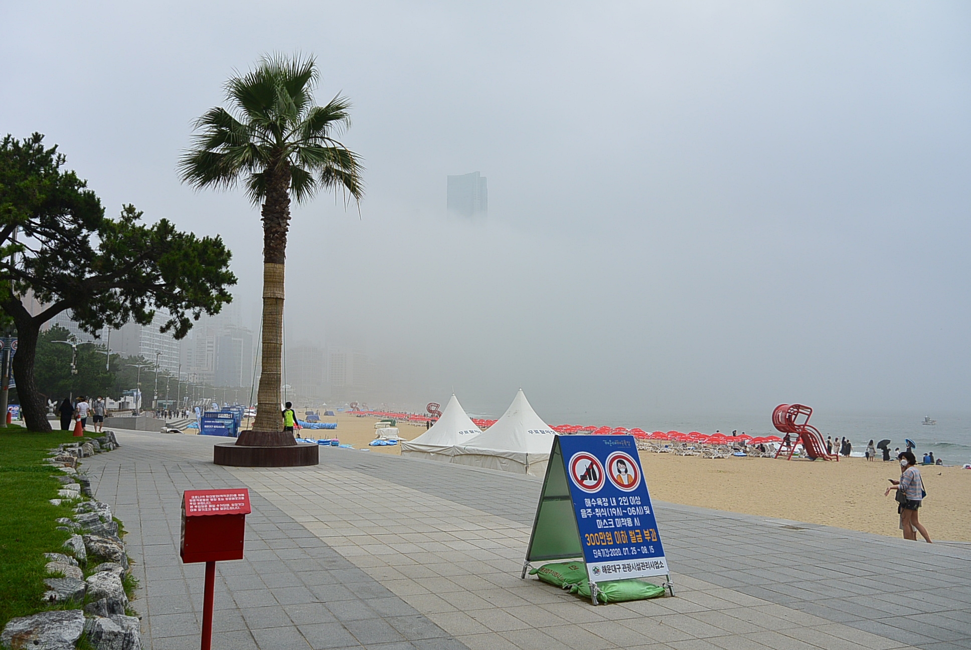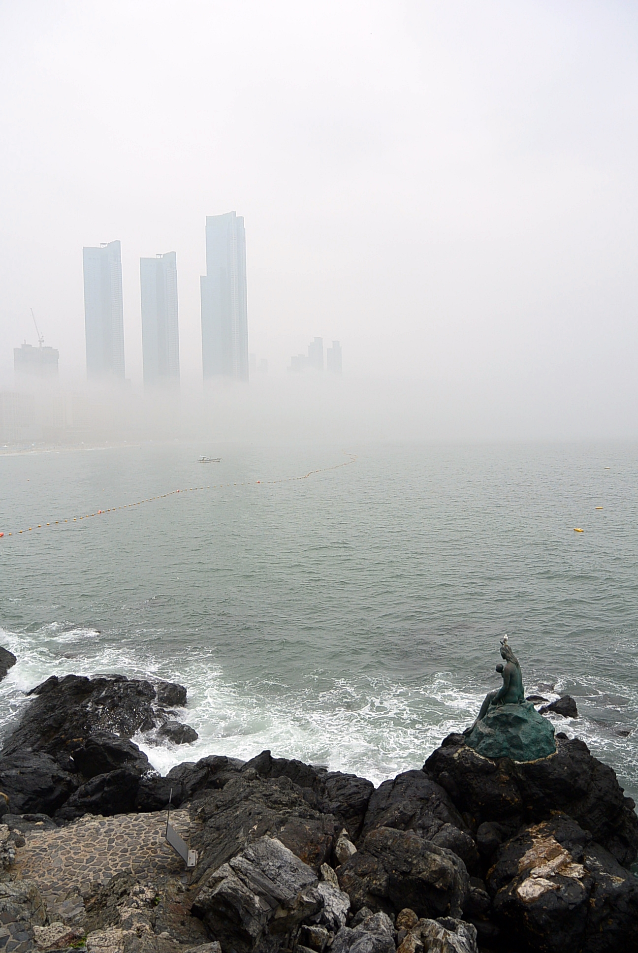 해운대해수욕장. 안개로 인하여 달맞이언덕은 사라지고 ~