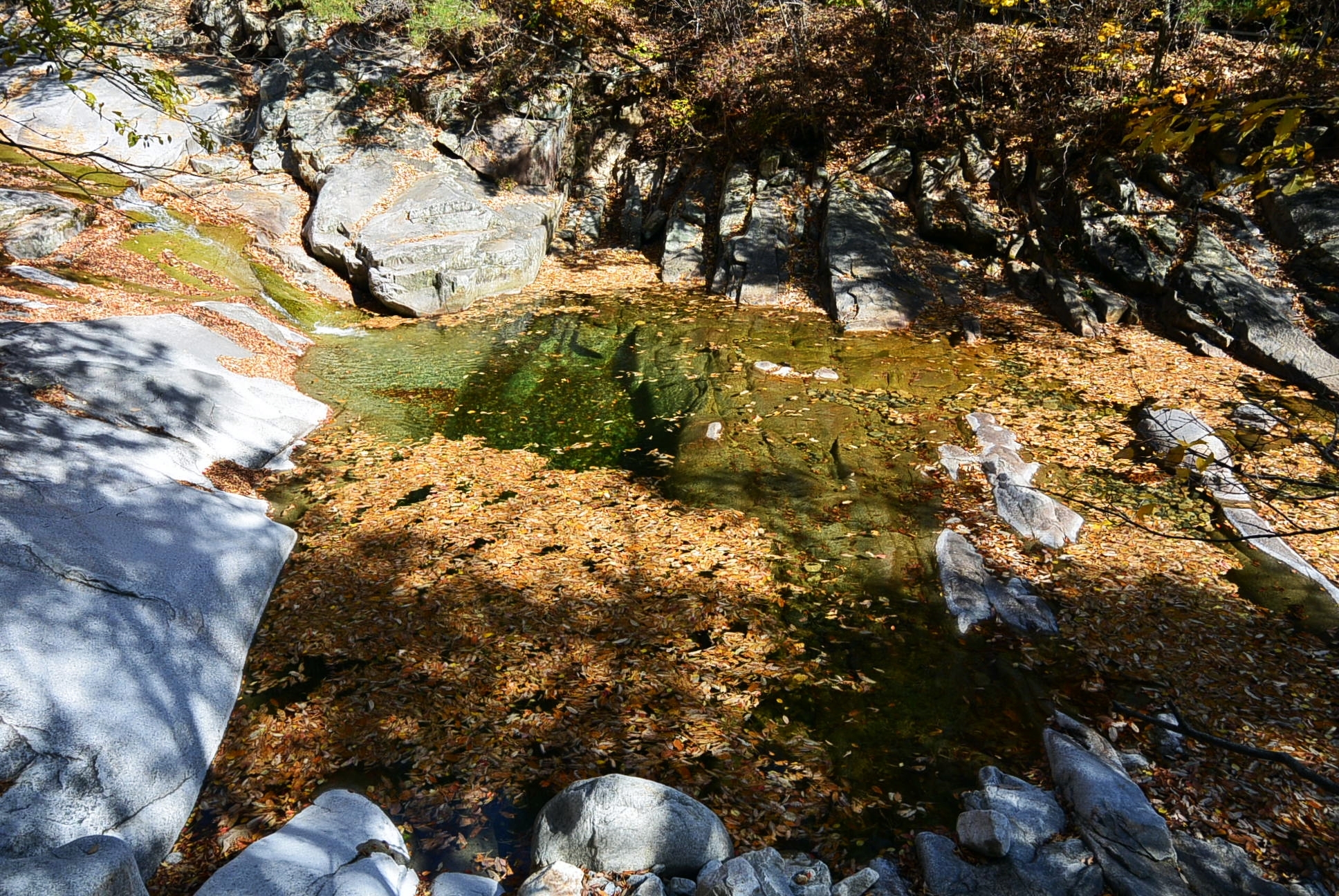 물 흐르는 곳에 떨어진 낙엽이 운치를 더해주고 ~~