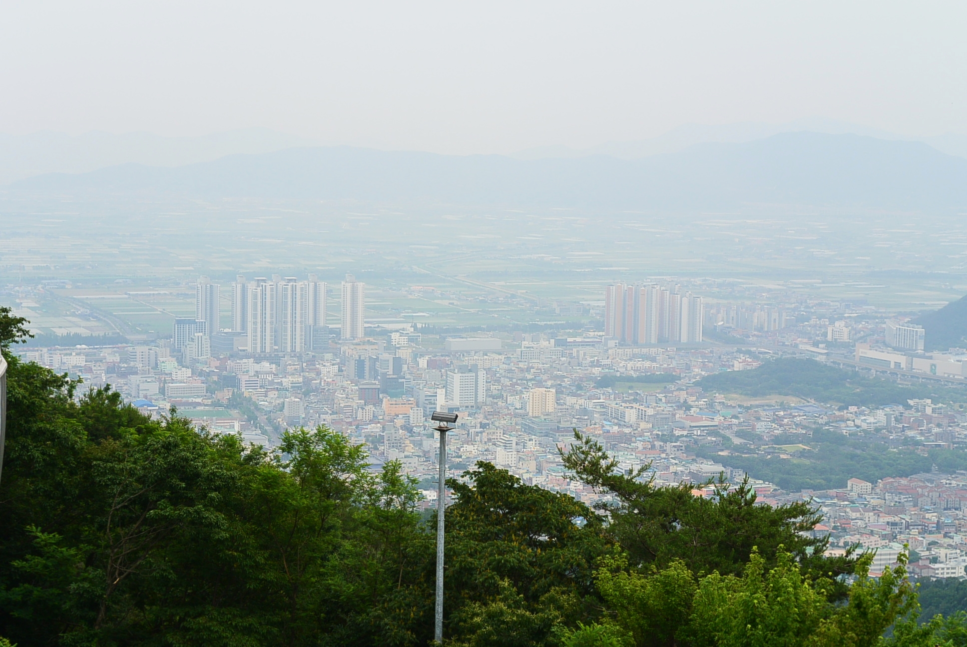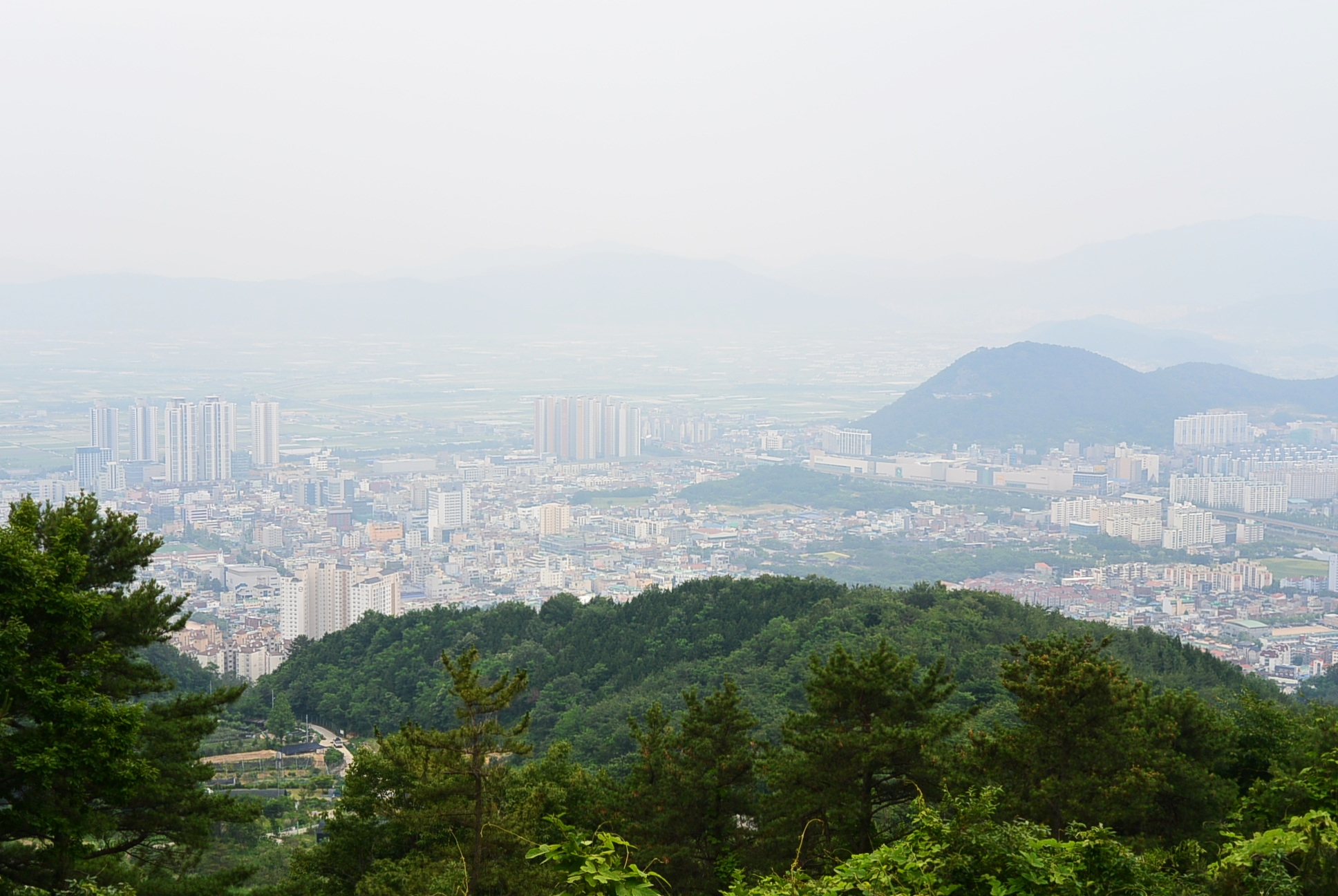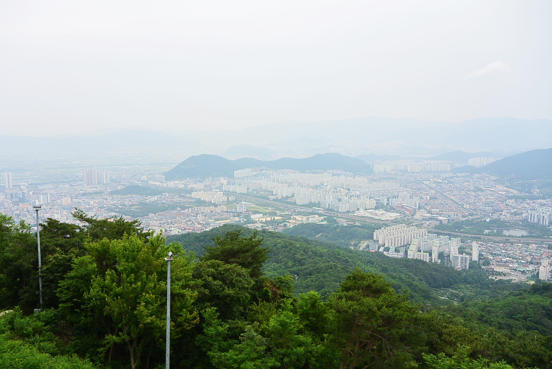 날씨가 흐려서 뿌옇게 보인다