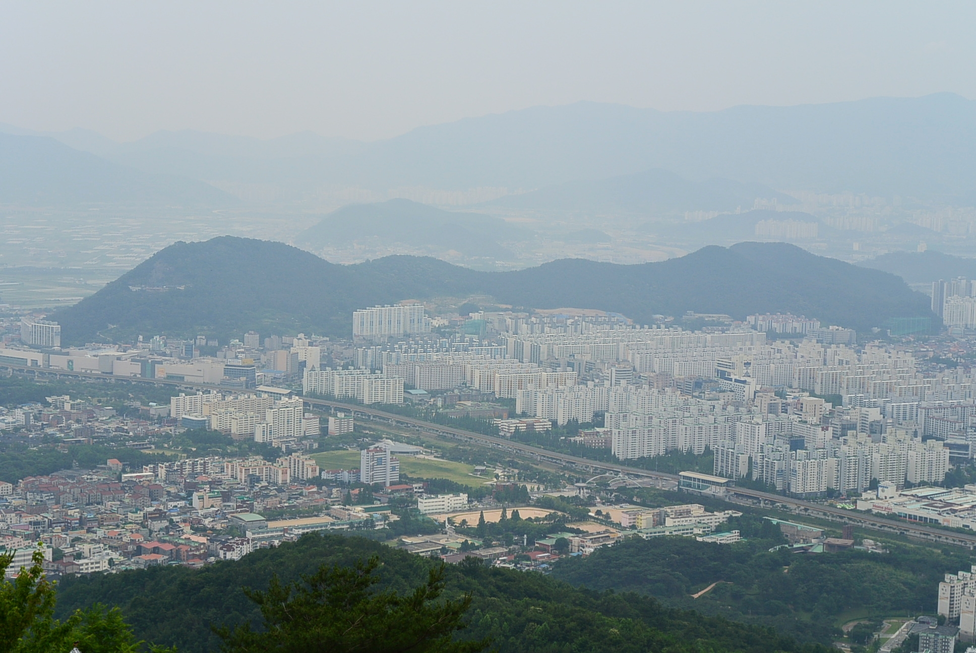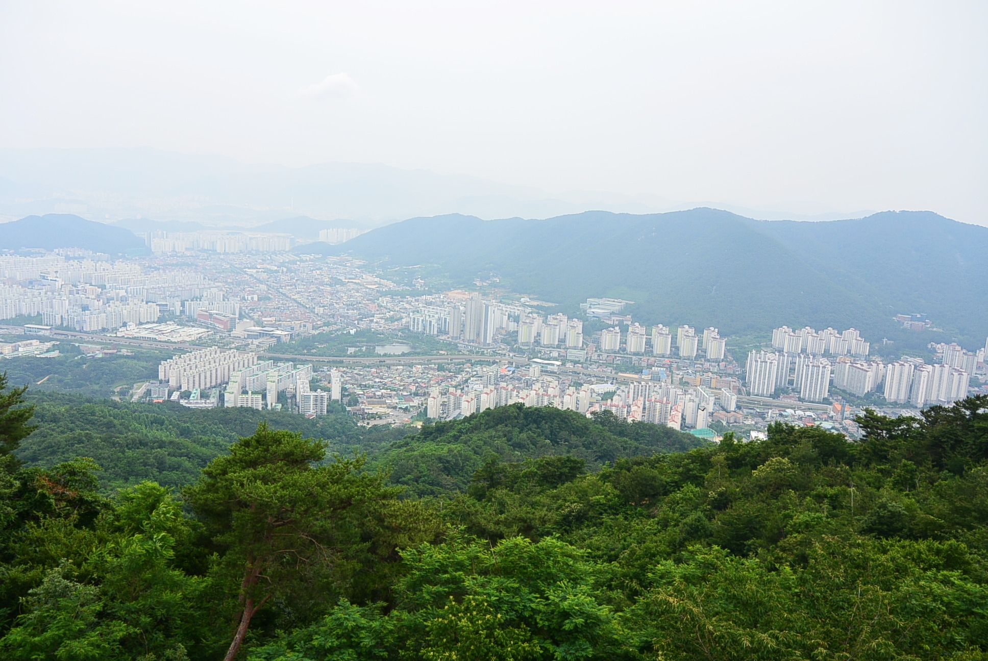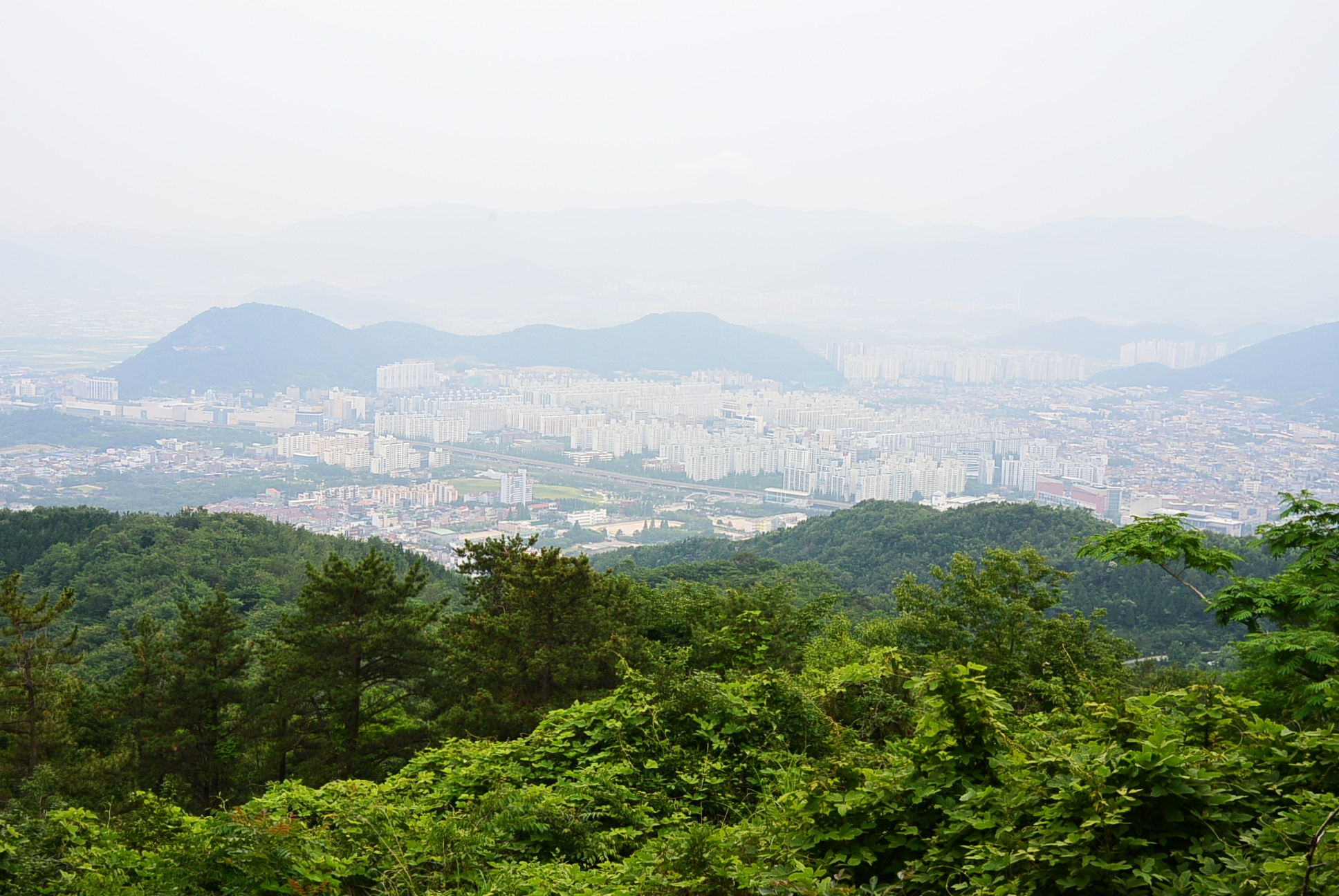 날씨가 흐려서 뿌옇게 보인다