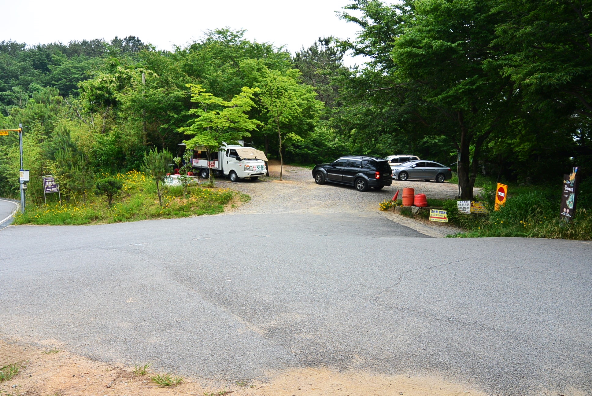 저기 트럭에서 칡즙 한잔씩 마시고, 천문대 가는데 얼마나 걸려요? 15분이면 갈수있어요. 하신다.산길과 임도길이 있다. 우리는 올라 갈때는 산길로 가고, 내려 올때는 임도길로 내려왔다.