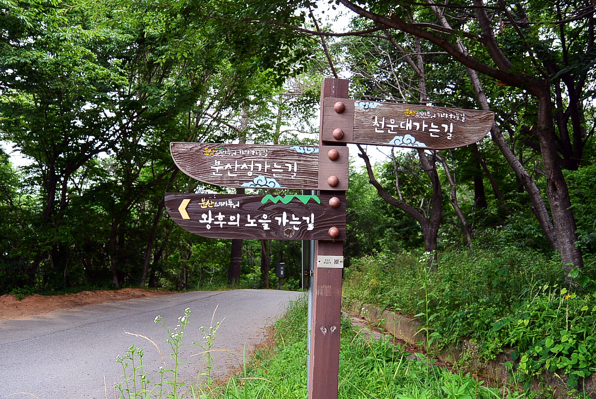 이정표. 주차장 가로질러가면 분산성 가는길. 천문대로 올라갑니다.