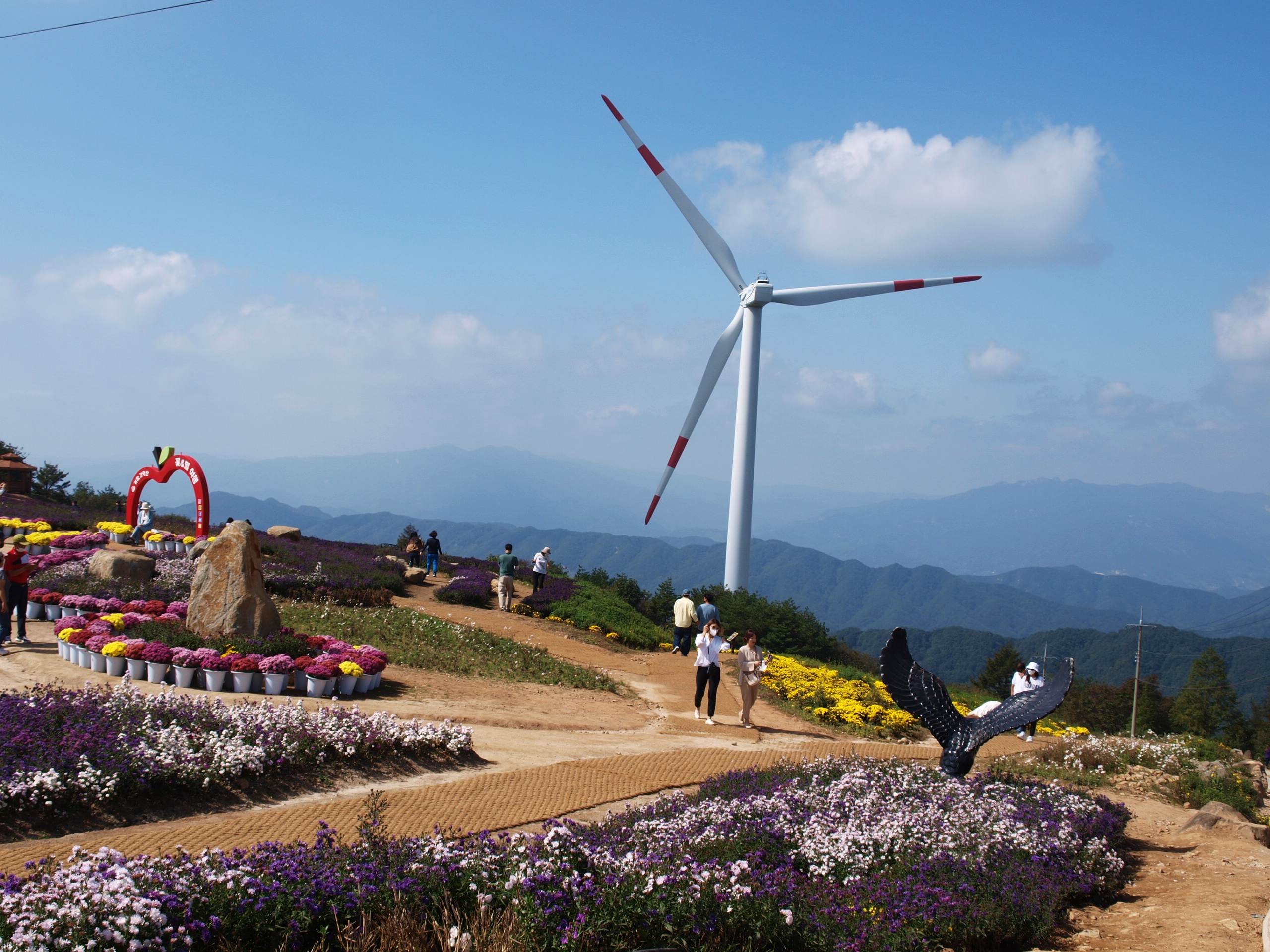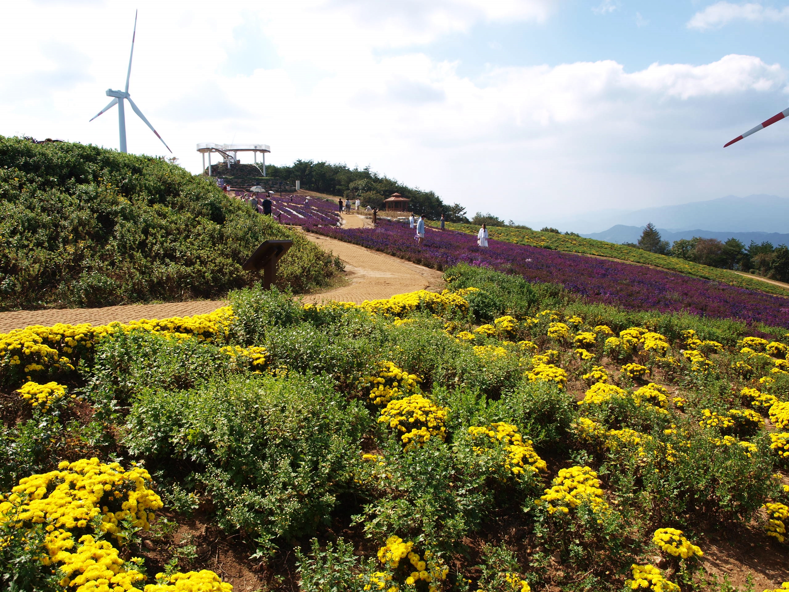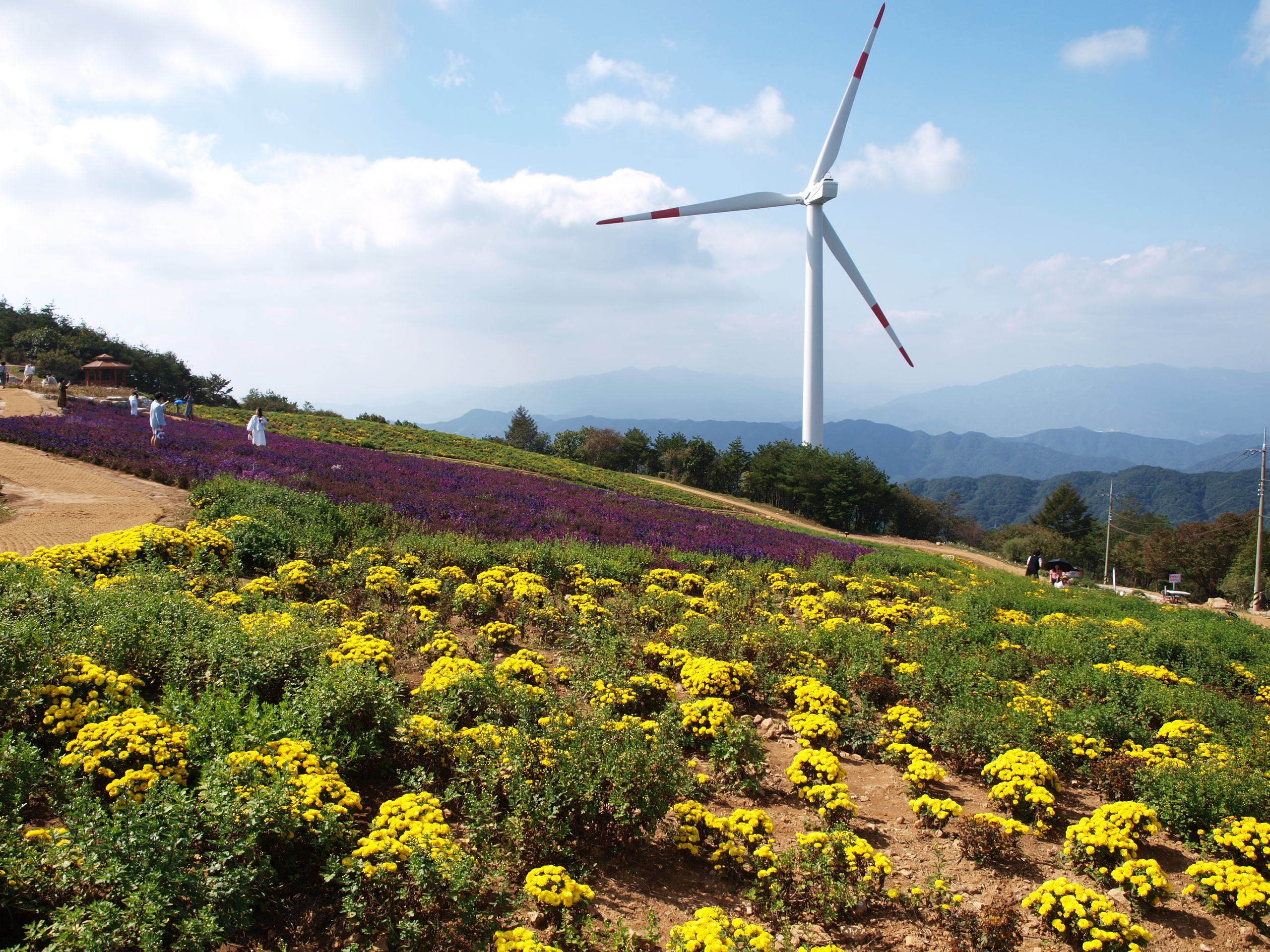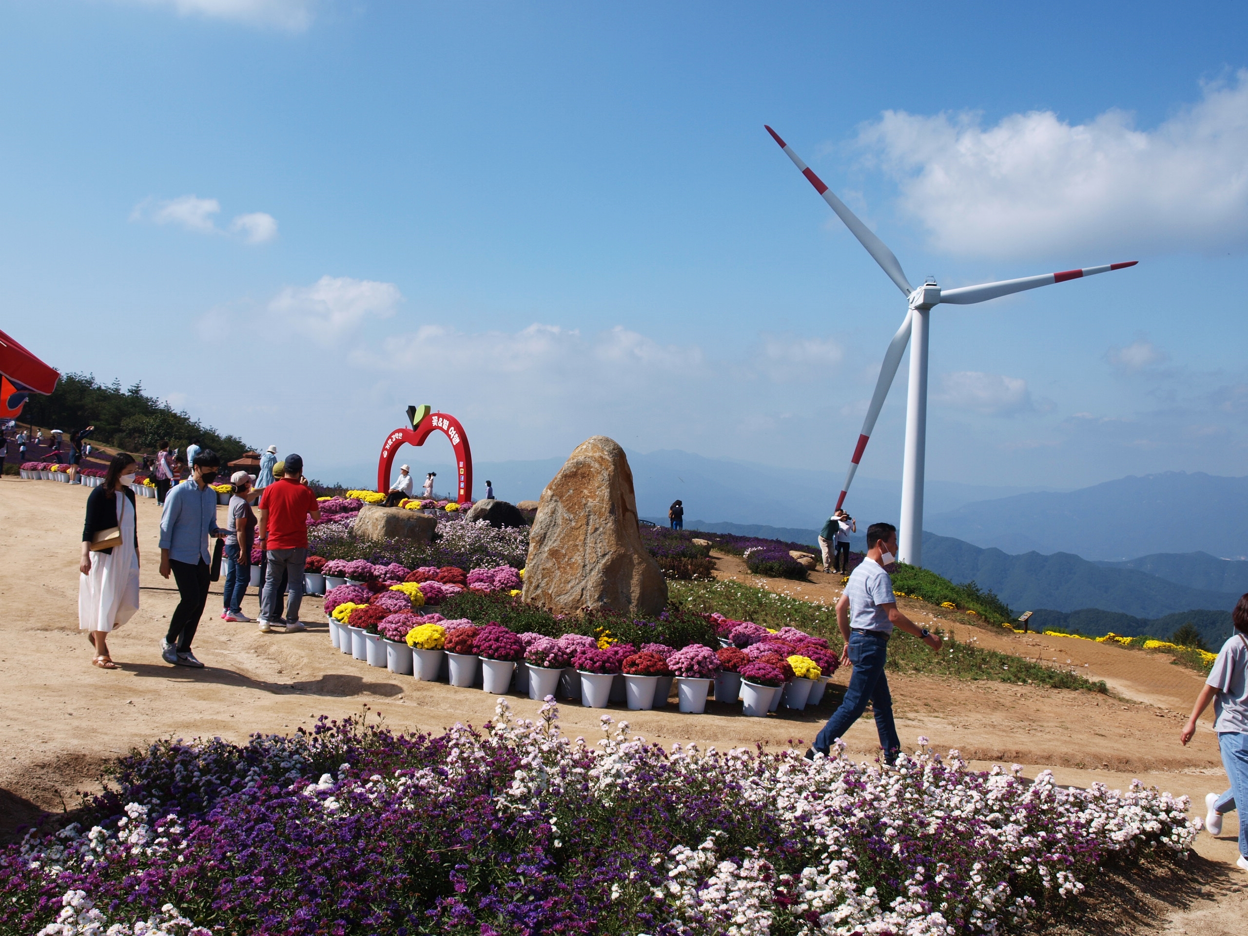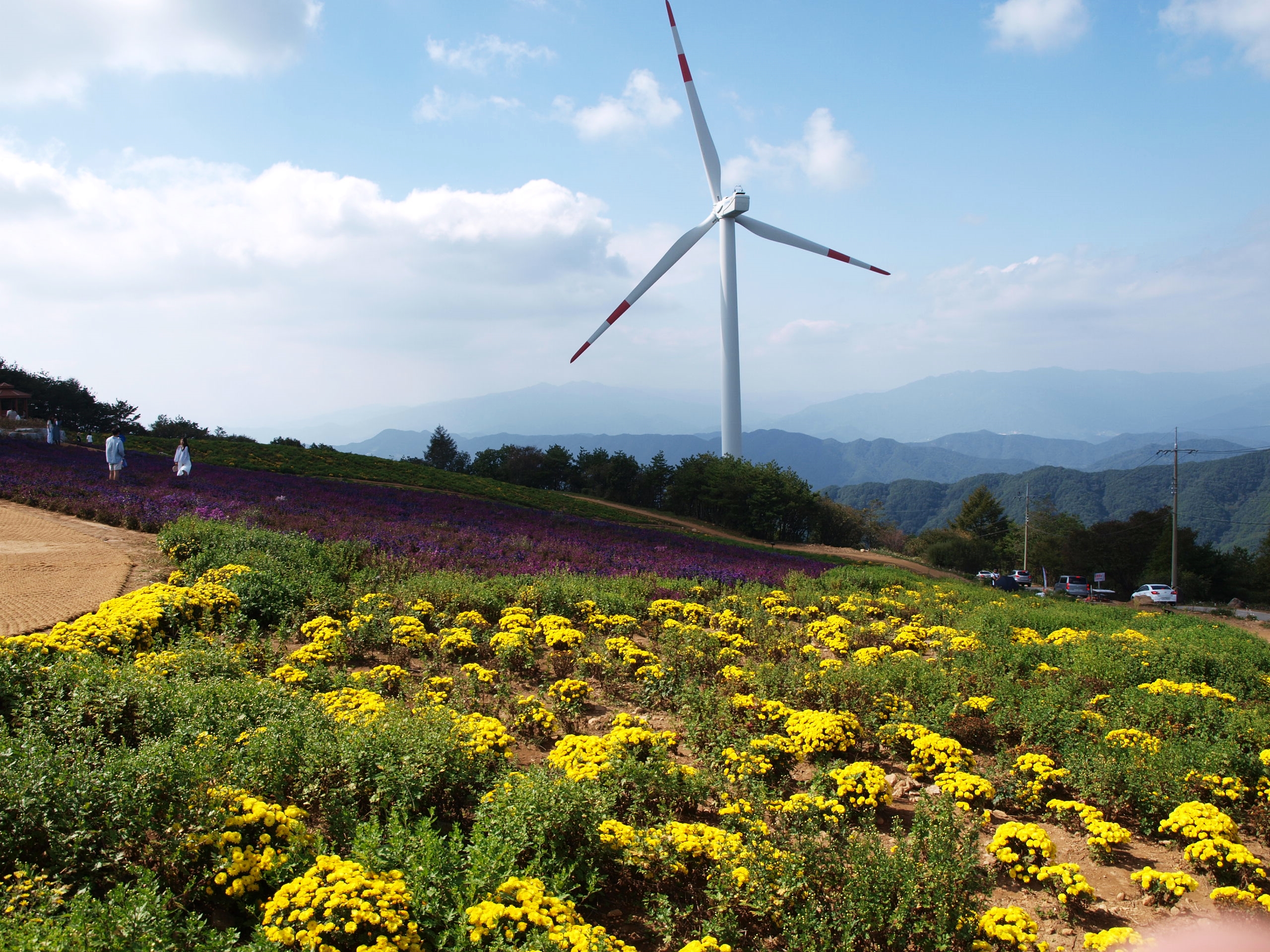 이곳은 감악산 풍력발전단지가 있는 곳에 천상의 화원을 조성하여 많은 관광객들이 줄을 잇고 있었다.