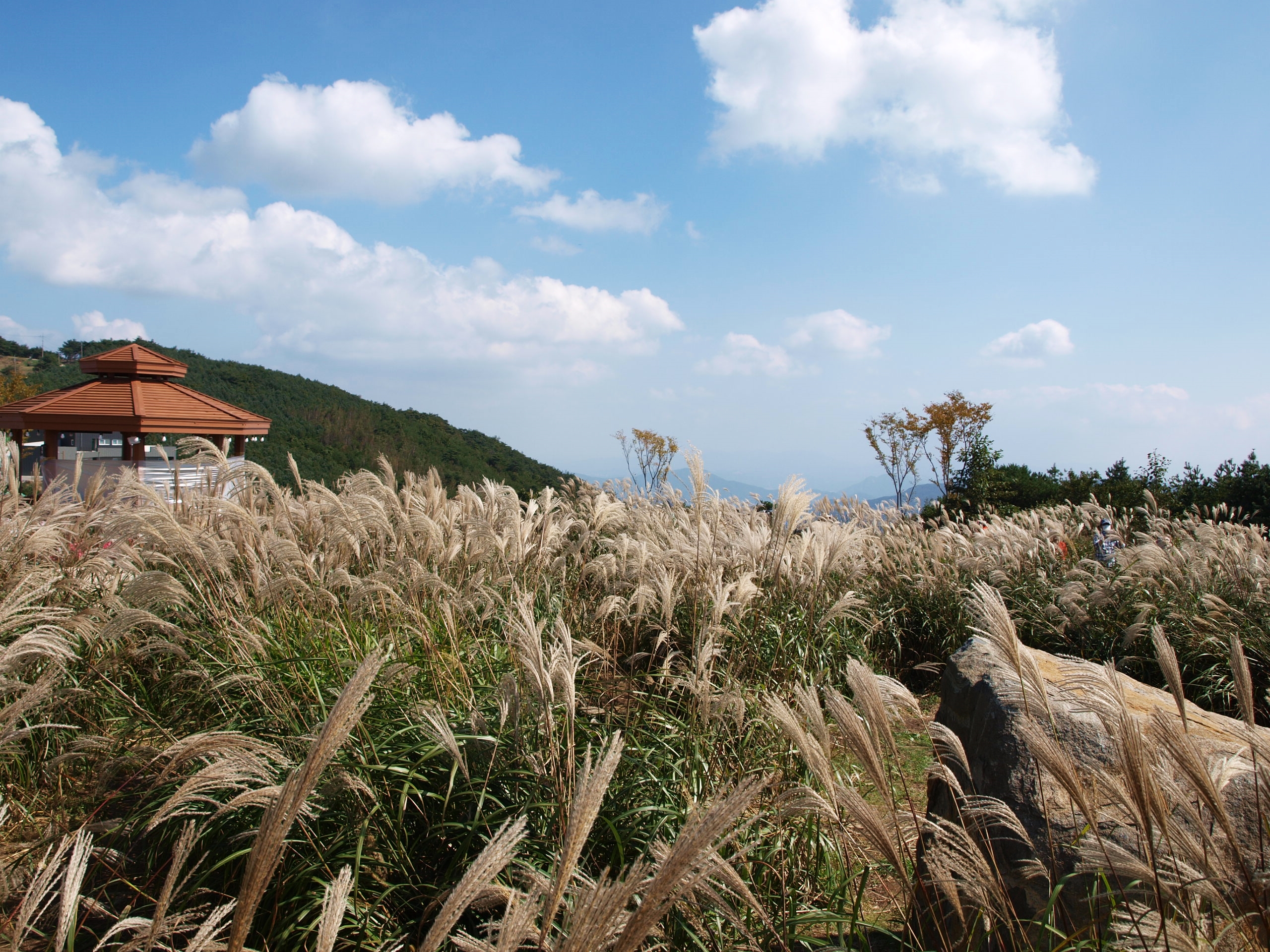 가을이다 보니 억새가 피어 꽃과 다르게 운치를 더해주고