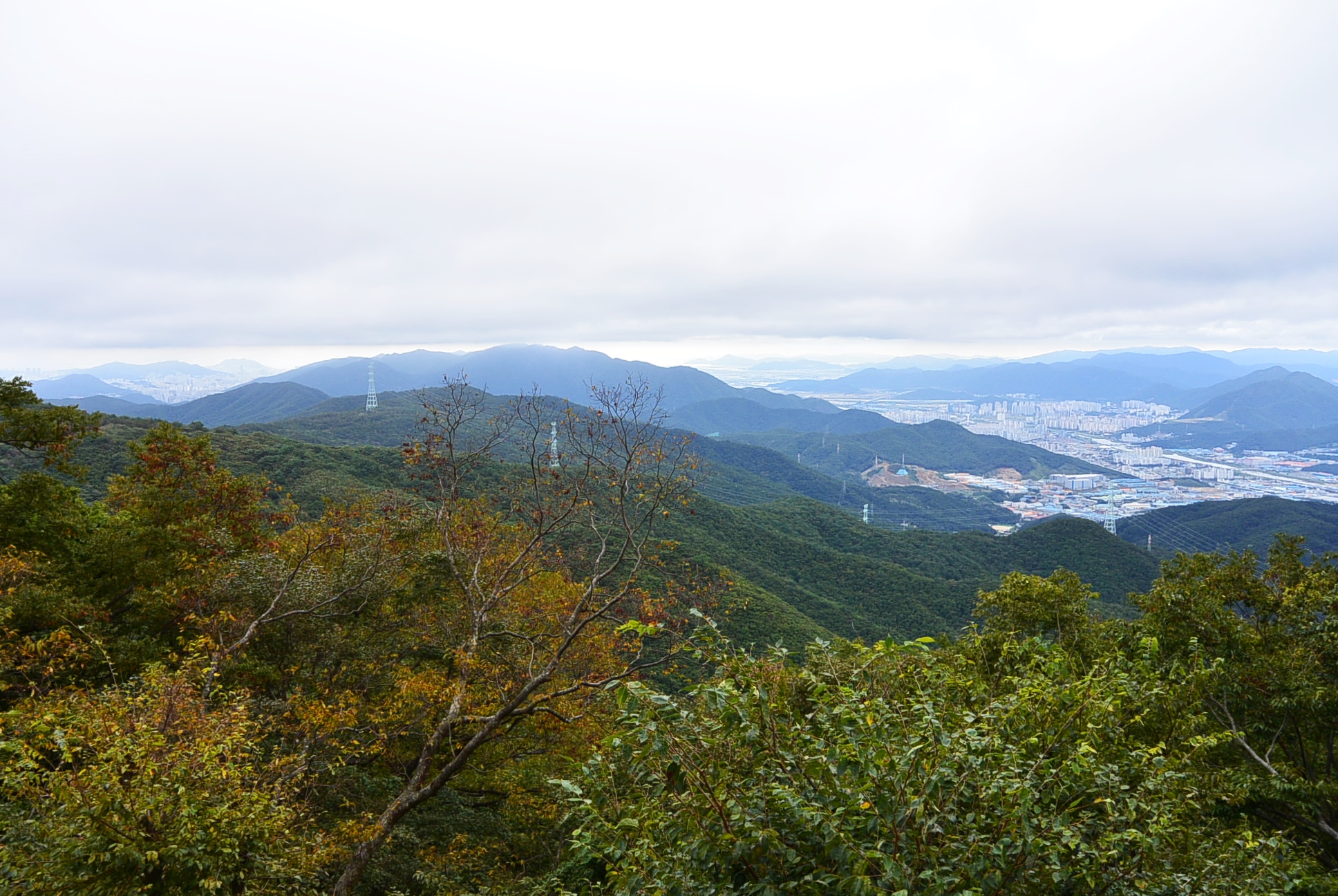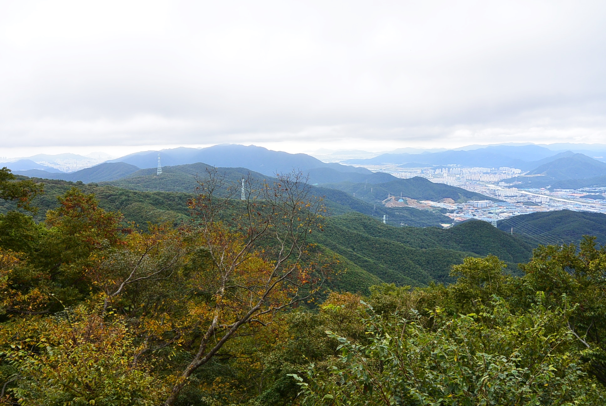 시원하게 펼쳐지는 양산시와 금정산 주능선까지 옆으로 부산시까지 보이네.