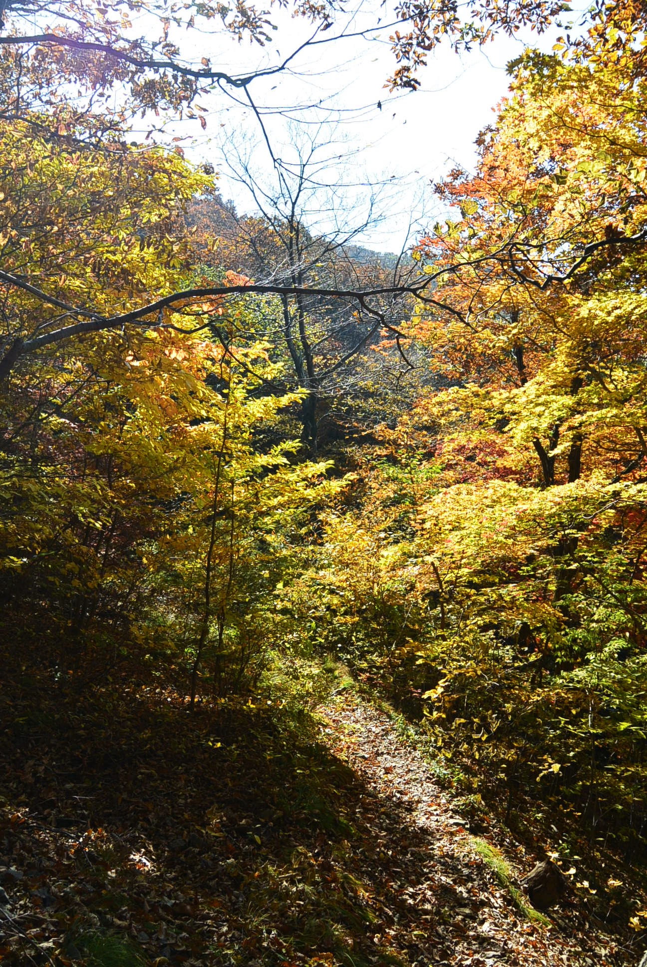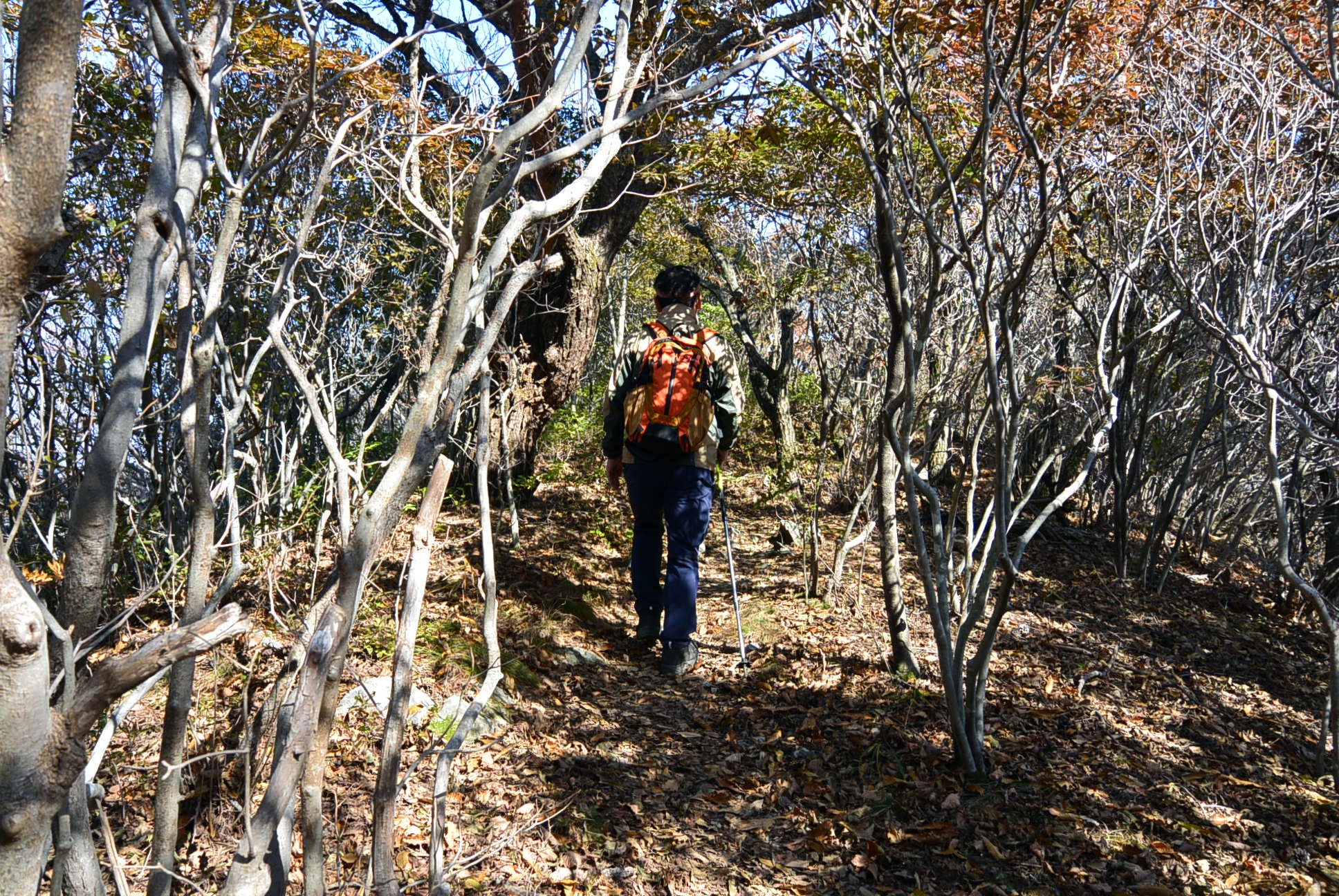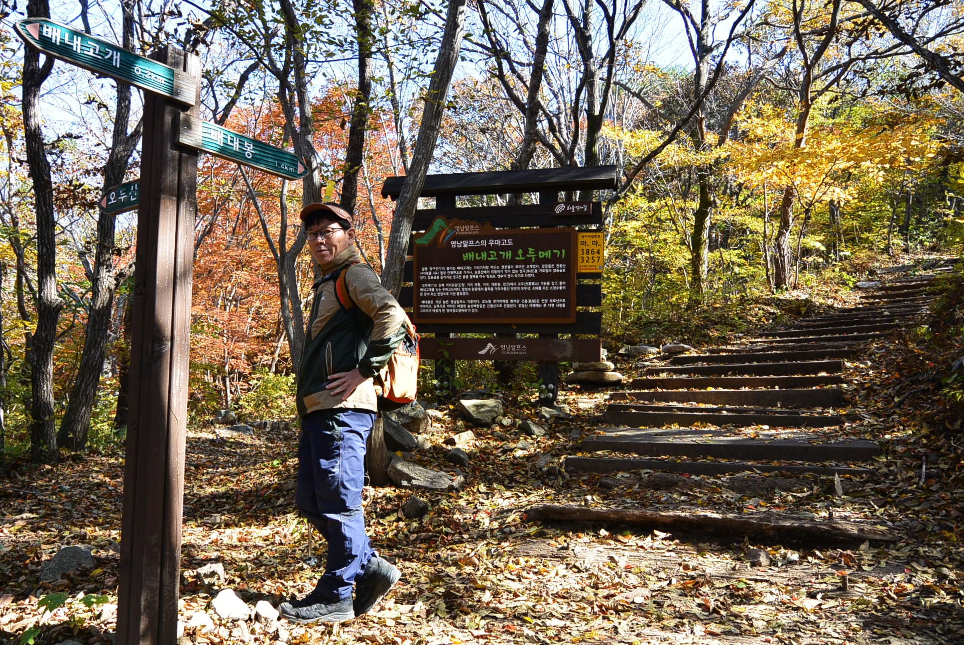 요즘 단풍 절정을 맞이했다는 소식듣고 배내봉에 올라 영남알프스 산들을 바라보며 힐링하는 시간을 가져볼까 하고 배내봉만 다녀오려고 했지만 오두메기 삼거리에서 오두산 이정표를 보고, 아직 미답지인 오두산을 다녀오기로 하고 방향을 틀었다. 오래전 배내봉에서 하산할때 오두산 가기전 삼거리까지 갔던적 있어 전혀 모르는 곳은 아니었다. 오두산 먼저 다녀오고 삼거리에서 배내봉으로 오른다. 오두산 가는길은 산허리를 둘러가는 아주 편한 산책로이다. 가는길이 단풍이 들어 예쁘고 낙엽이 쌓여 운치있는 길이었다.