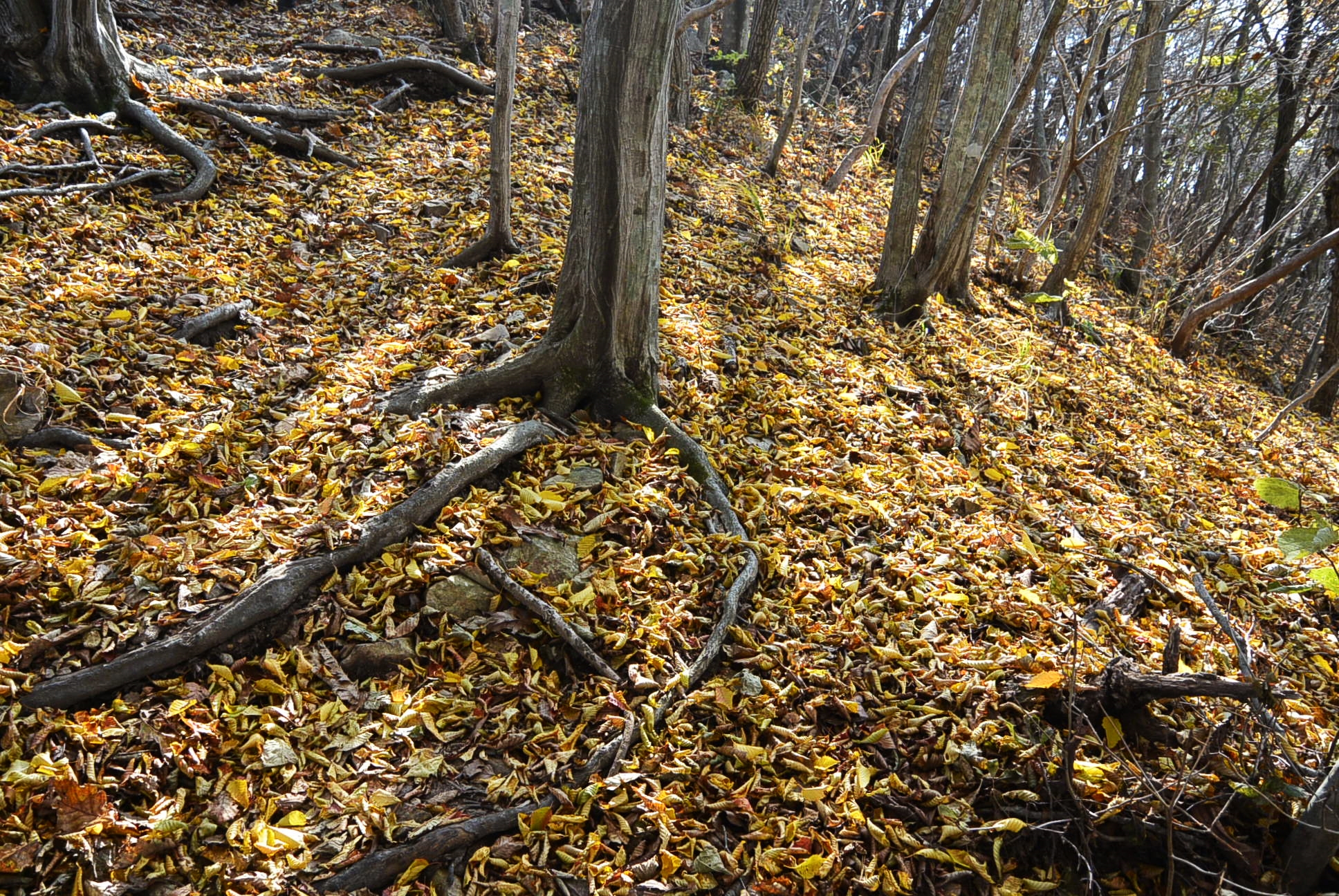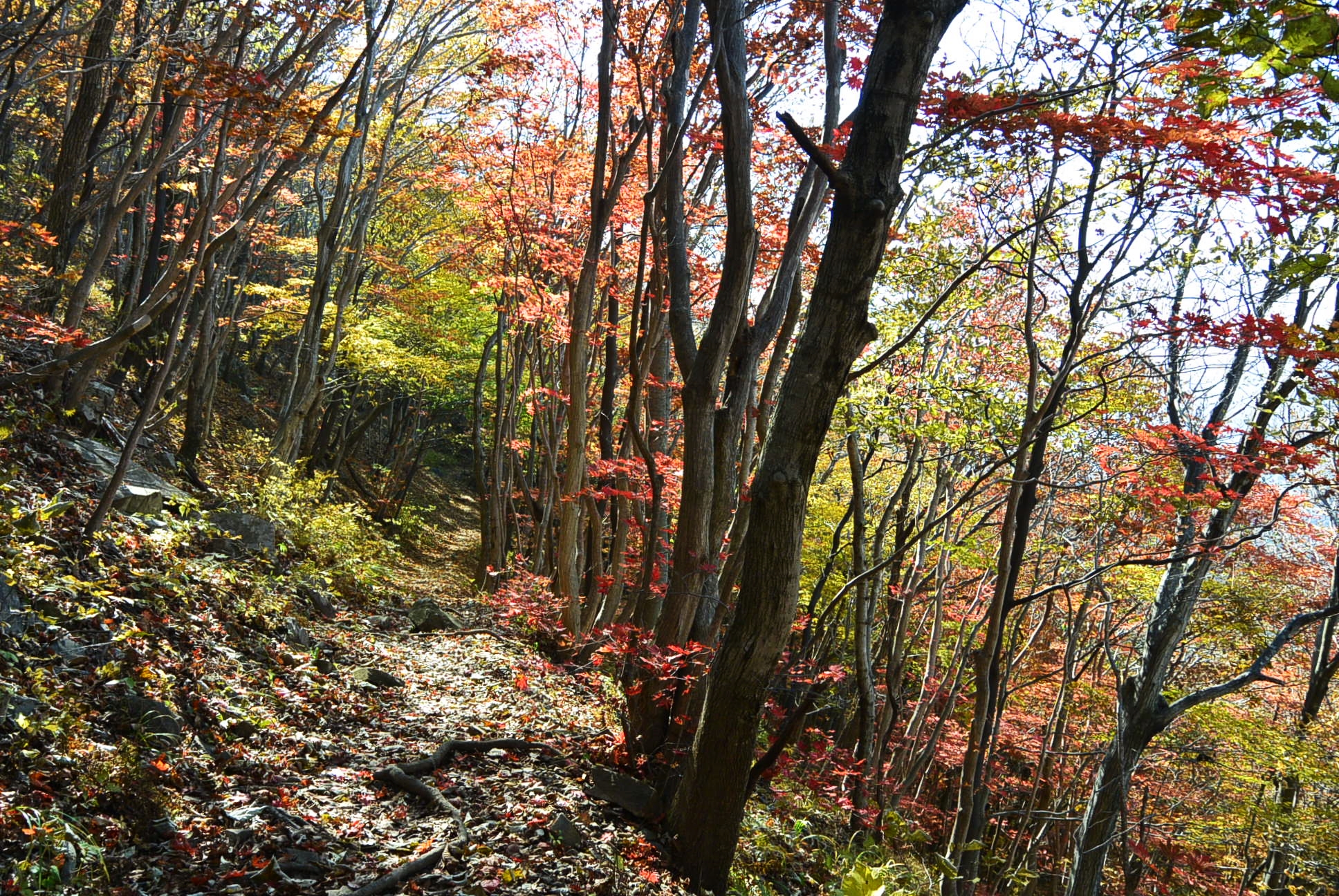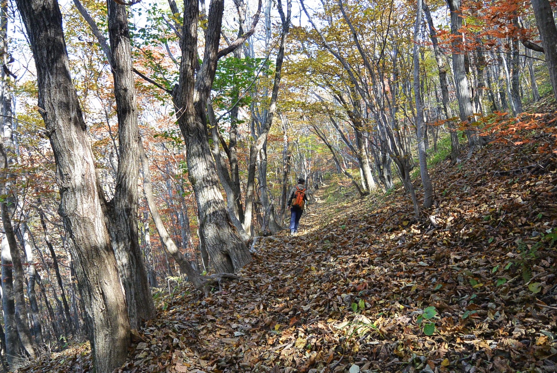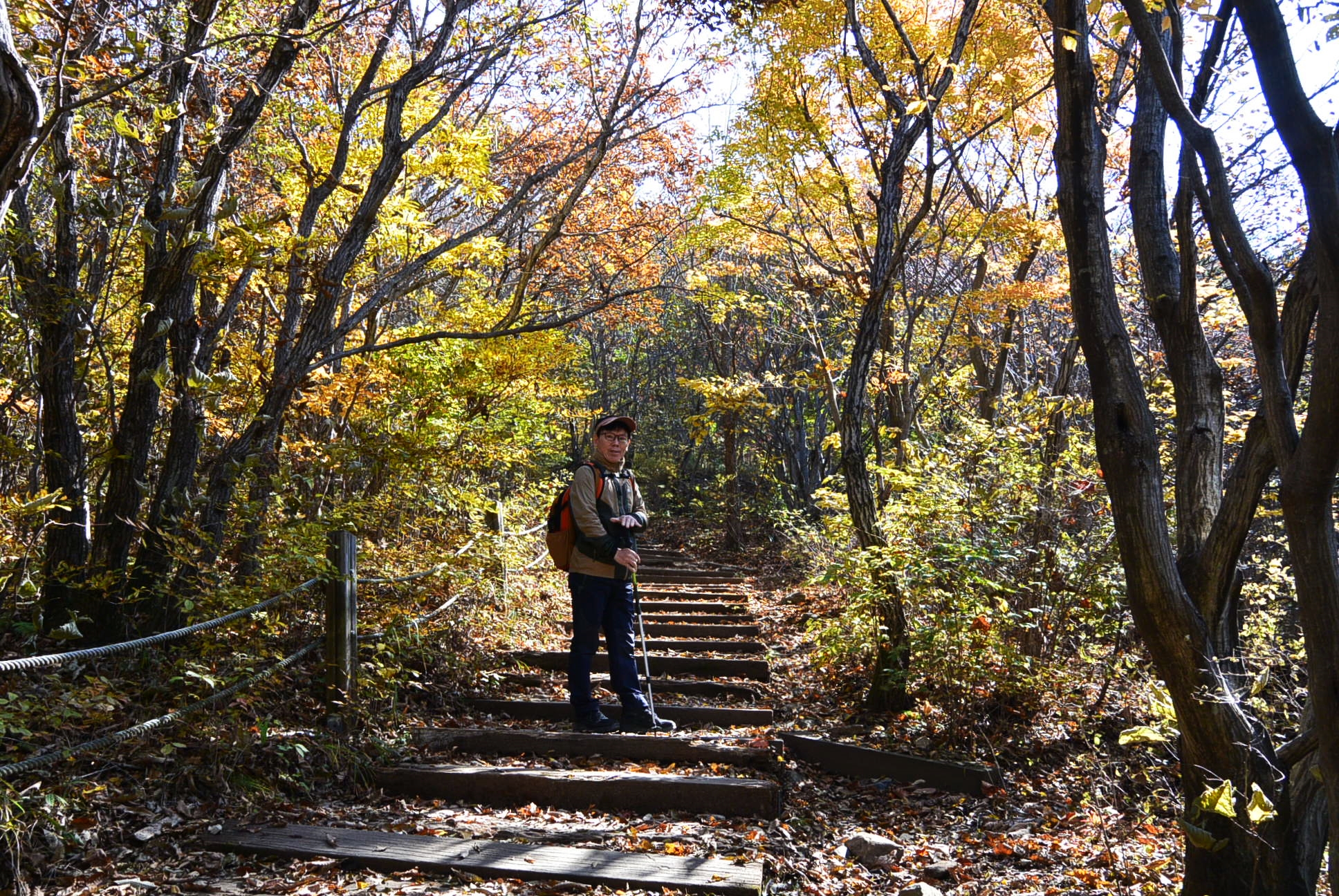 요즘 단풍 절정을 맞이했다는 소식듣고 배내봉에 올라 영남알프스 산들을 바라보며 힐링하는 시간을 가져볼까 하고 배내봉만 다녀오려고 했지만 오두메기 삼거리에서 오두산 이정표를 보고, 아직 미답지인 오두산을 다녀오기로 하고 방향을 틀었다. 오래전 배내봉에서 하산할때 오두산 가기전 삼거리까지 갔던적 있어 전혀 모르는 곳은 아니었다. 오두산 먼저 다녀오고 삼거리에서 배내봉으로 오른다. 오두산 가는길은 산허리를 둘러가는 아주 편한 산책로이다. 가는길이 단풍이 들어 예쁘고 낙엽이 쌓여 운치있는 길이었다.