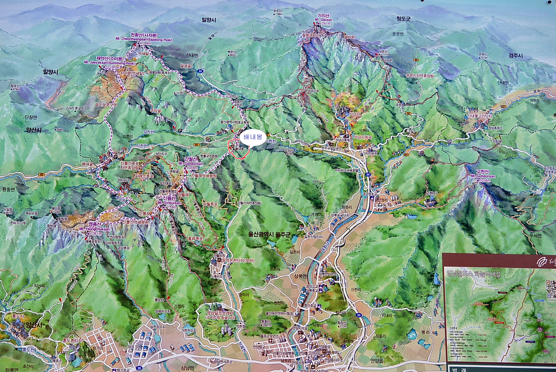영남알프스 산맥지도. 배내봉이 영남알프스 중심에 있어서 배내봉 오르면 영남알프스 영봉들을 다 조망 할수가 있다.