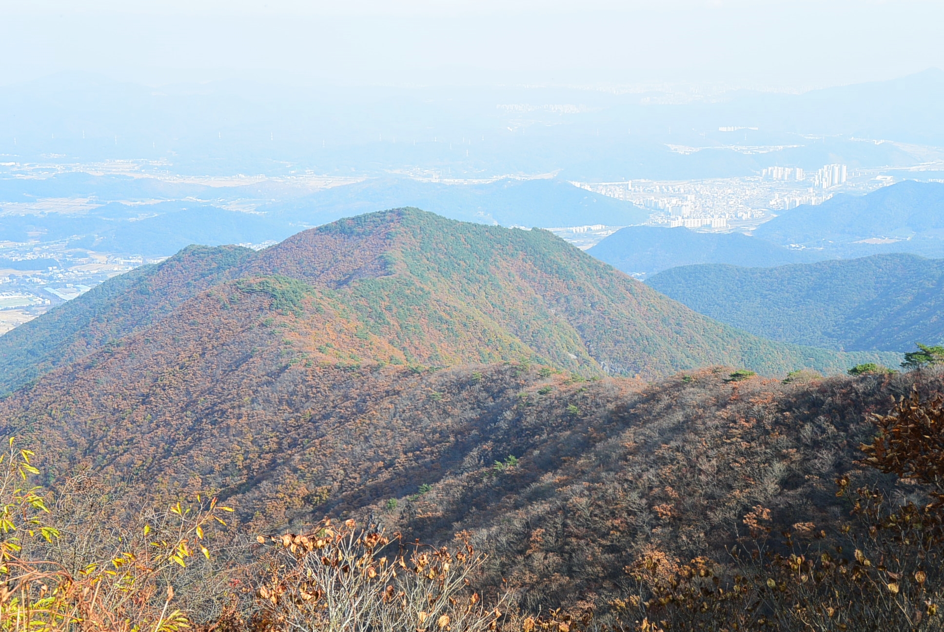 밝얼산이 앞으로 보이고 그 넘어가 언양읍이다.