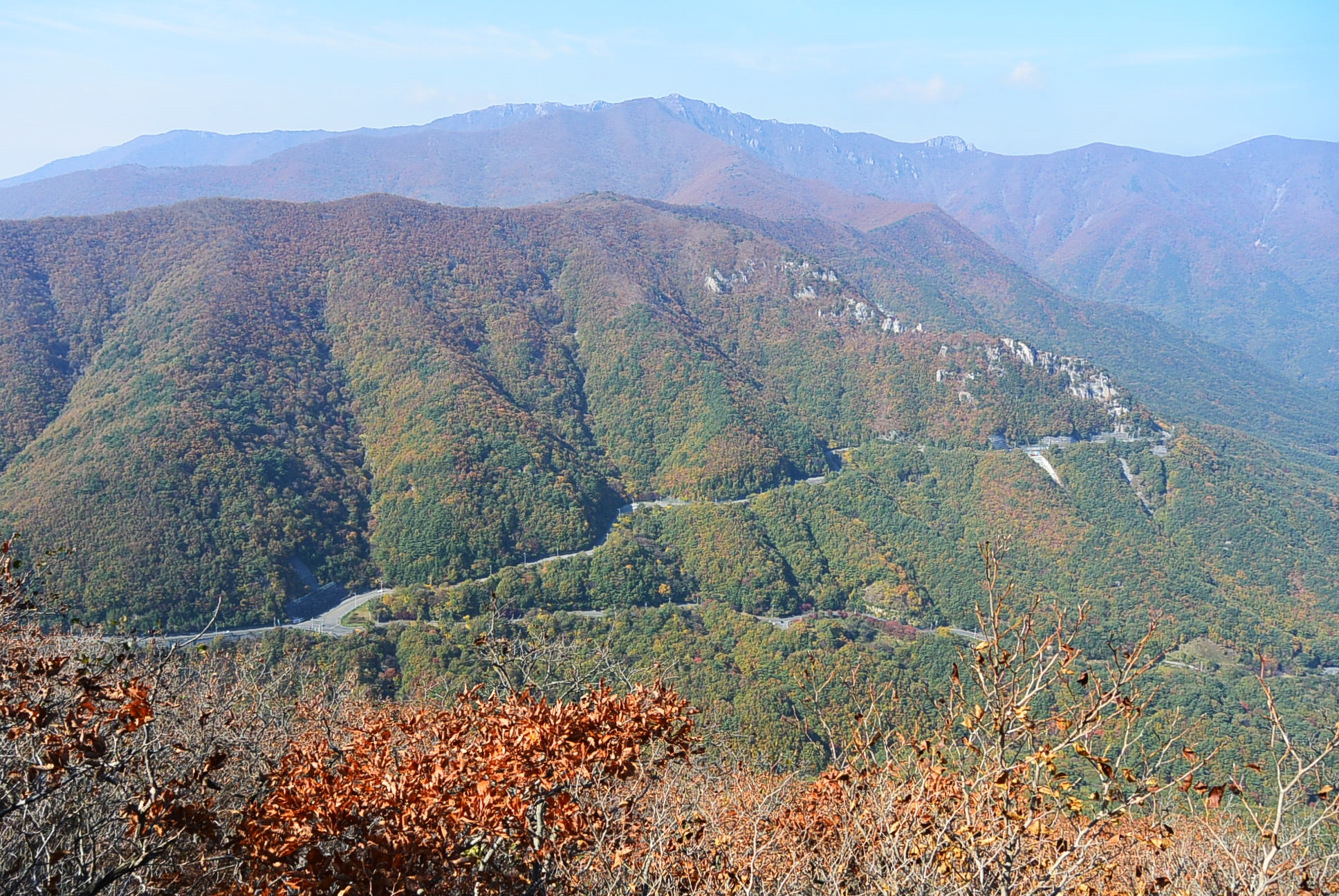 가지산과 석남터널 가는길이 산허리를 가로지른다