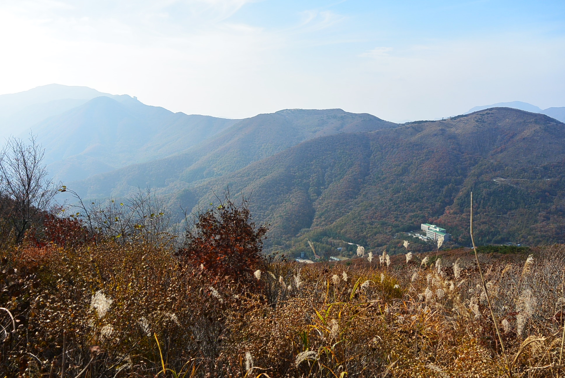 울산청소년수련원. 밀양방향 배내골 천황산 제약산이 끝으로 보이고