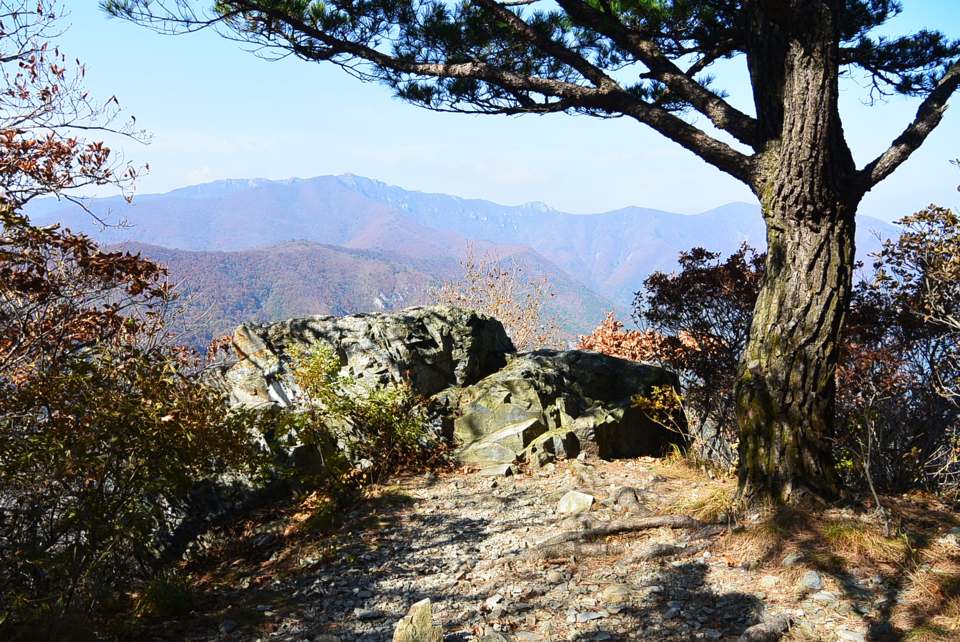 왼쪽 석남터널에서 가지산 오르는 길에 있는 입석바위 군