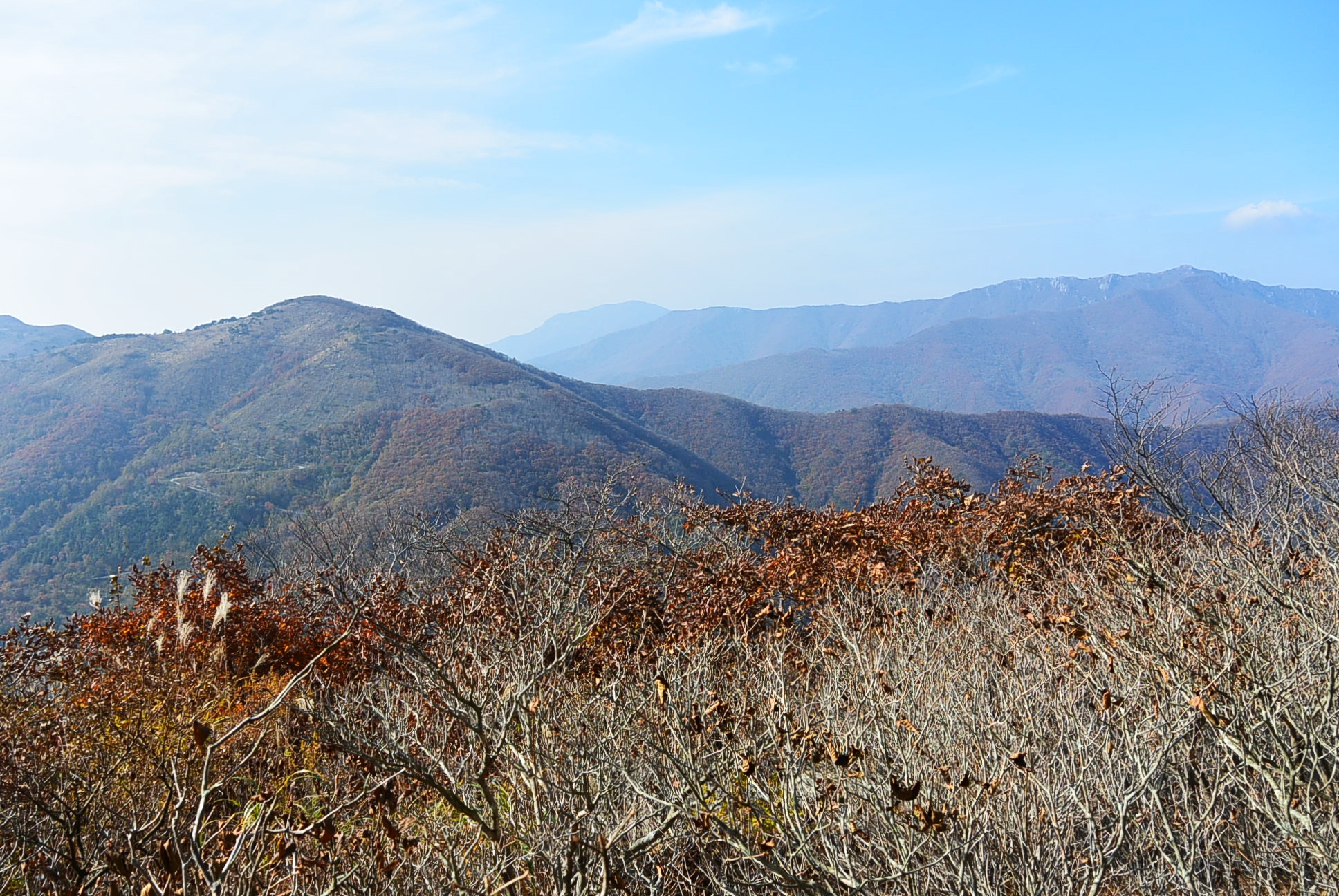 앞은 능동산 뒤로 가지산 그 뒤로 운문산