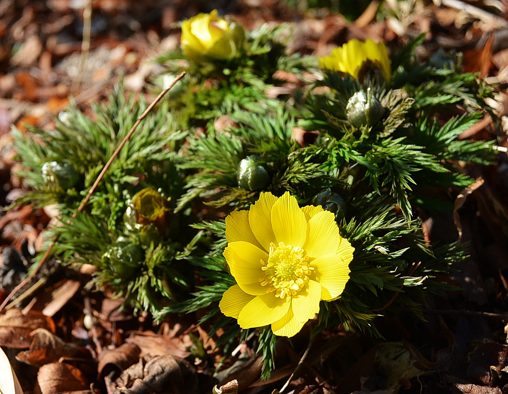 복수초 꽃 만나러 왔는데, 겨우 한송이 피어있고, 모두 봉오리만 맺어 있는 상태