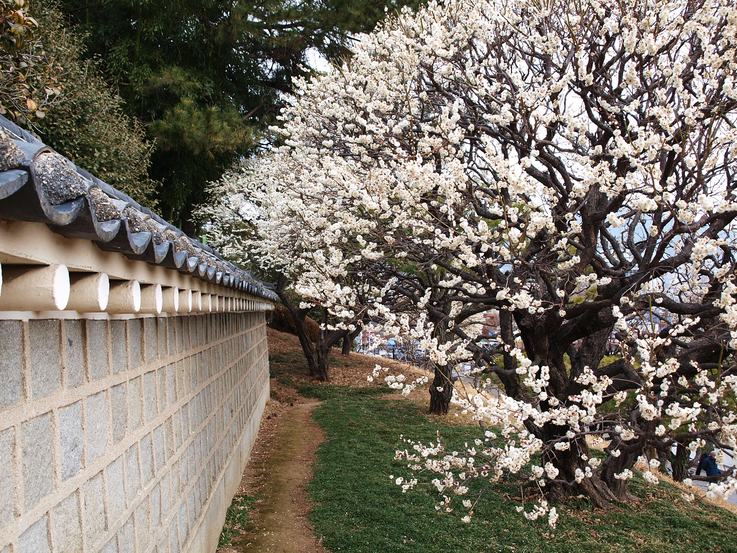 크림색으로 하얗게 핀 매화꽃은 만개 하였고