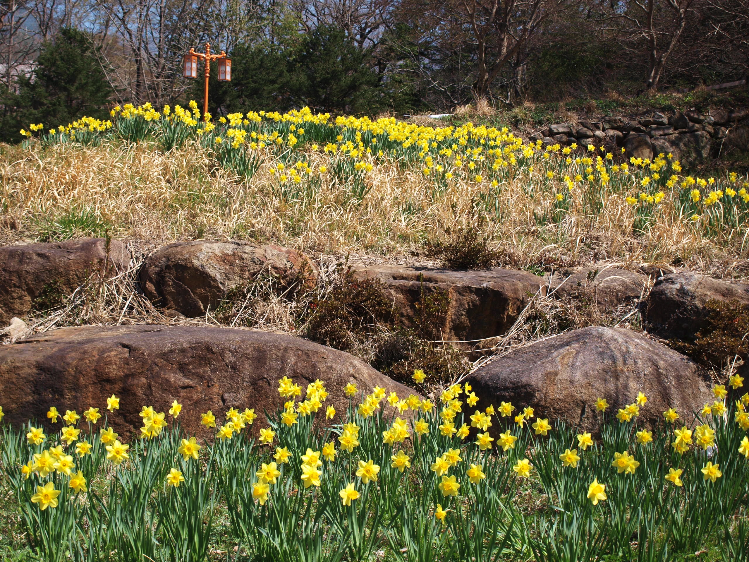 주차장 옆에 핀 수선화 꽃