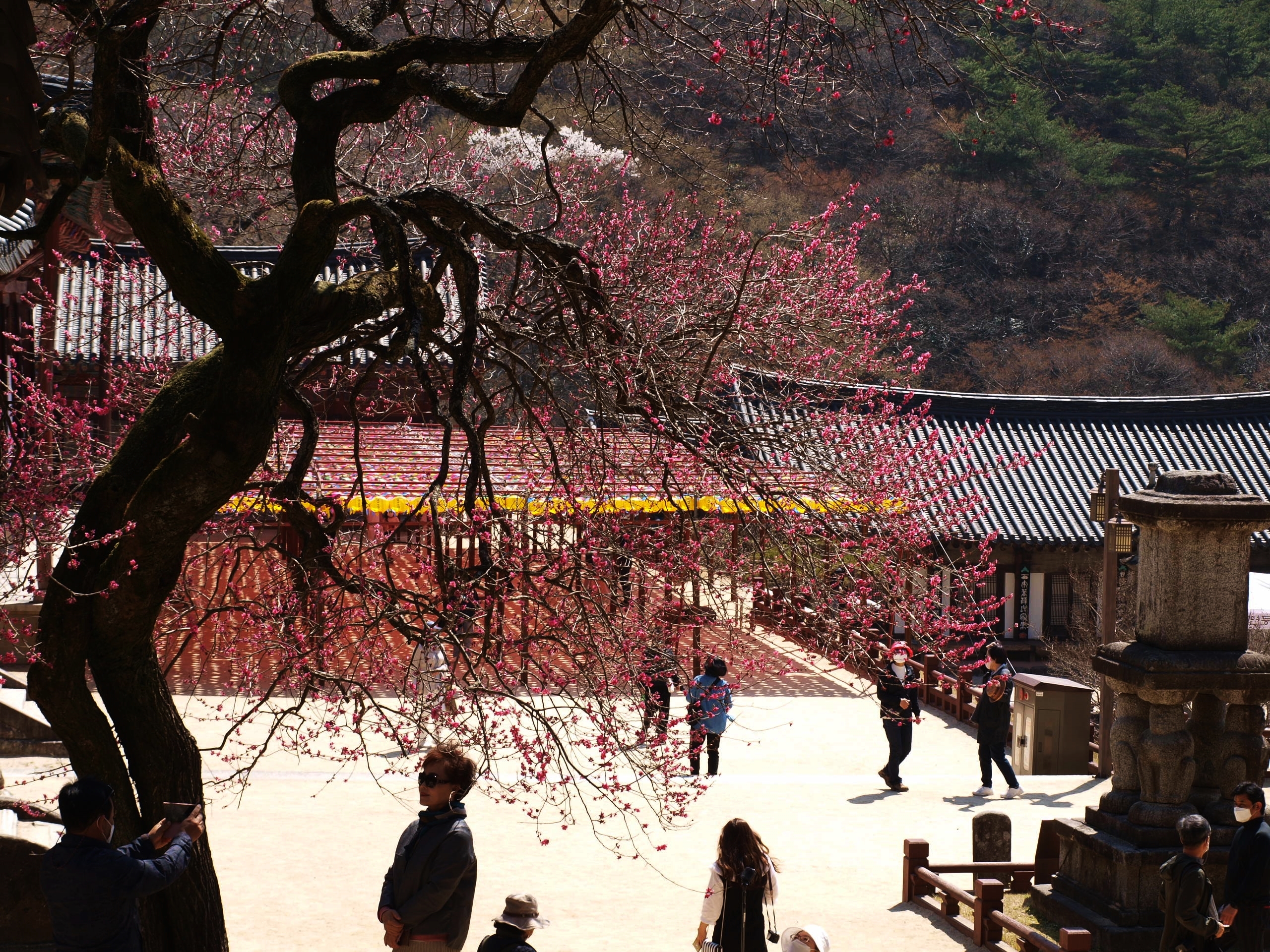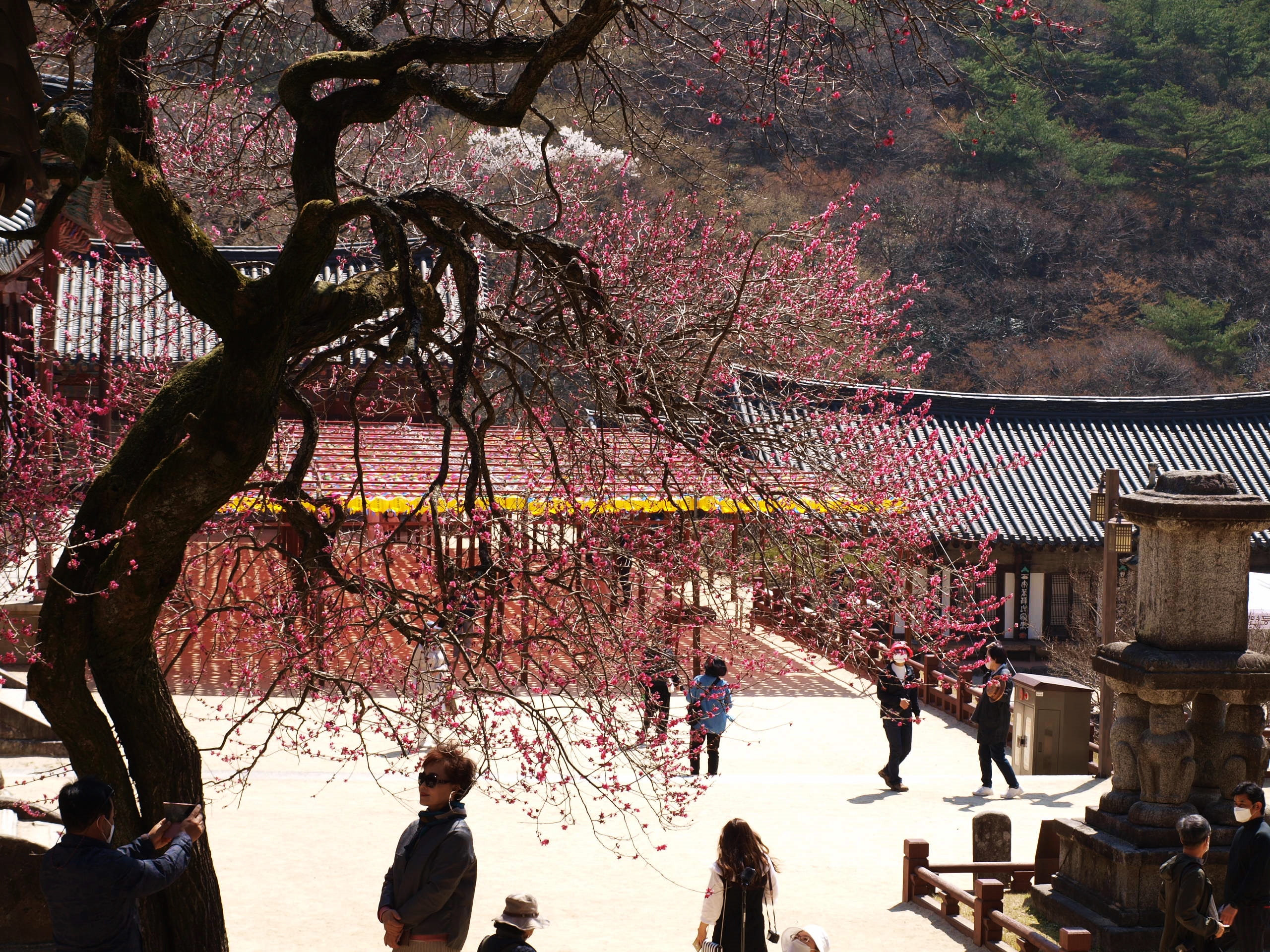 4월1일 올라온 사진을 보니 화엄사 흑매화 꽃이 만개 하였다고 해서 4일날 갔더니 그사이 꽃색이 흐려져 있고 시든꽃이 제법 있었다. "화무십일홍" 이라고 했던가 조금 더 일찍 올걸 ..... 아쉬움이 남는다. 내년에 다시 한번 와야겠다는 생각을 하며 이만큼 있는것만으로도 감사하며 담아왔다.