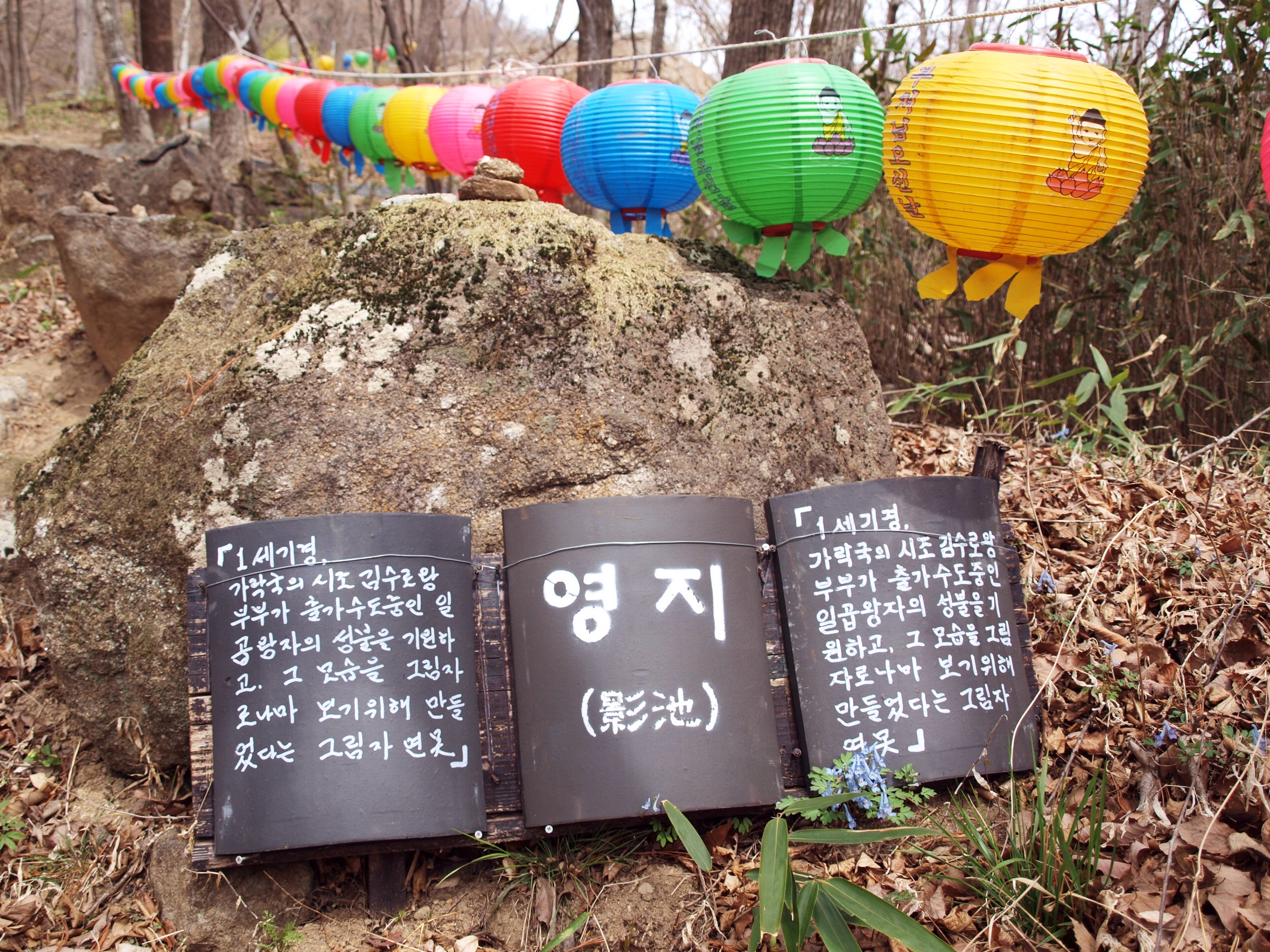 1세기경 가락국의 시조 김수로왕 부부가 출가 수도중인 일곱 왕자의 성불을 기원하고 그 모습을 그림자로나마 보기위해 만들었다는 그림자 연못. "영지"