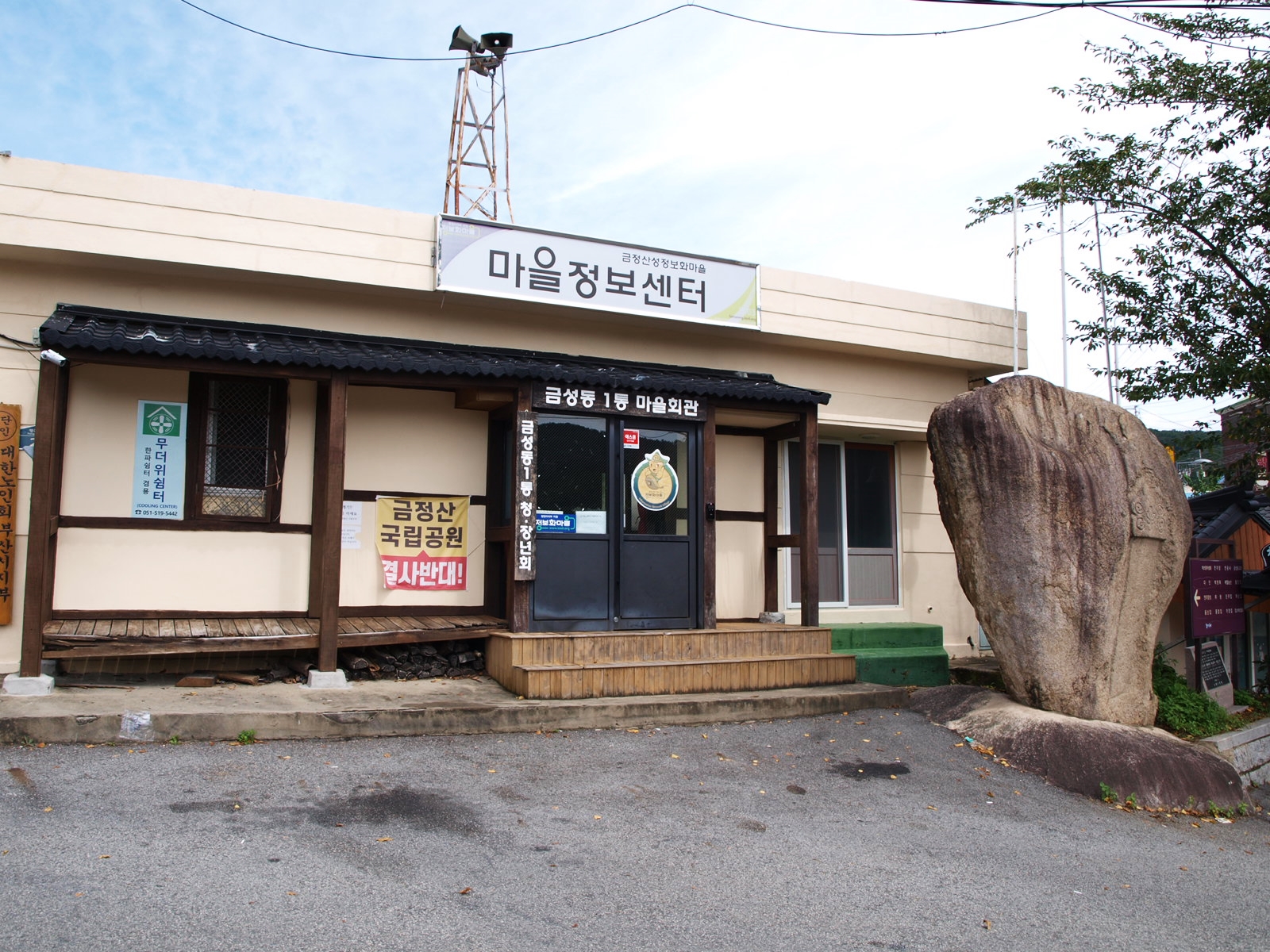 금성동 마을이었다. 뾰족하게 보이는 바위산이 파리봉이다
