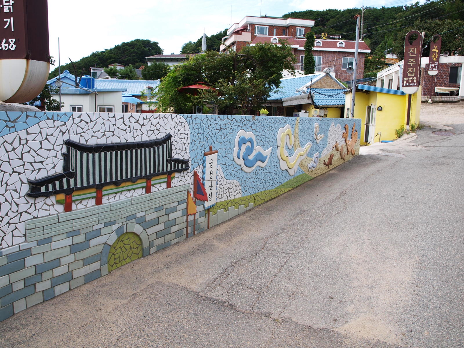 금정산성 벽화가 그려져 있다. 이곳은 음식점이 많은데 주로 염소고기 오리고기 닭백숙 쇠고기....