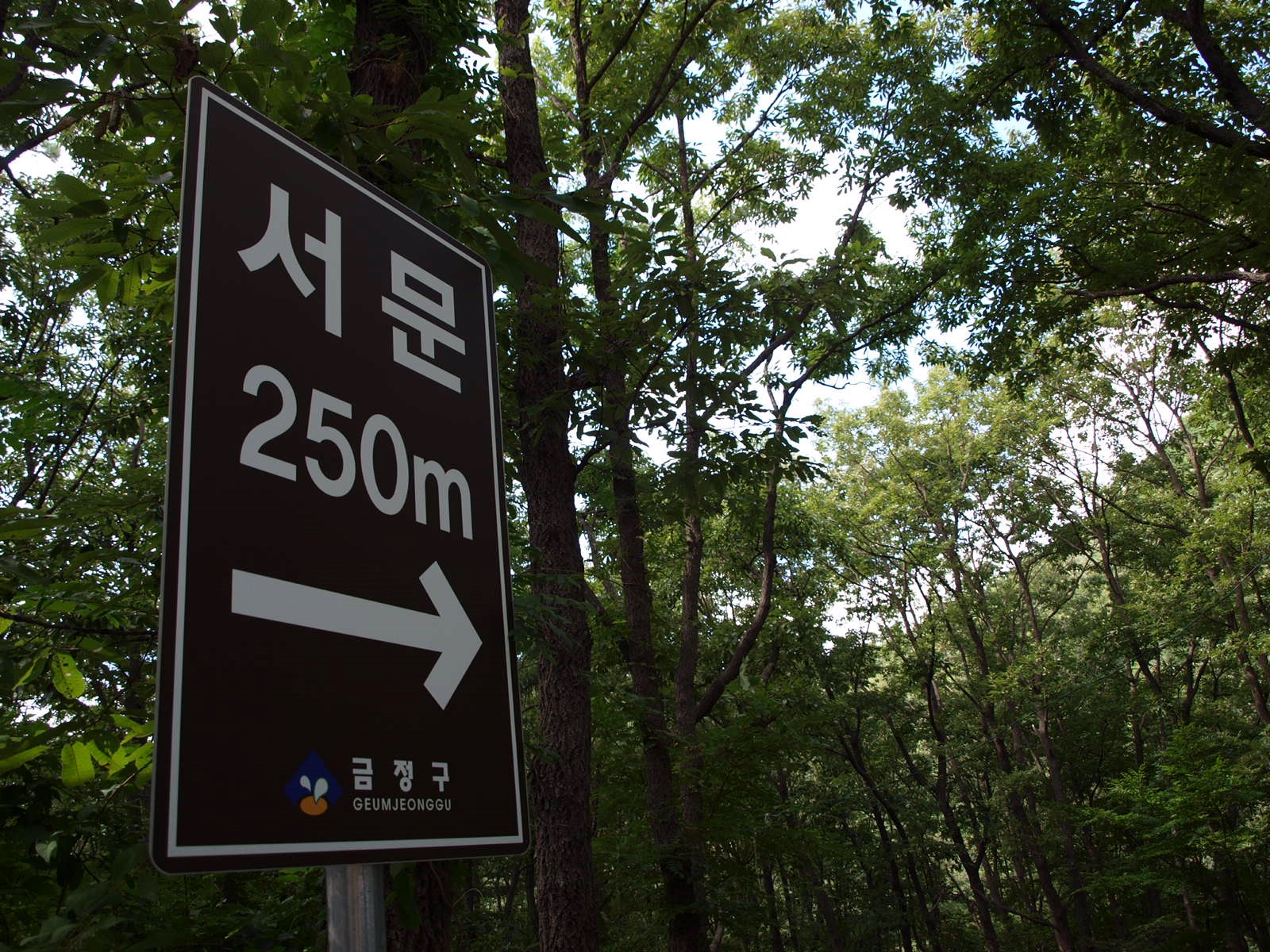 도로 갓길을 걸어 내려왔더니 서문국수집 앞에 서문으로 가는 이정표가 있다