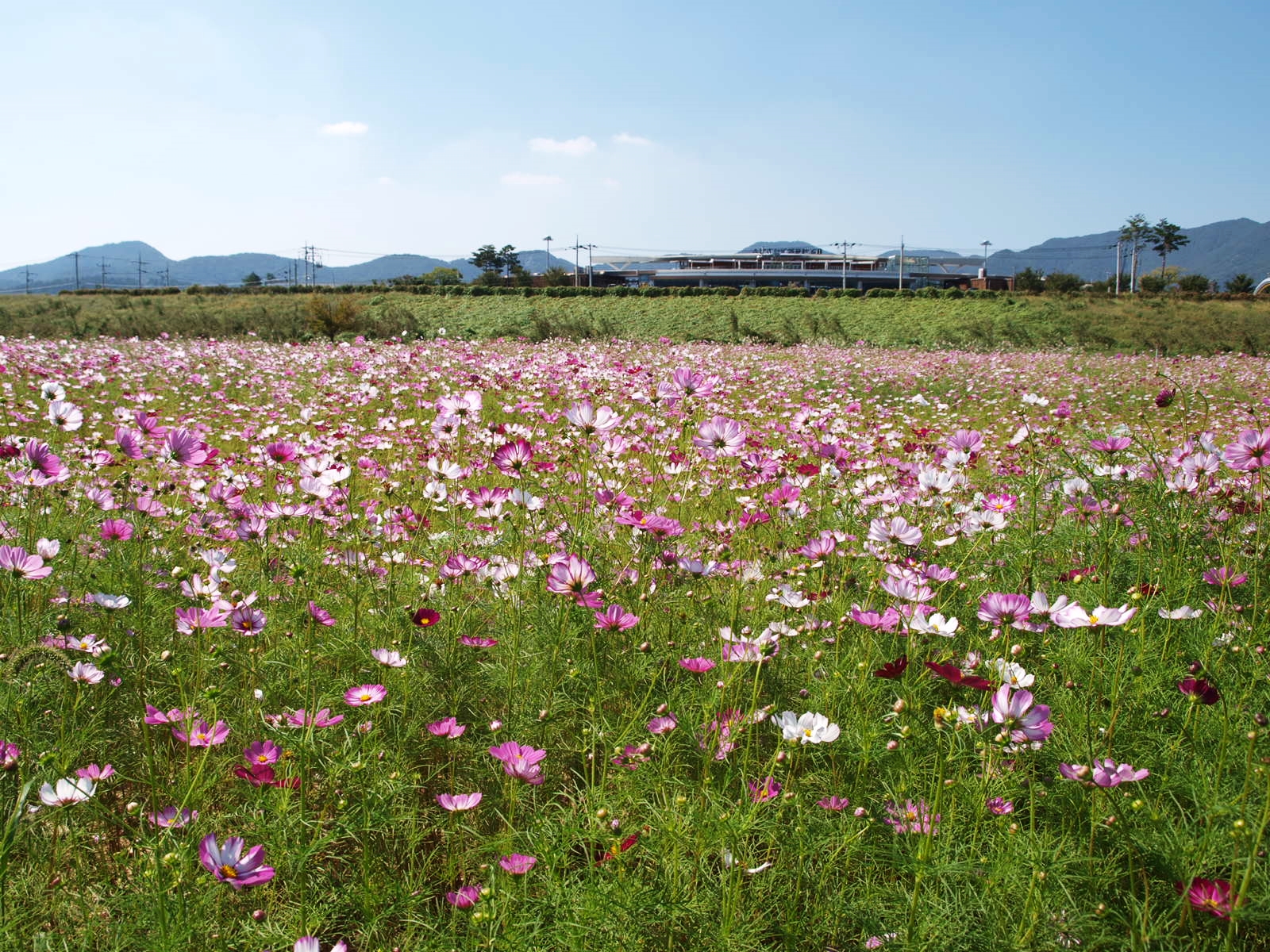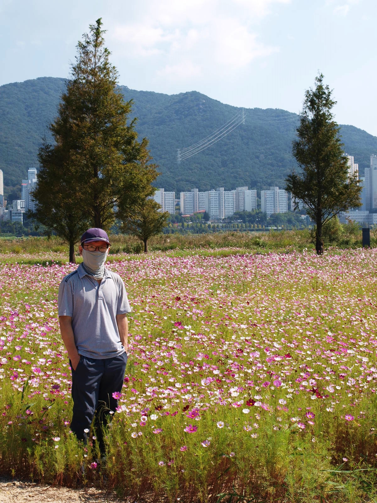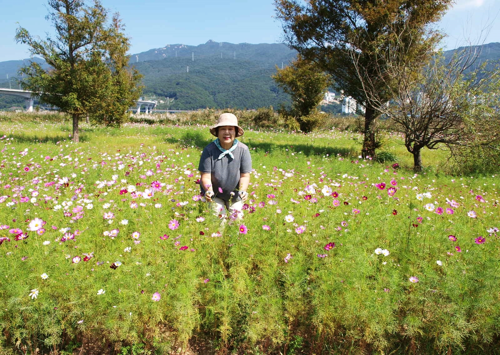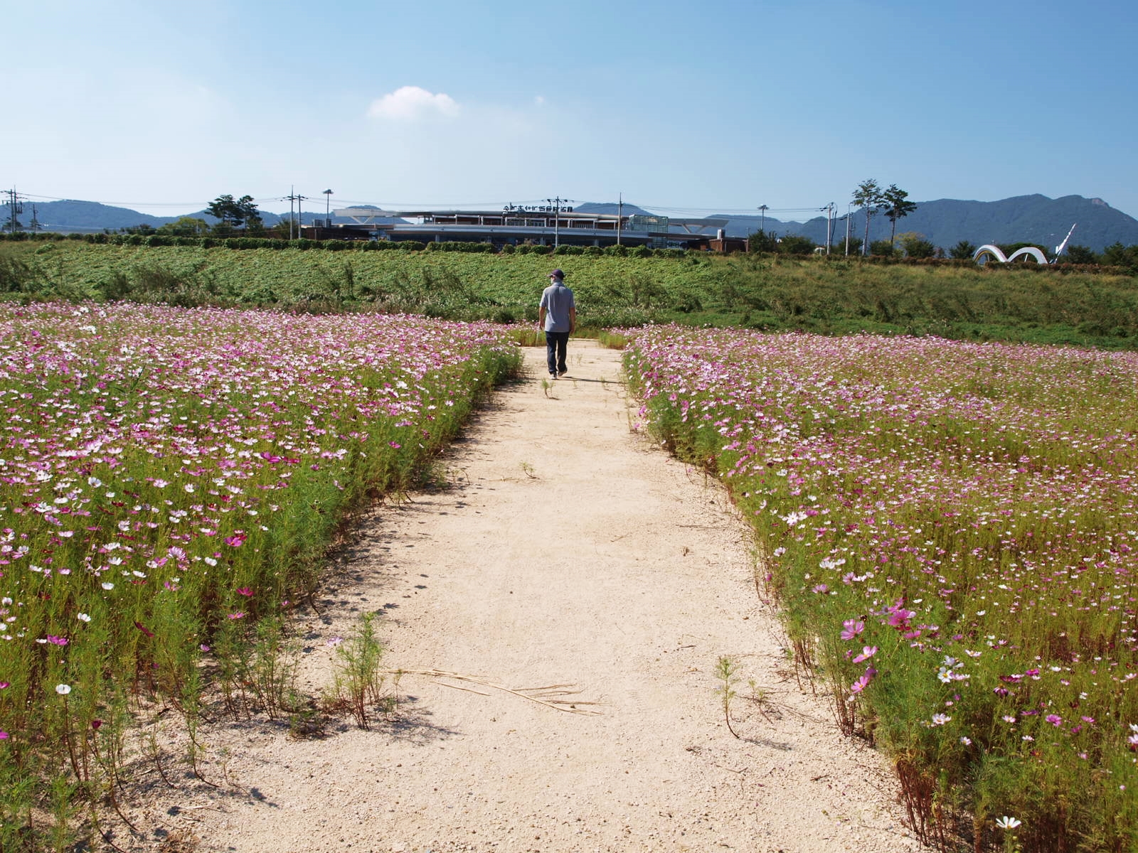 뜨거운 한낮에 코스모스 꽃길 걸으며 행복한 시간이었다.
