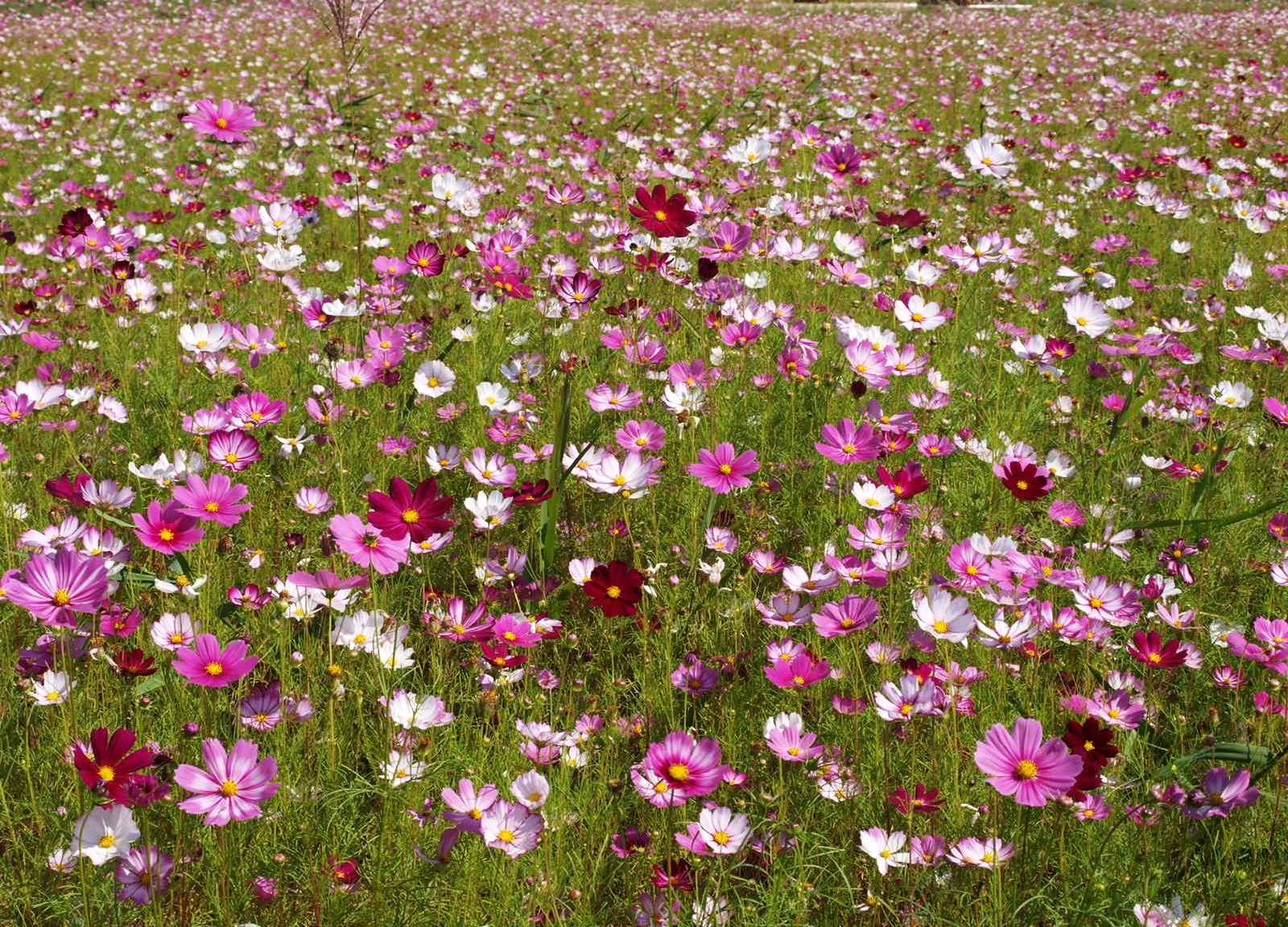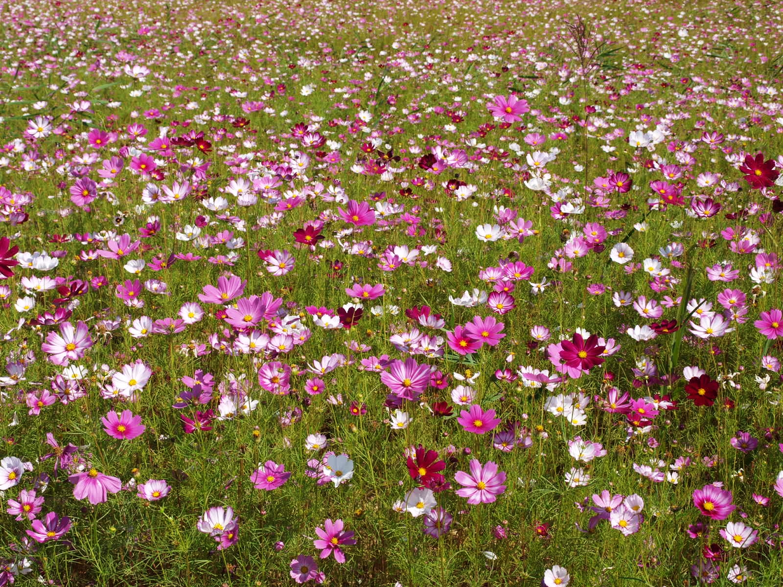 코스모스는 단일식물(낮의 길이가 짧아지는 때에 꽃이 피는 식물)이다. 따라서 하지가 지나면 낮의 길이가 짧아지고 꽃눈형성호르몬의 분비가 많아지게 되어 꽃눈이 나오고 꽃이 피게 된다. 그러나 코스모스는 씨가 발아하기 위해 25℃ 이상으로 기온이 높아야 한다. 다른 식물에 비해 늦게 싹이 나와 자랐기 때문에 꽃을 피울 만큼 자라려면 시간이 걸리게 되므로 가을에야 꽃이 피게 된다.