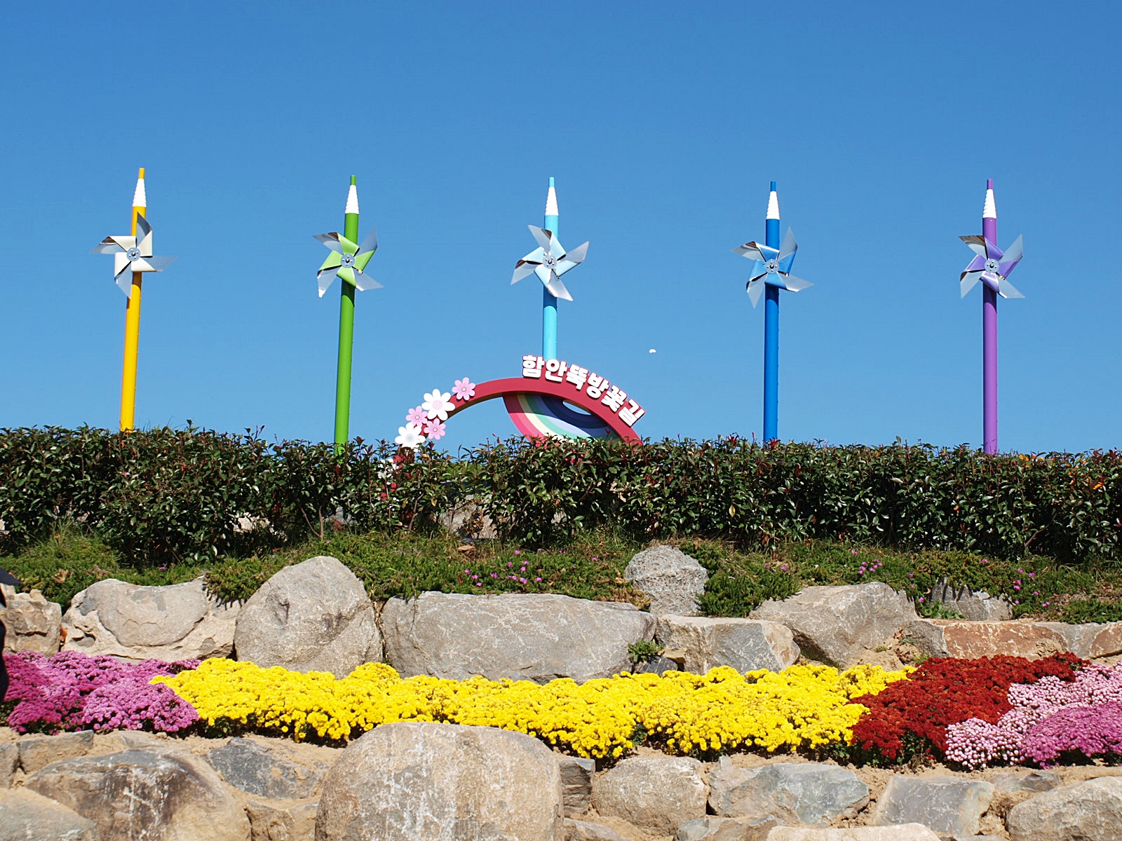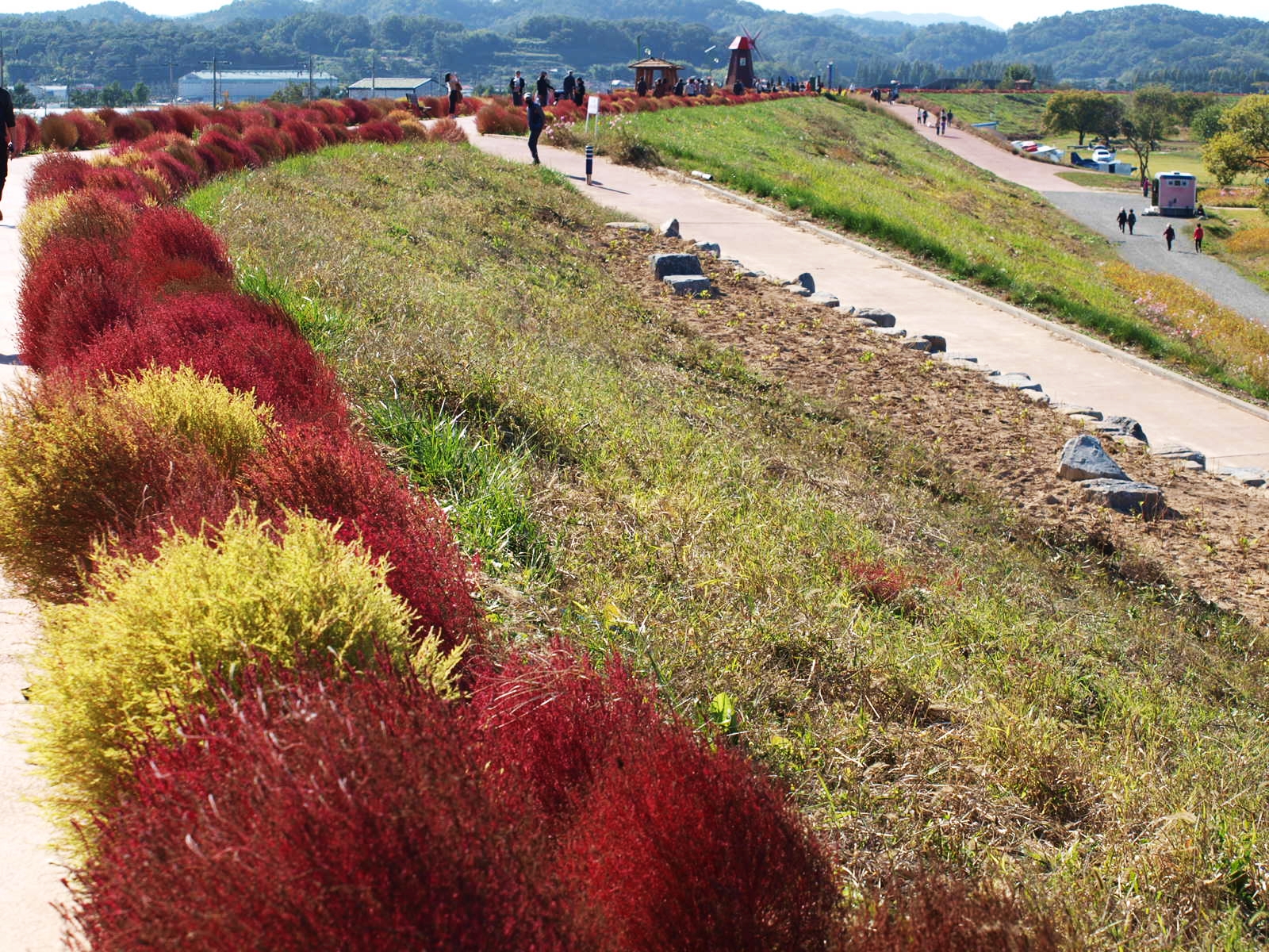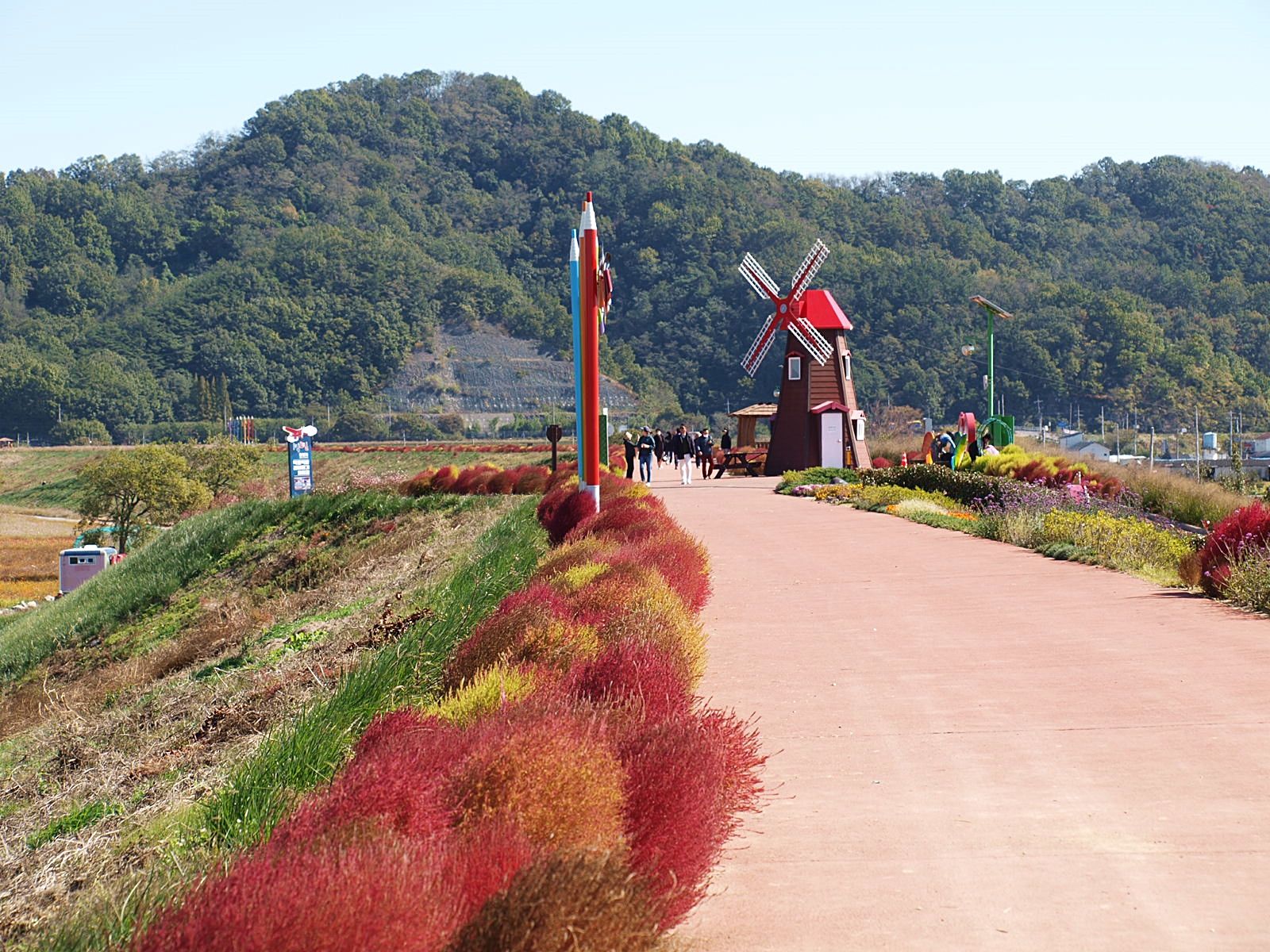 풍차를 비롯해 바람개비, 조각상 등이 설치돼 있어 포토존 역할을 하고, 길 양쪽으로 꽃들이 가득해 걷는 것만으로도 기분이 좋아진다. 이 길이 더욱 환상적인 것은 엄청난 규모의 꽃밭을 한 눈에 감상할 수 있다는 것. 가을 바람이 불면 빨간색, 흰색, 보라색 등 형형색색 다채로운 색깔 물결이 출렁이고, 햇빛의 움직임에 따라 변화하는 자연의 색은 낭만적이다