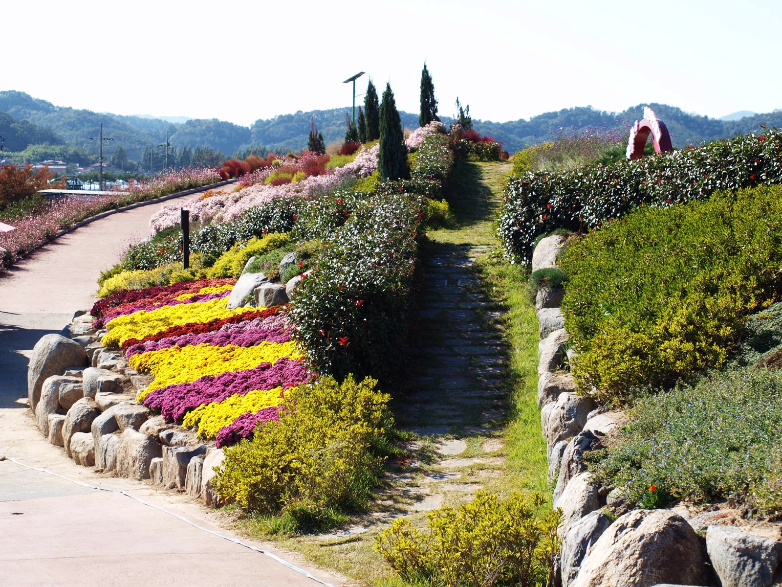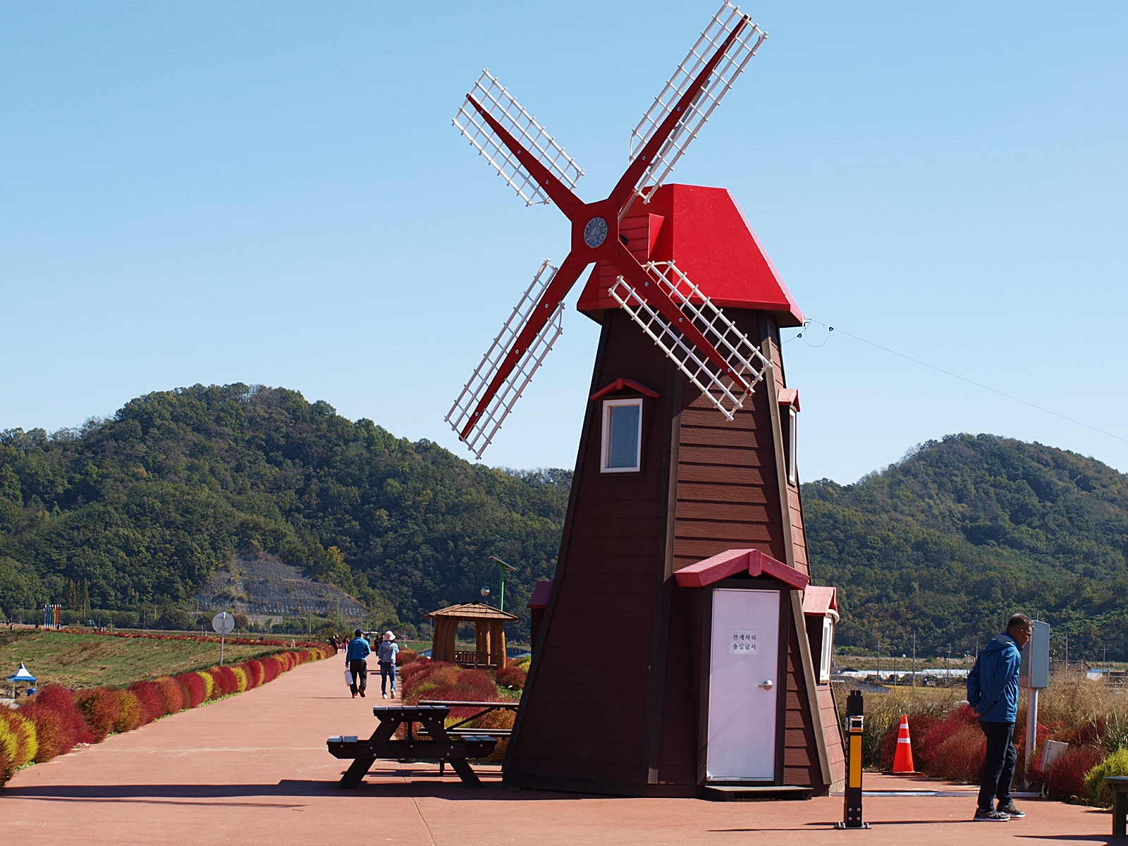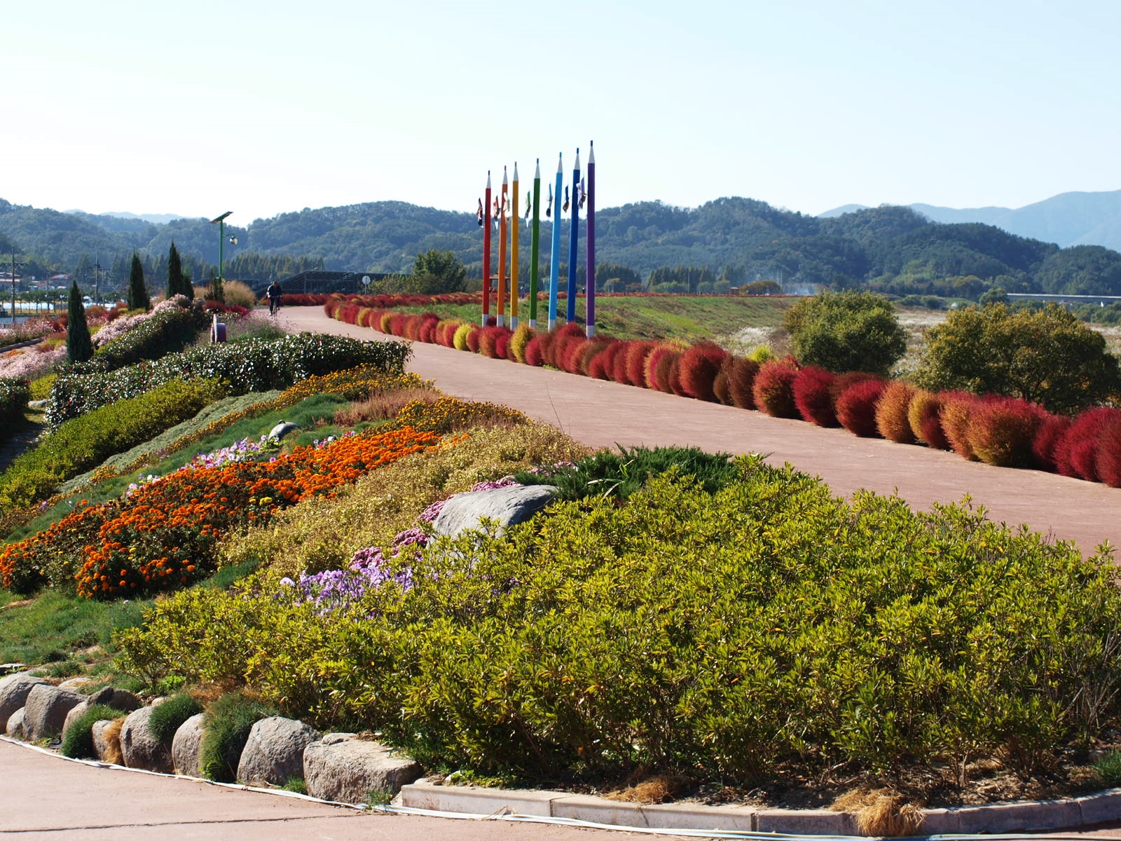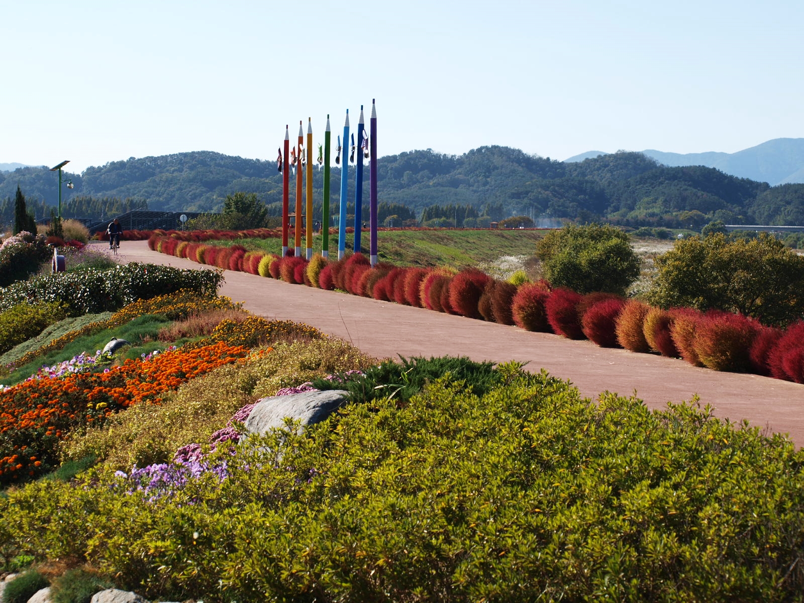 풍차를 비롯해 바람개비, 조각상 등이 설치돼 있어 포토존 역할을 하고, 길 양쪽으로 꽃들이 가득해 걷는 것만으로도 기분이 좋아진다. 이 길이 더욱 환상적인 것은 엄청난 규모의 꽃밭을 한 눈에 감상할 수 있다는 것. 가을 바람이 불면 빨간색, 흰색, 보라색 등 형형색색 다채로운 색깔 물결이 출렁이고, 햇빛의 움직임에 따라 변화하는 자연의 색은 낭만적이다