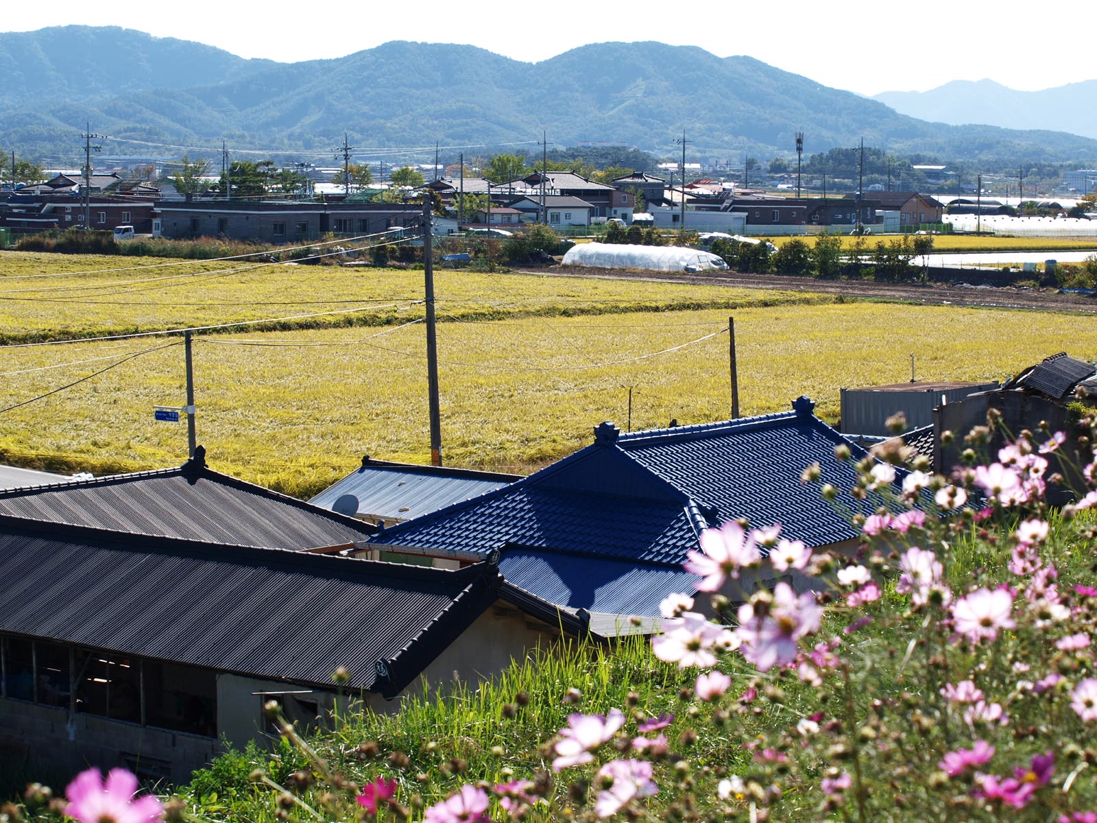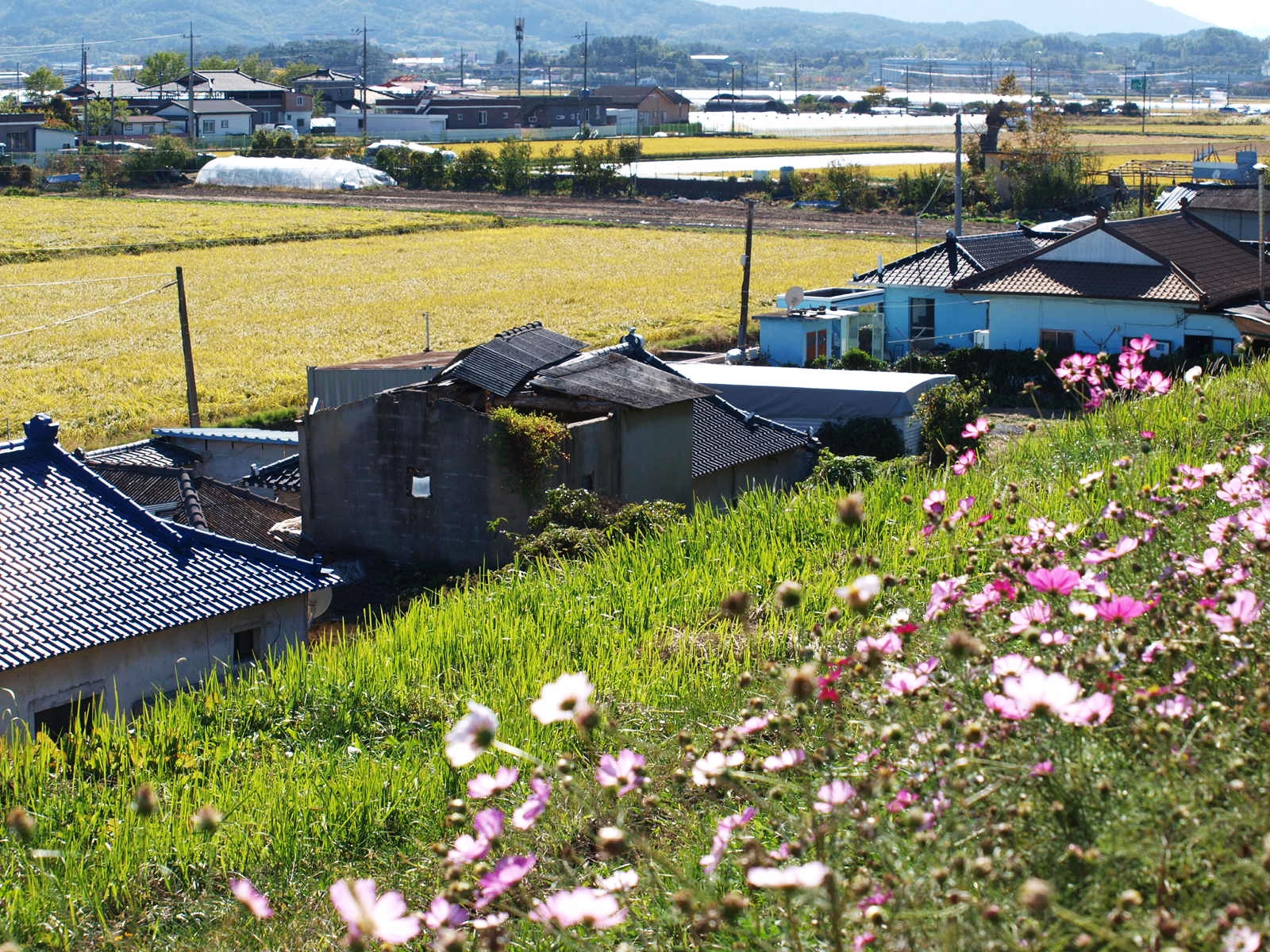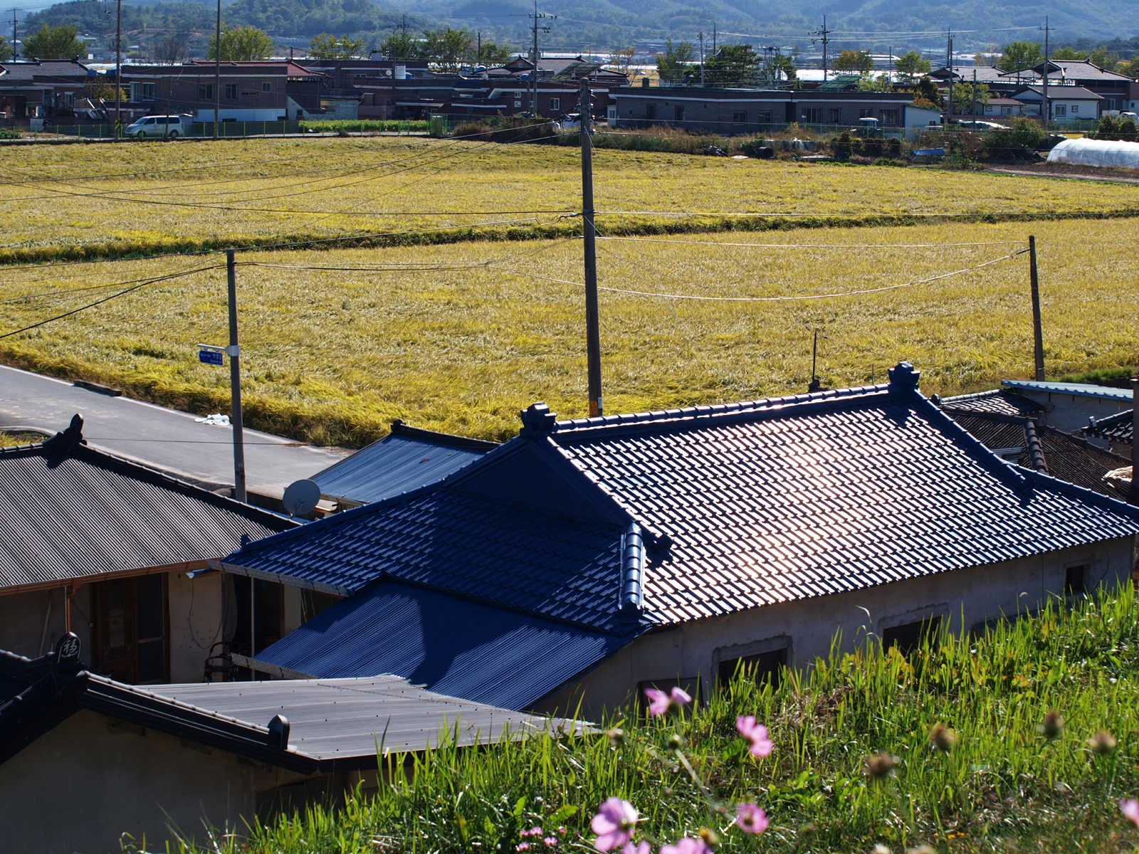 뚝방길 넘어 마을과 황금들녁
