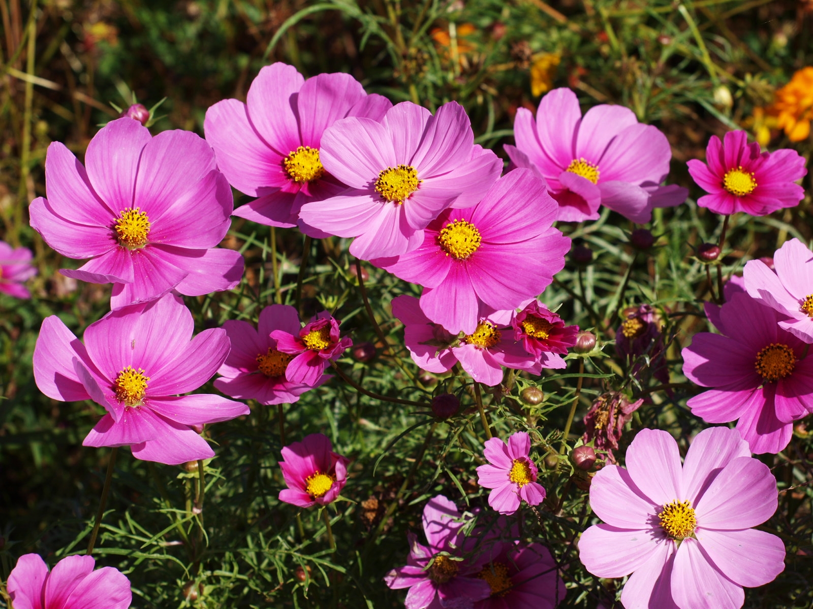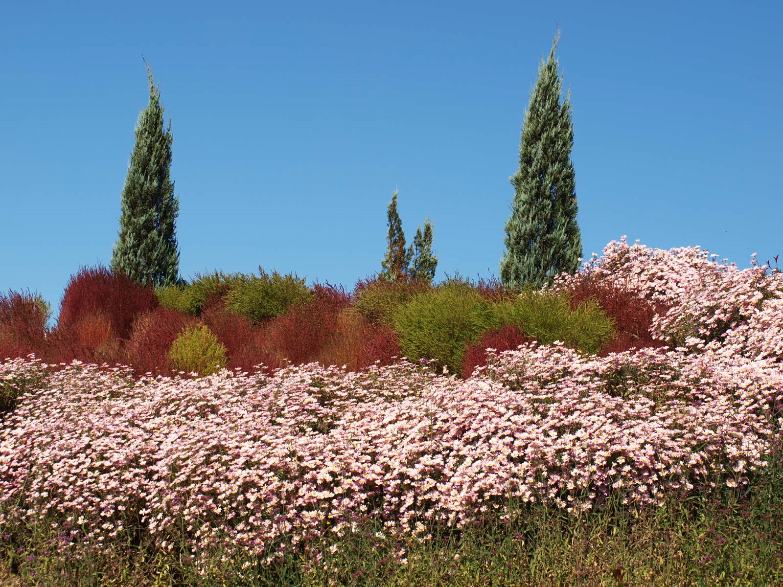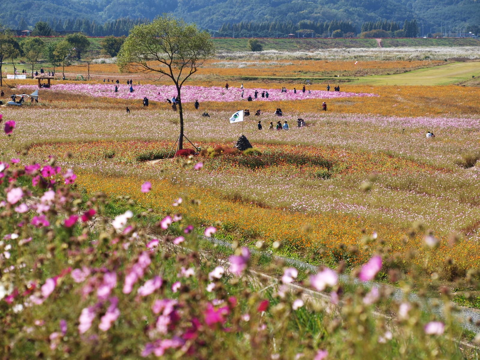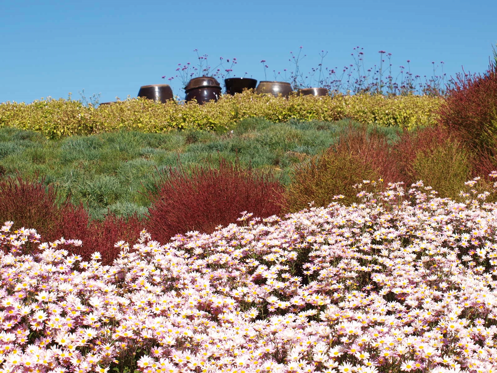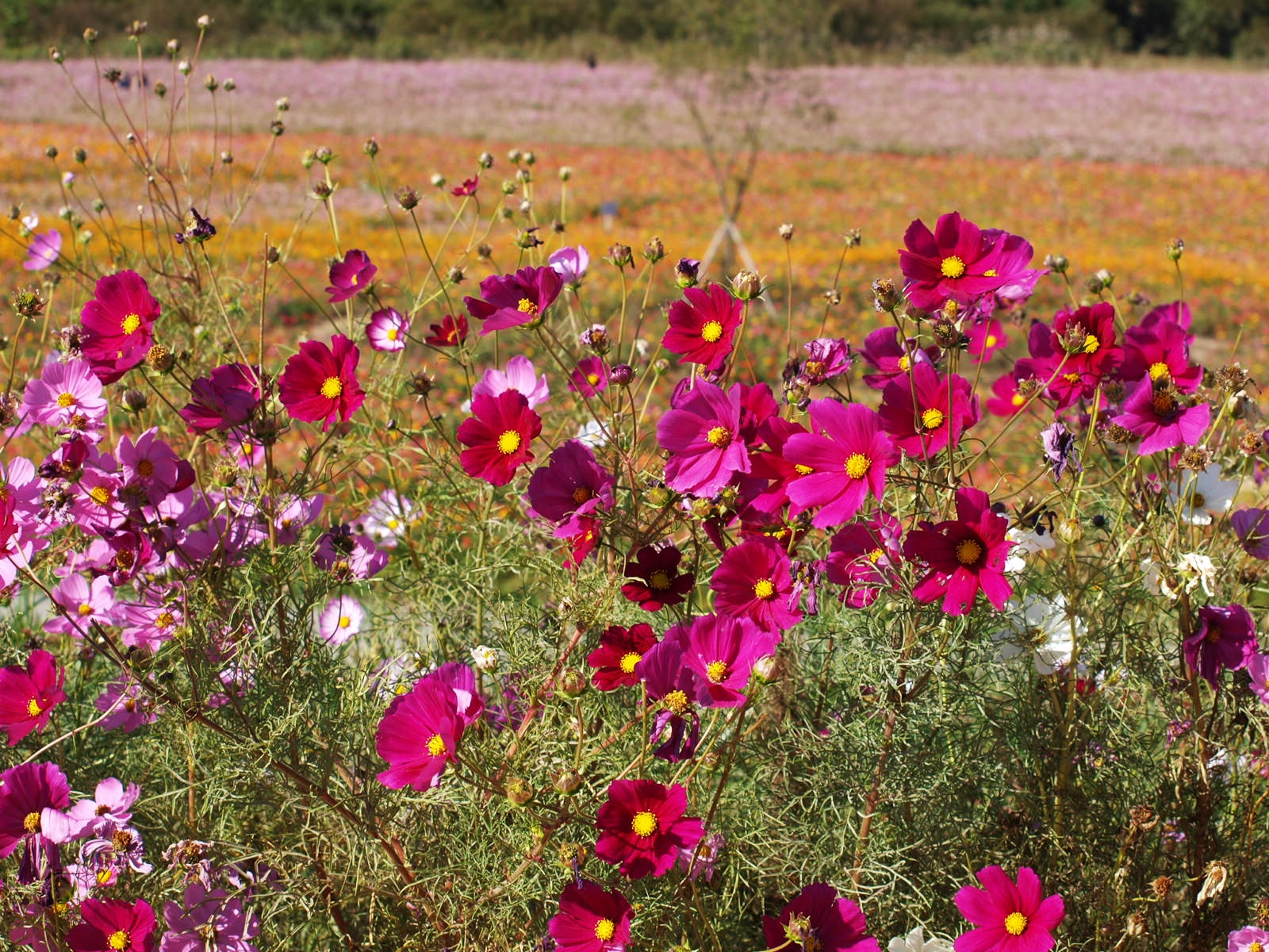 코스모스, 황화코스모스, 백일홍, 천일홍, 버베나, 족두리풀꽃, 댑싸리. 섞여서