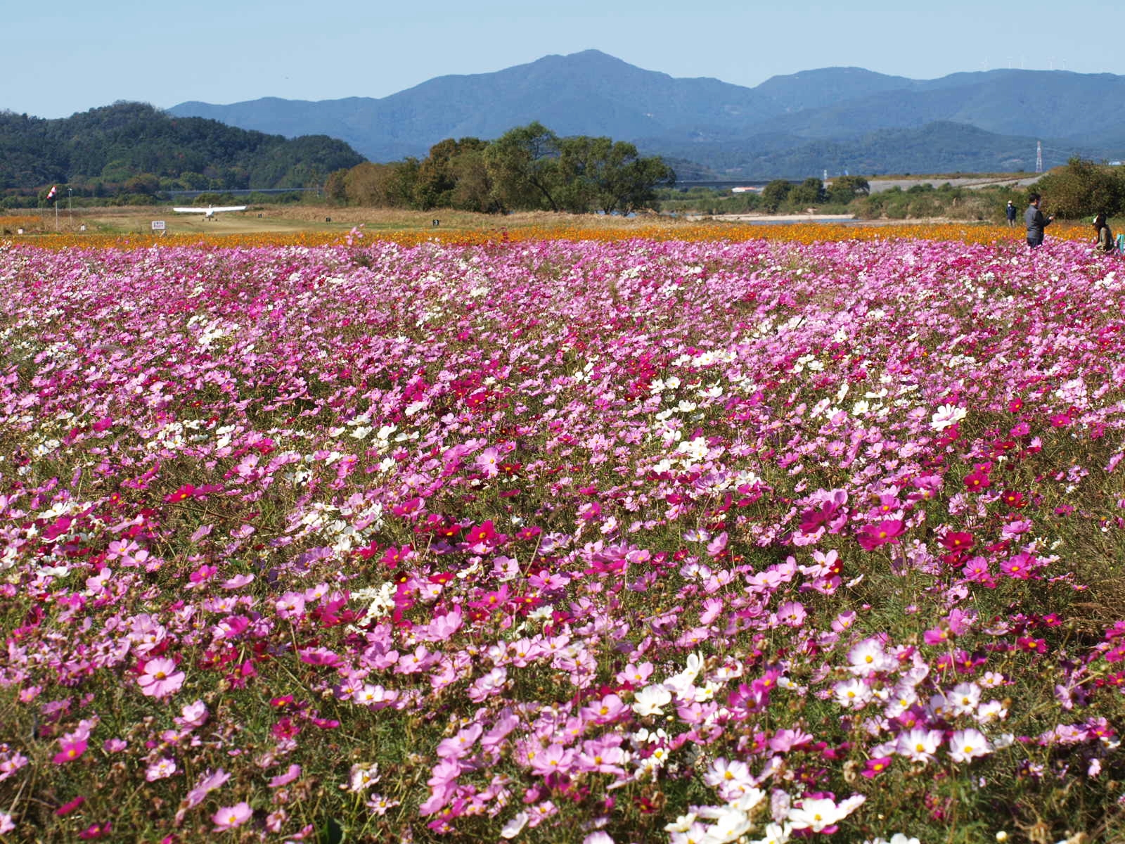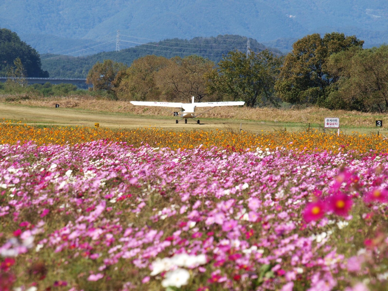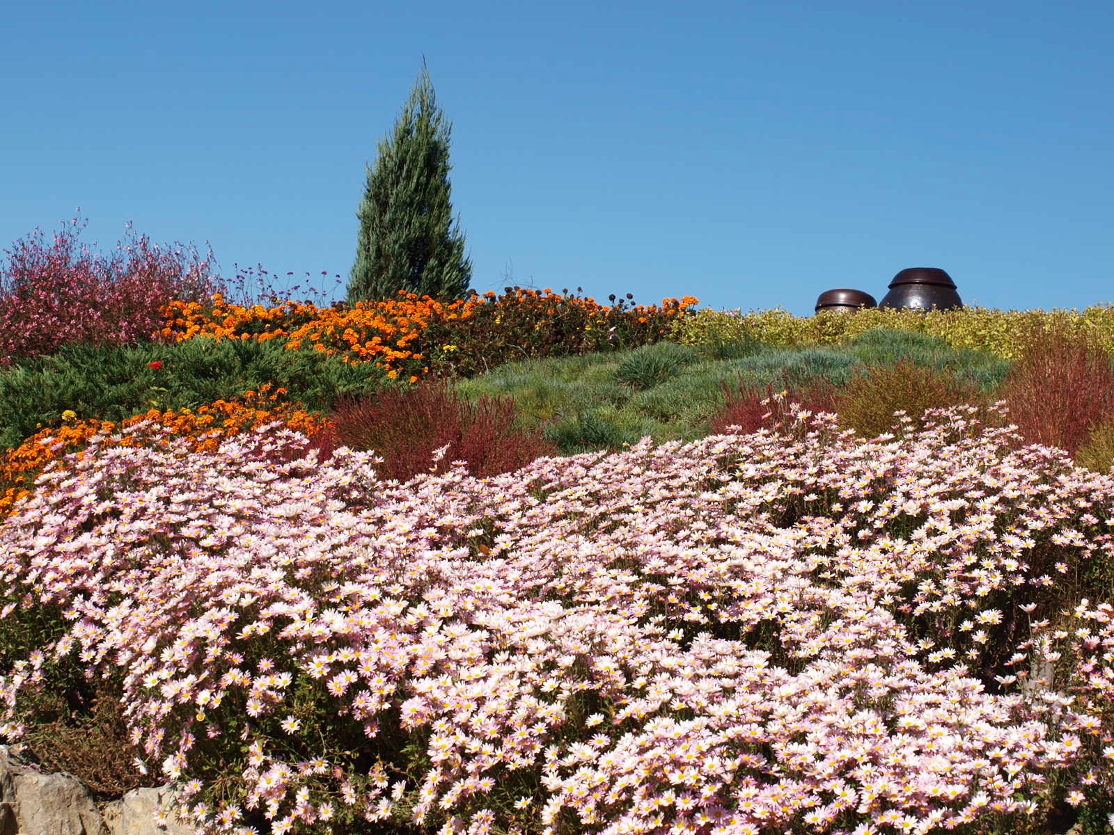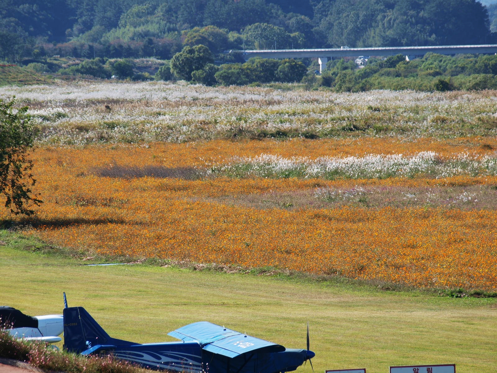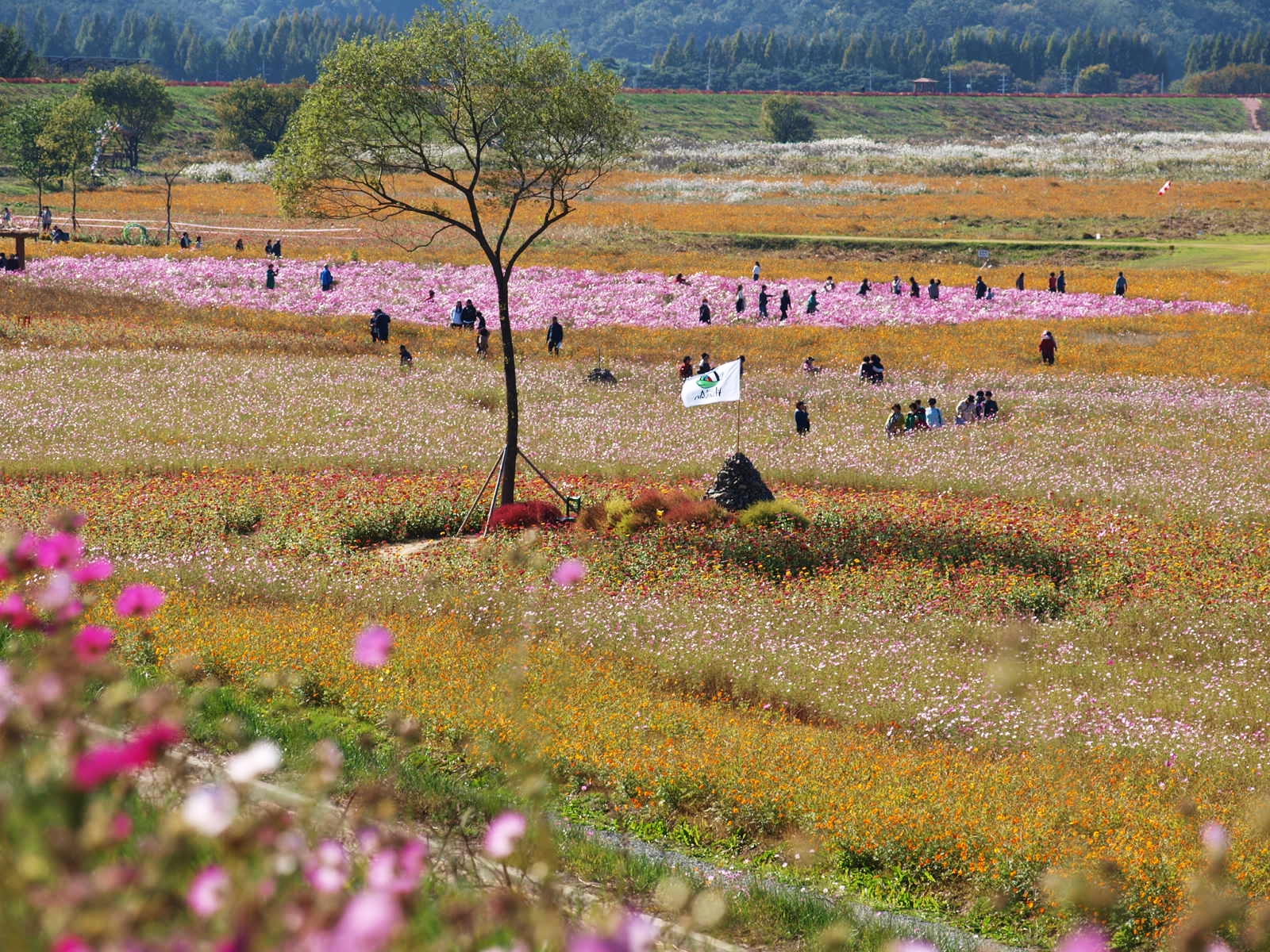 코스모스, 황화코스모스, 백일홍, 천일홍, 버베나, 족두리풀꽃, 댑싸리. 섞여서
