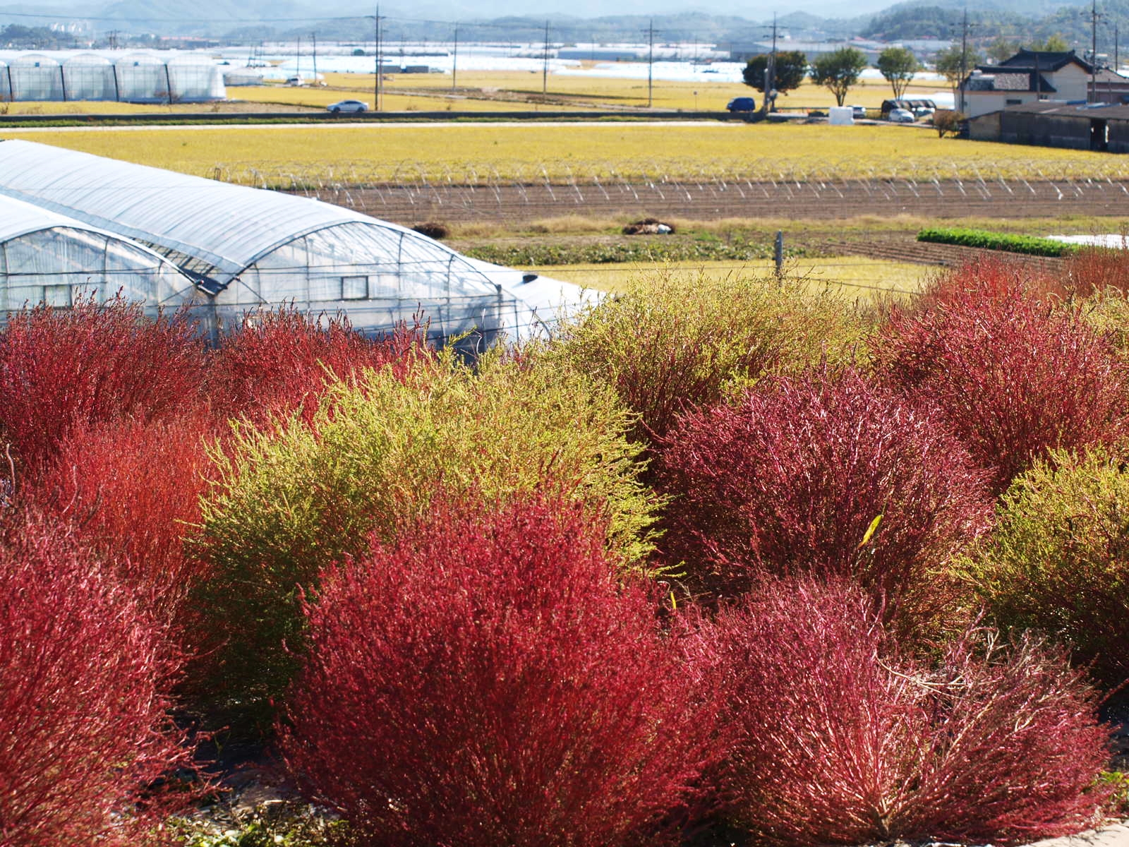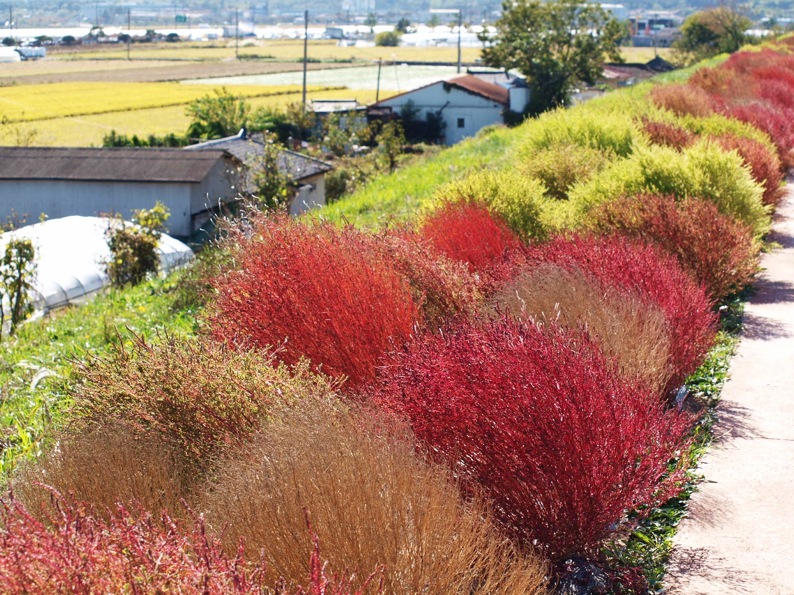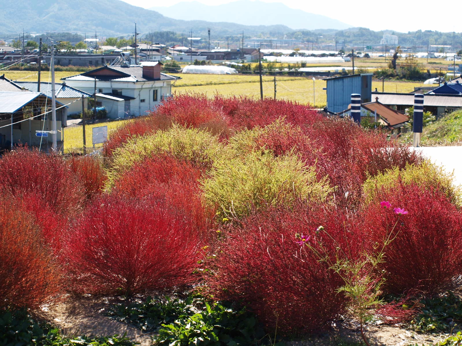 뚝방길 장식은 댑싸리로 ~~ 지난 해는 코스모스 꽃이 정말 예쁘게 피었었는데 ... 올해는 댑싸리로 교체했네.