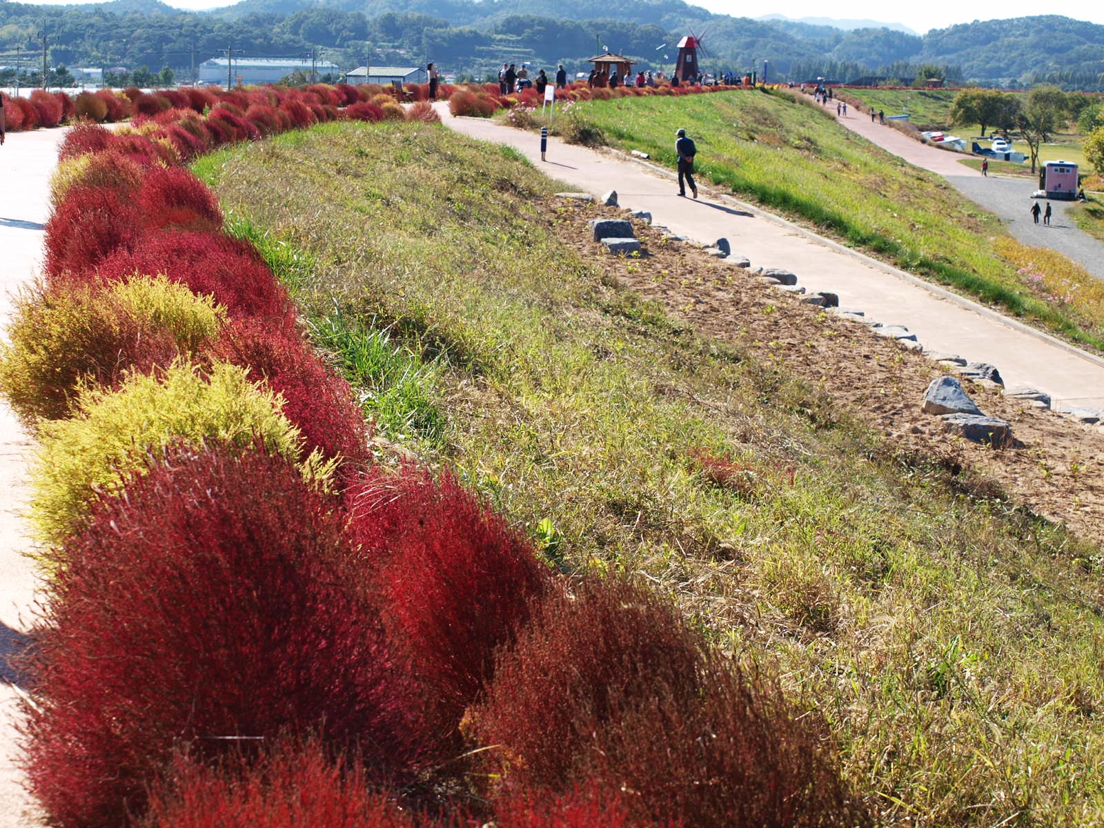 뚝방길 장식한 댑싸리와 풍차
