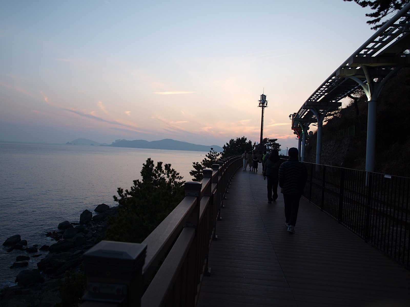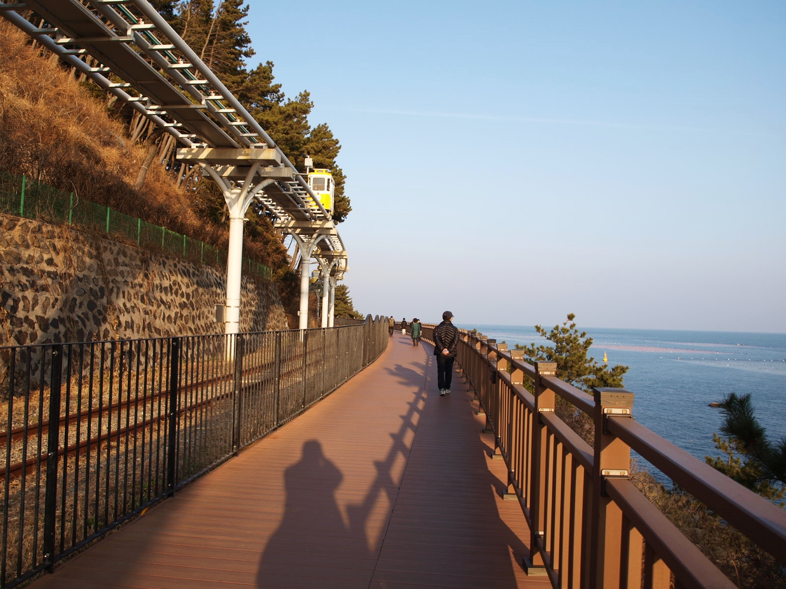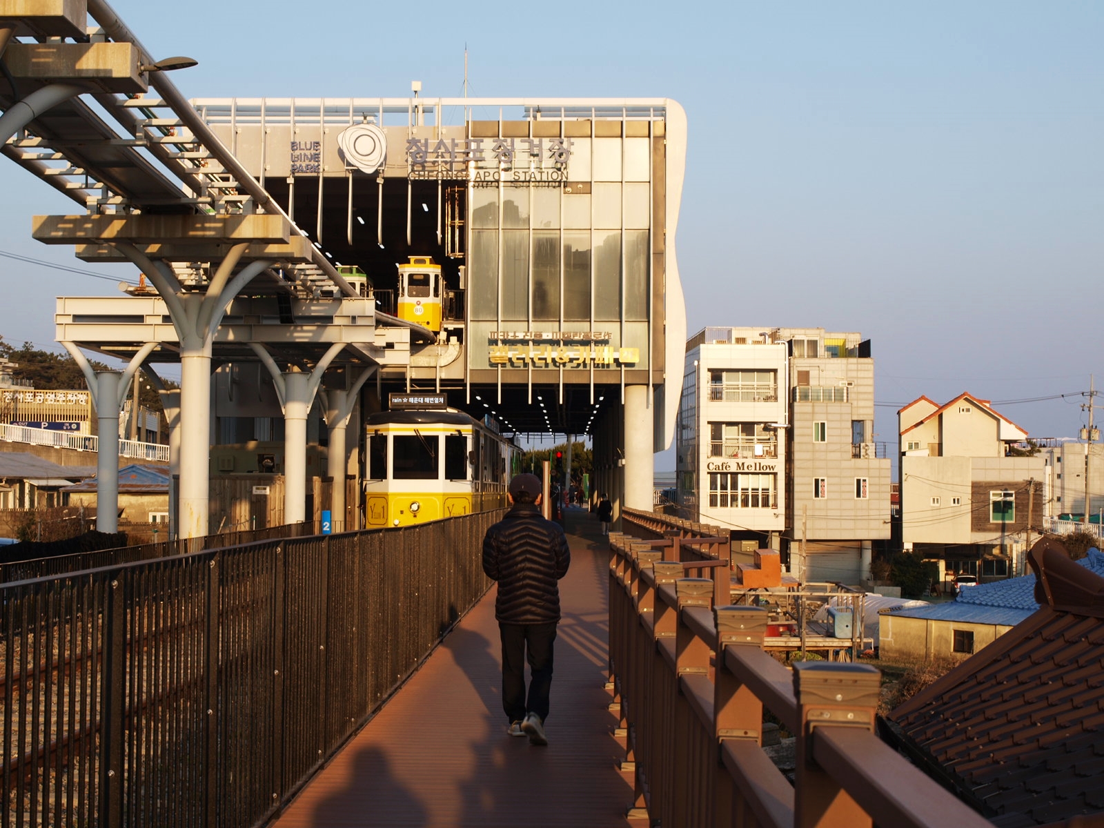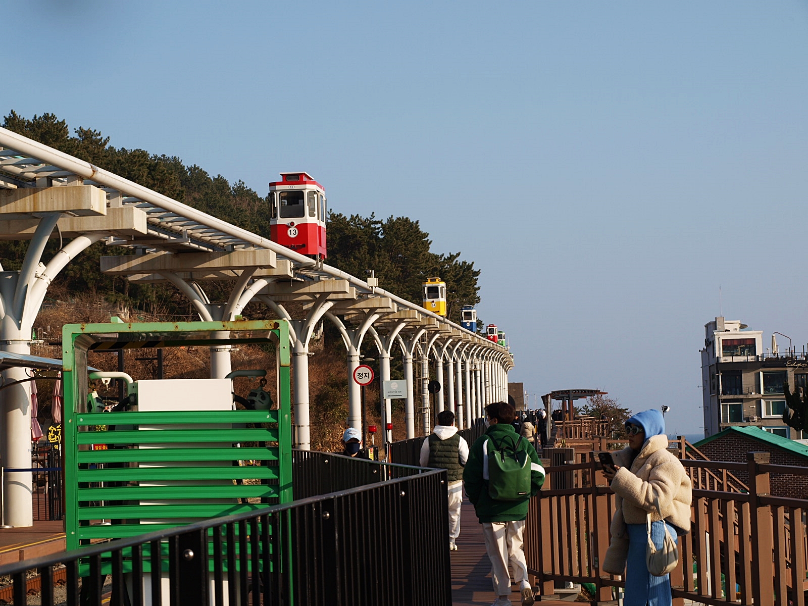 캡슐은 이곳 청사포가 종점이고, 해변 열차는 송정까지 간다. 이곳 청사포에서 탈수도 있다.