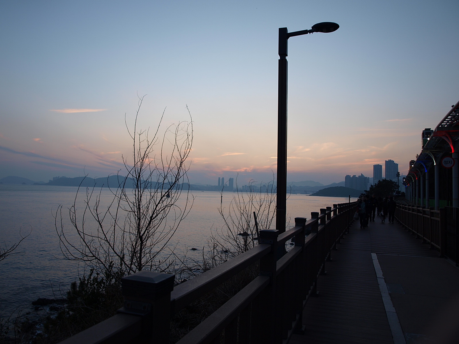 그걸 쓰려고 해운대시장에 들러 가온밀면 하나씩, 만두 한접시 먹고 해운대 해수욕장으로 가서 트래킹 시작
