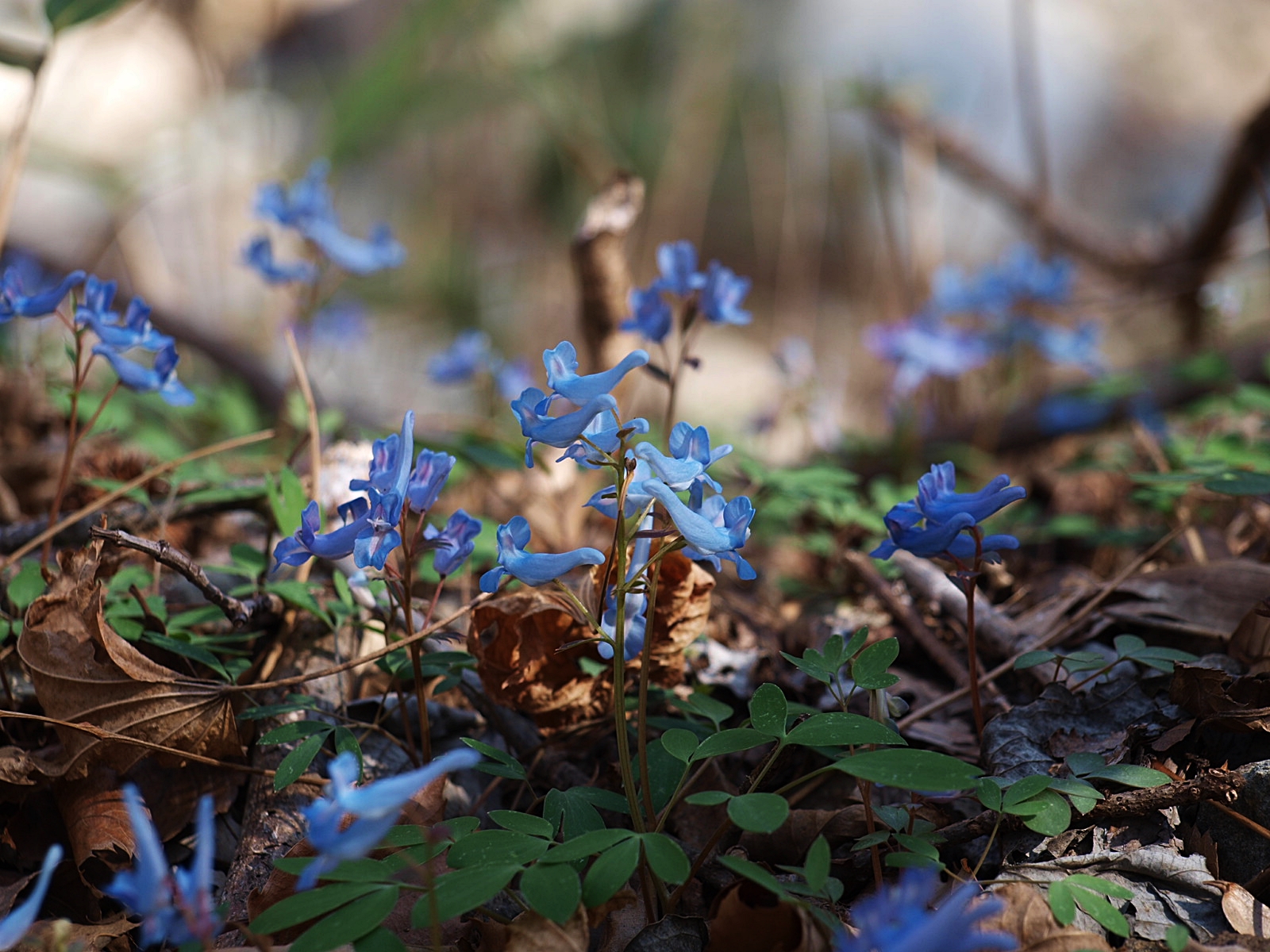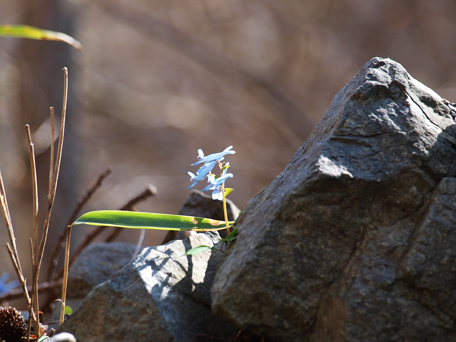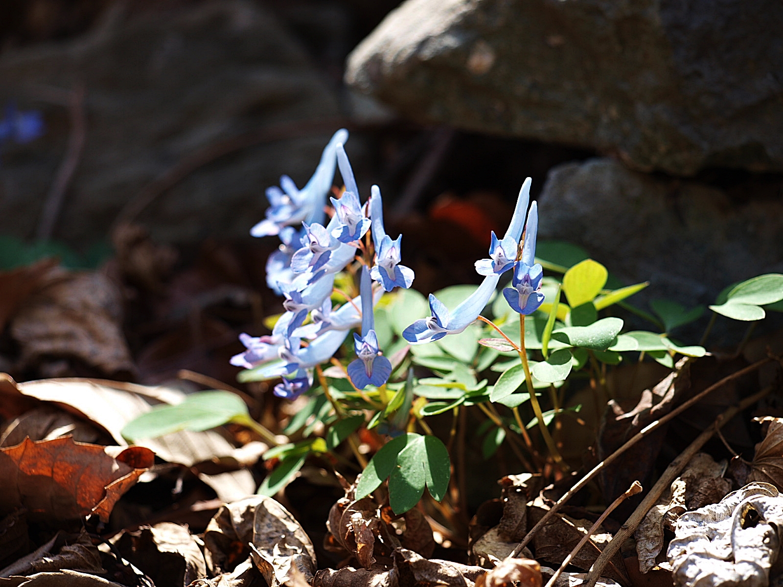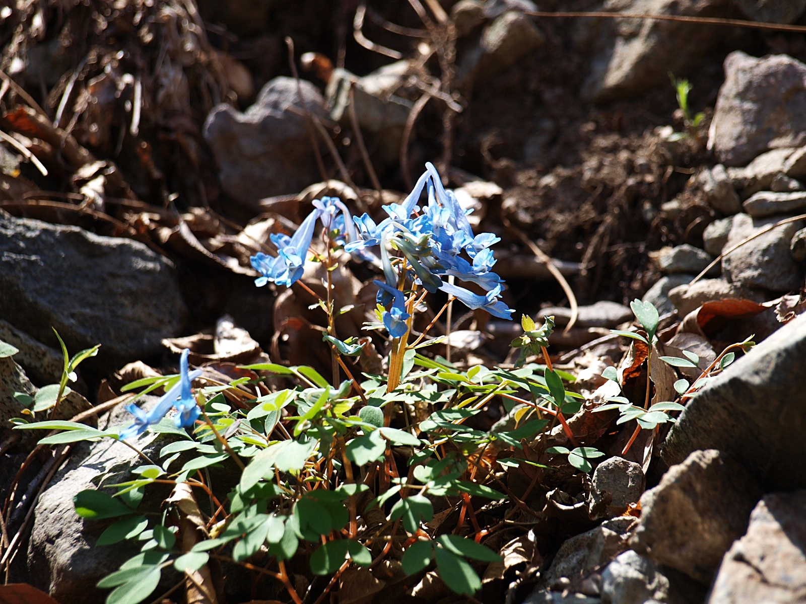 낙엽속에서 고개를 내밀고 핀 현호색 꽃이 감동을 준다