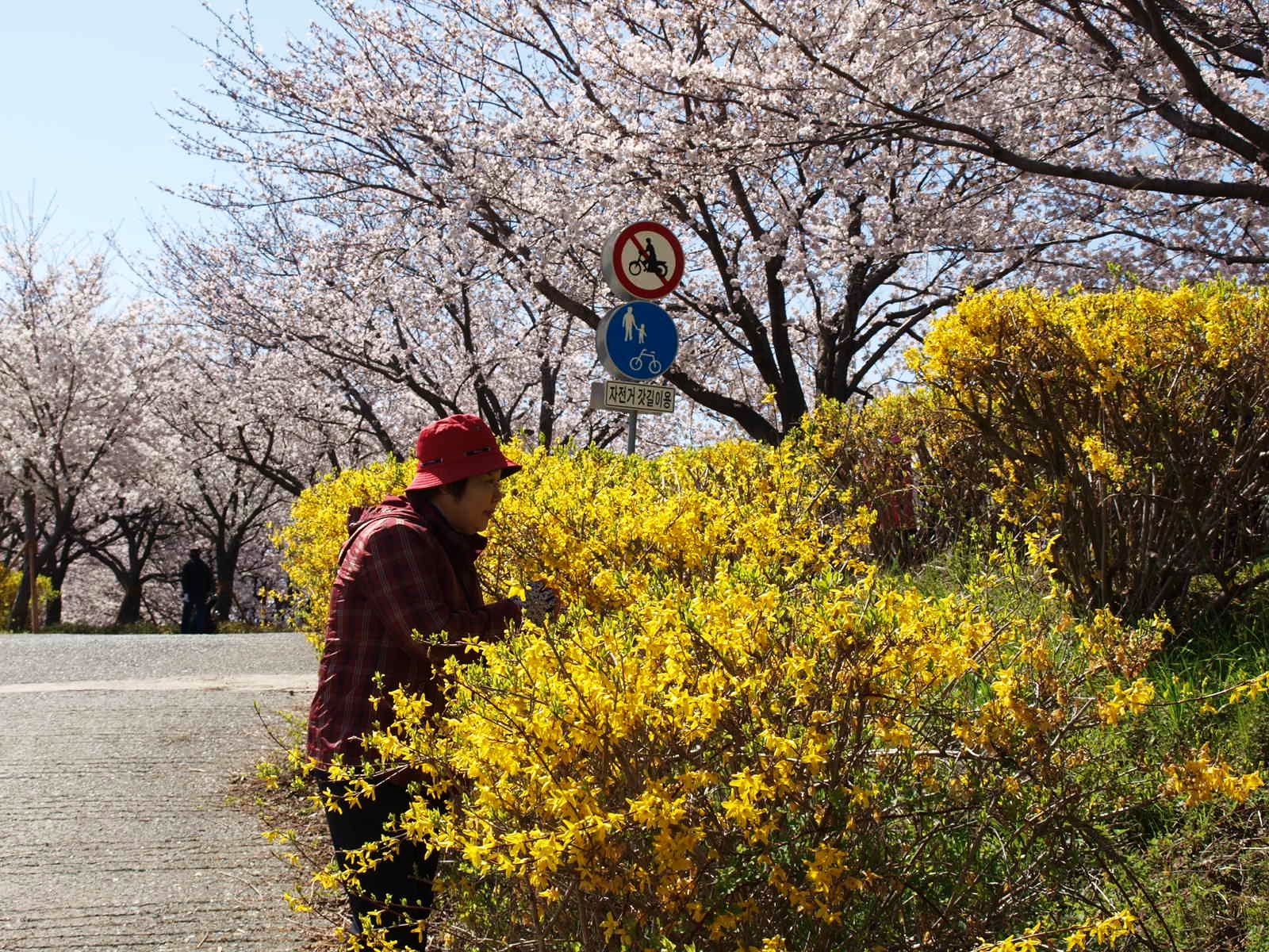 사람들 많이 걸어가고 있는데 ... 꽃구경 나온 사람들 .....