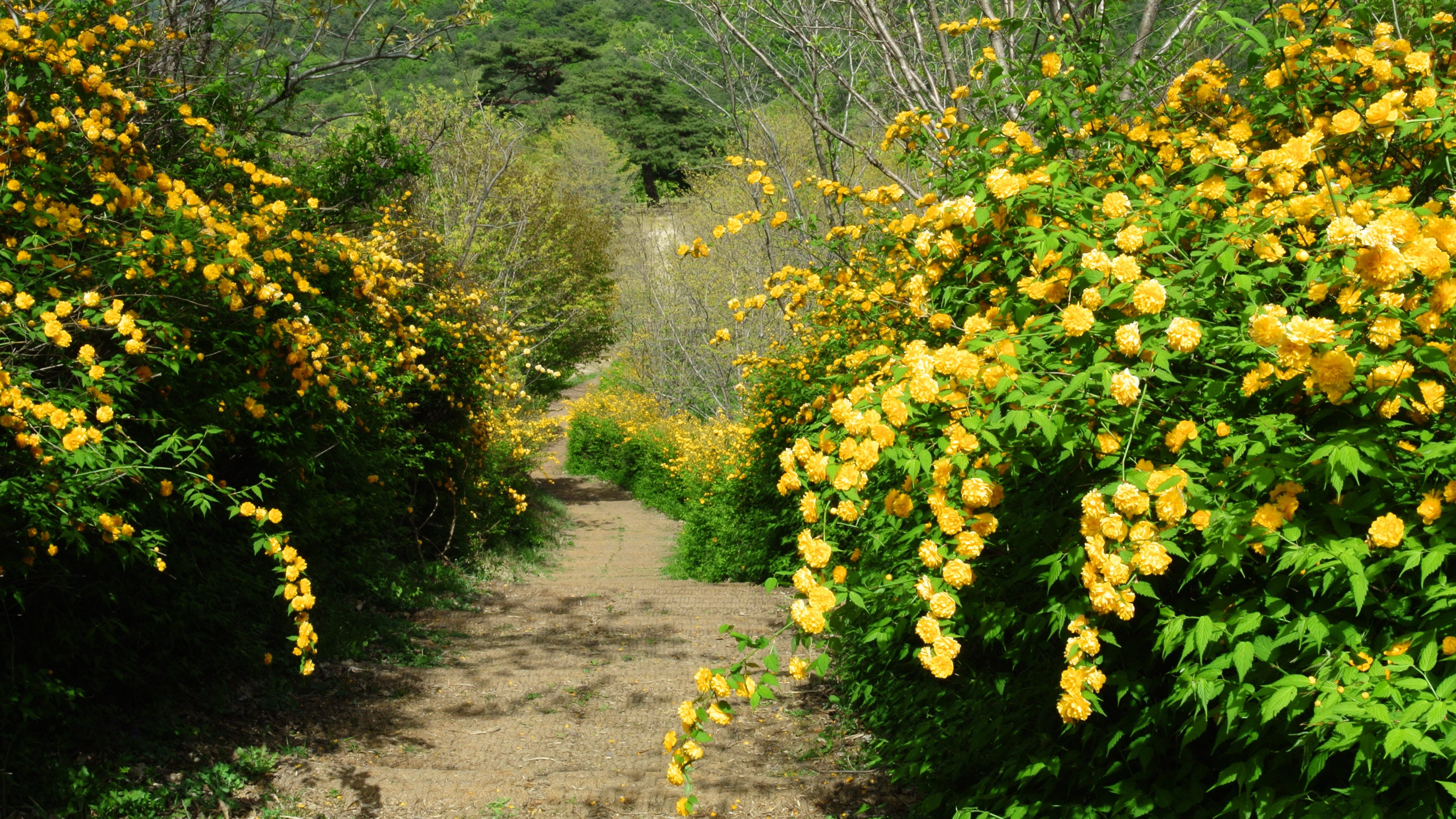 죽단화가 피어있는 길