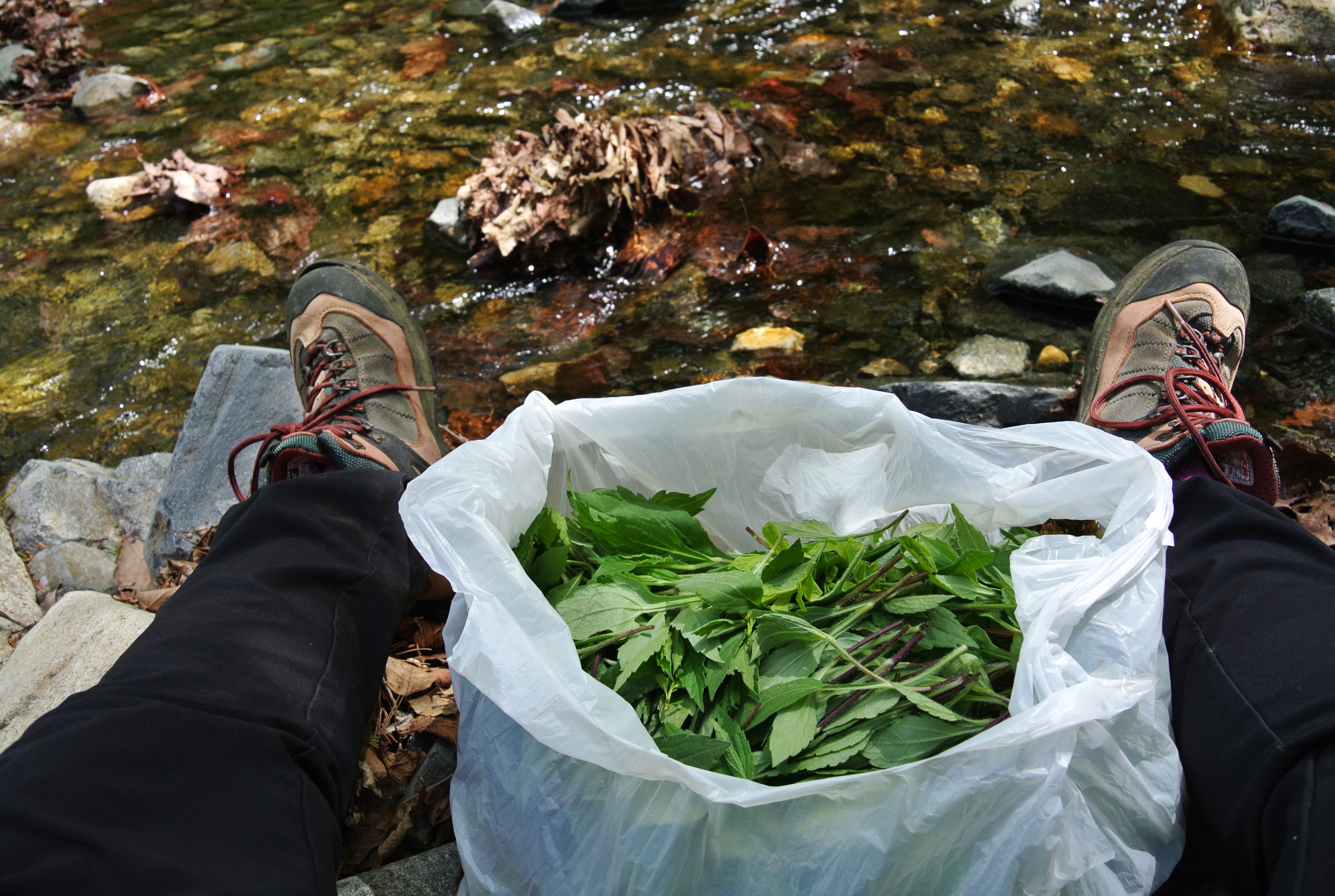 부지깽이나물 한봉지 뜯어 계곡 물가에서 쉬어가는데
