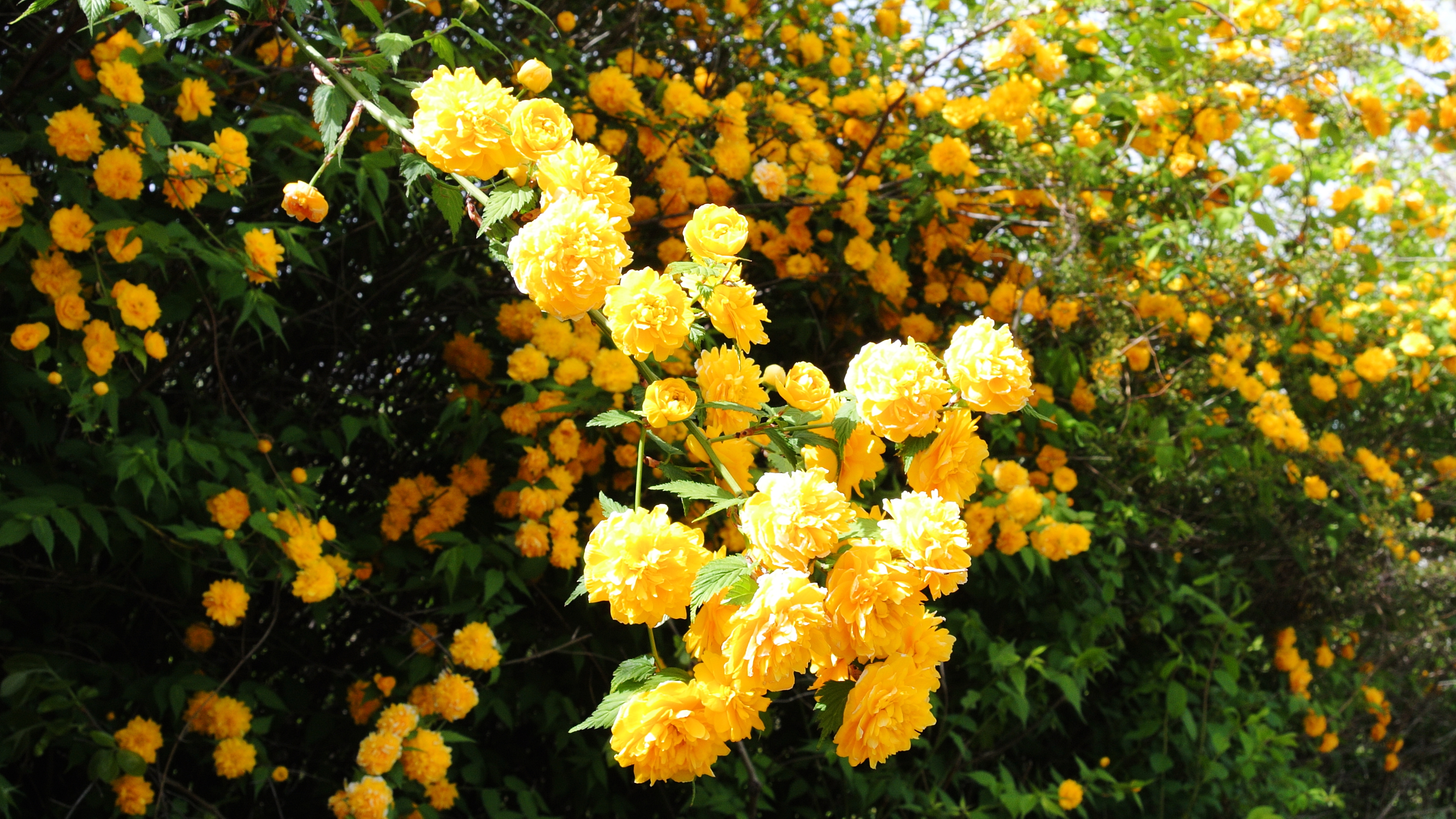 탐스럽게 예쁘게 피어있던 죽단화 꽃길