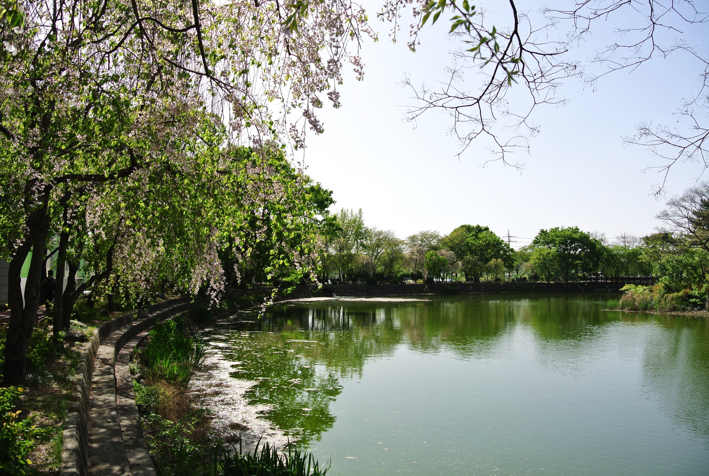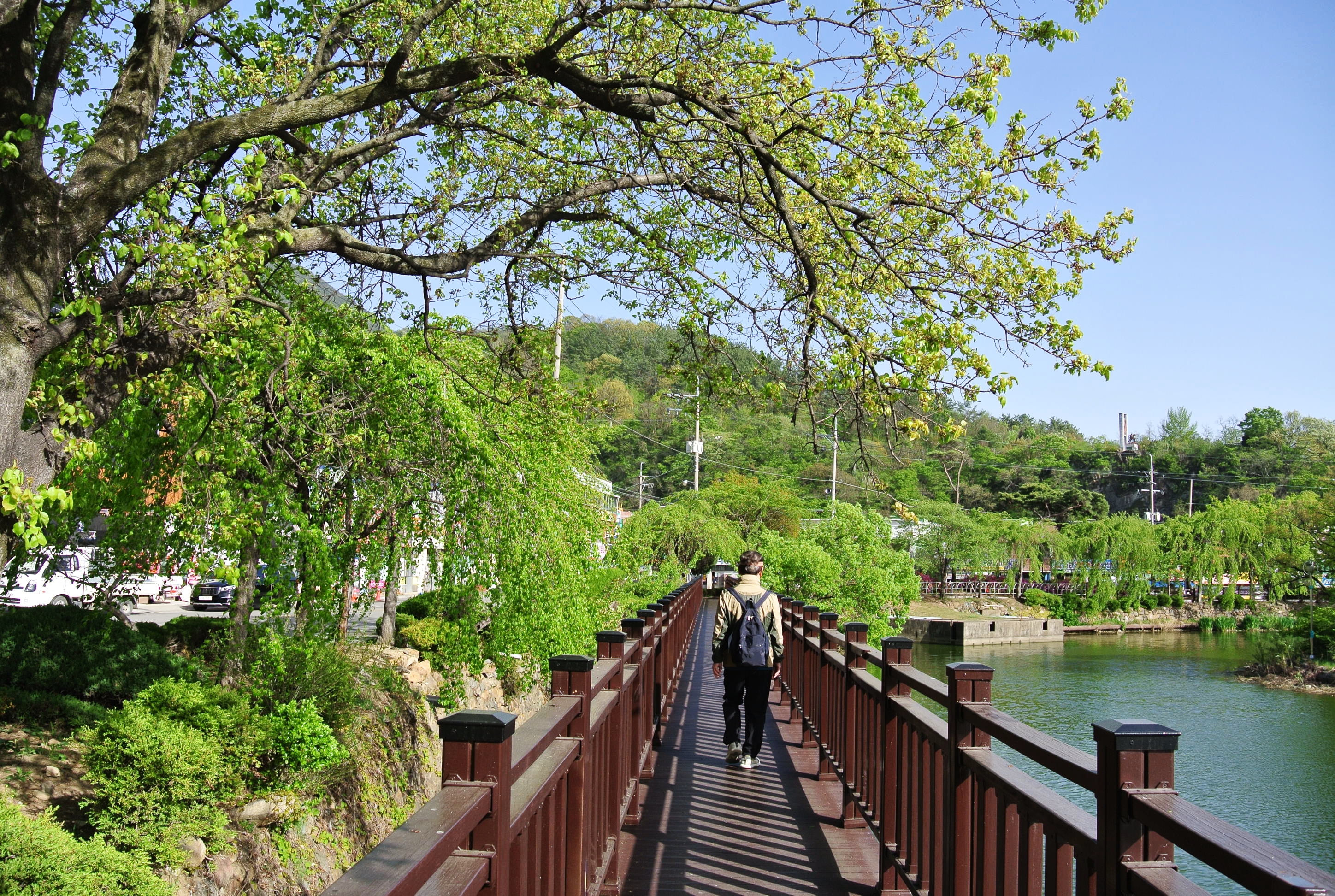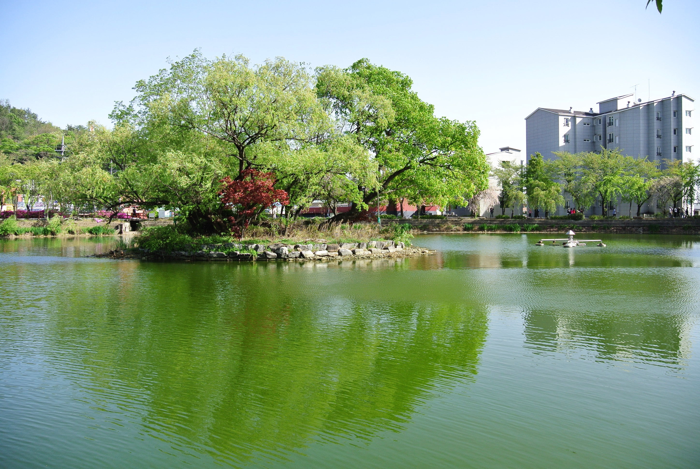 연못가 벤치에 앉아 있는 동네 어르신들이 있어 한가롭게 보였고