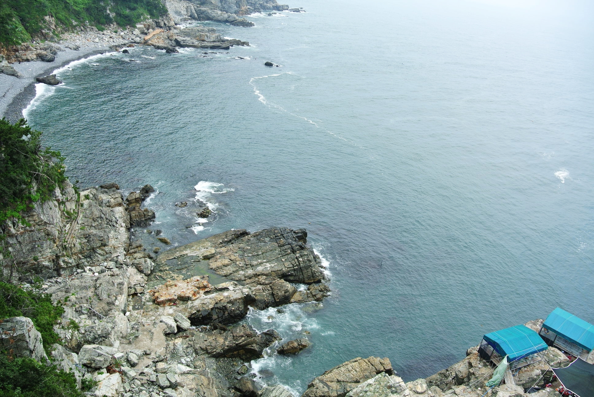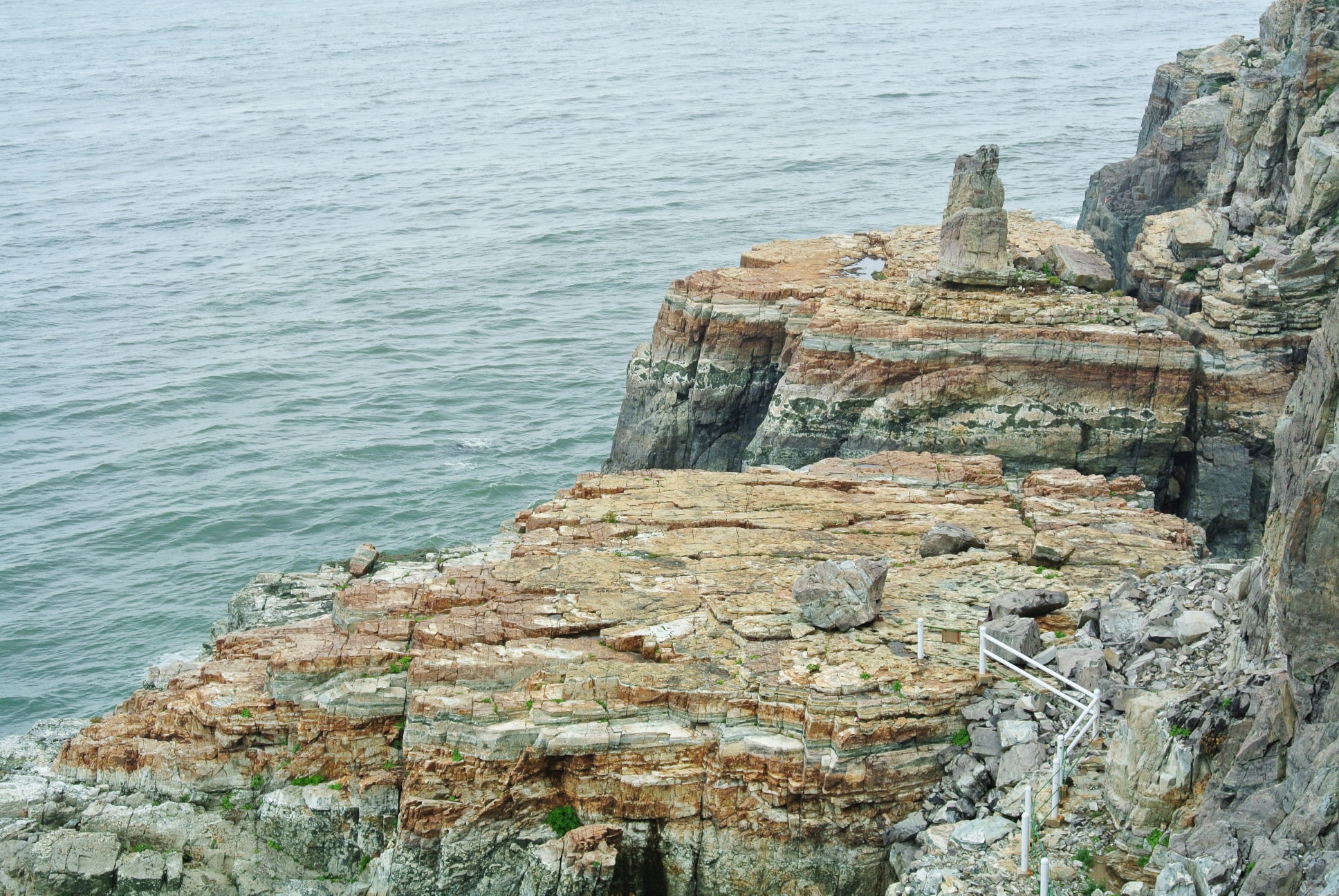 촛대바위와 마당바위 층층이 돌 색이 달라서 지질학적으로 학문이 될수 있는 바위라고 ...