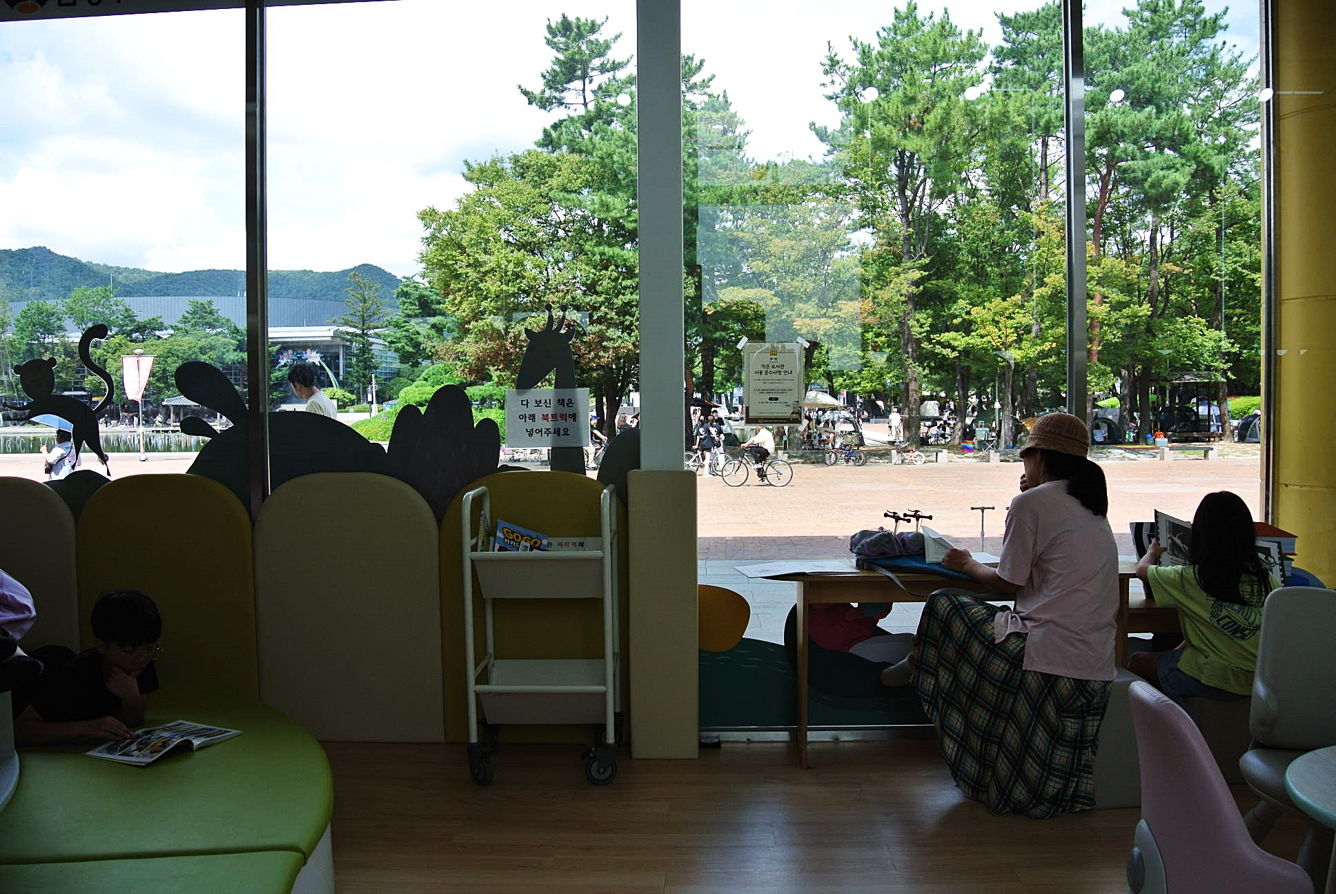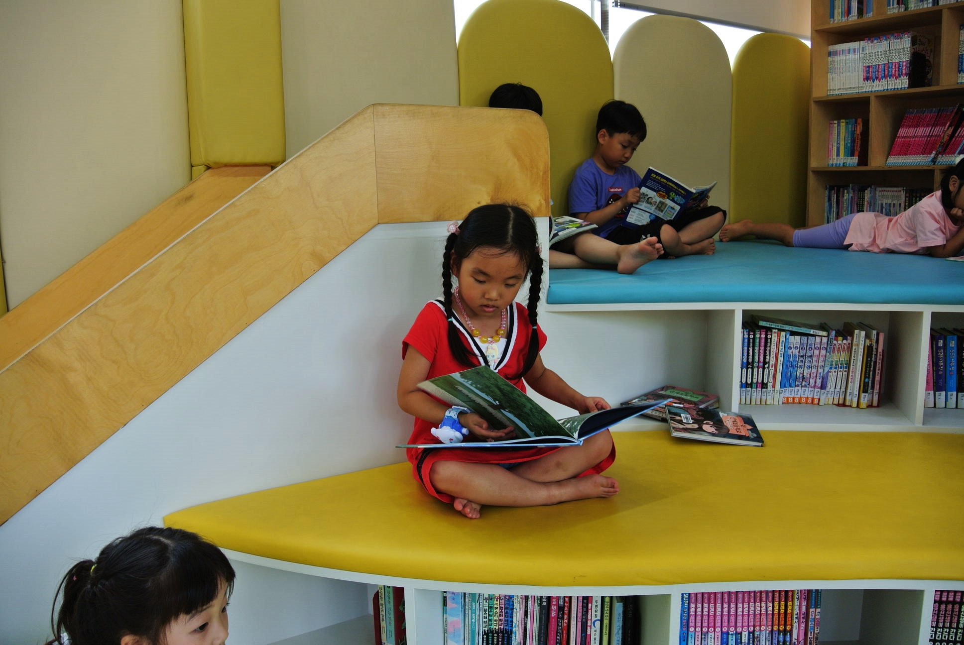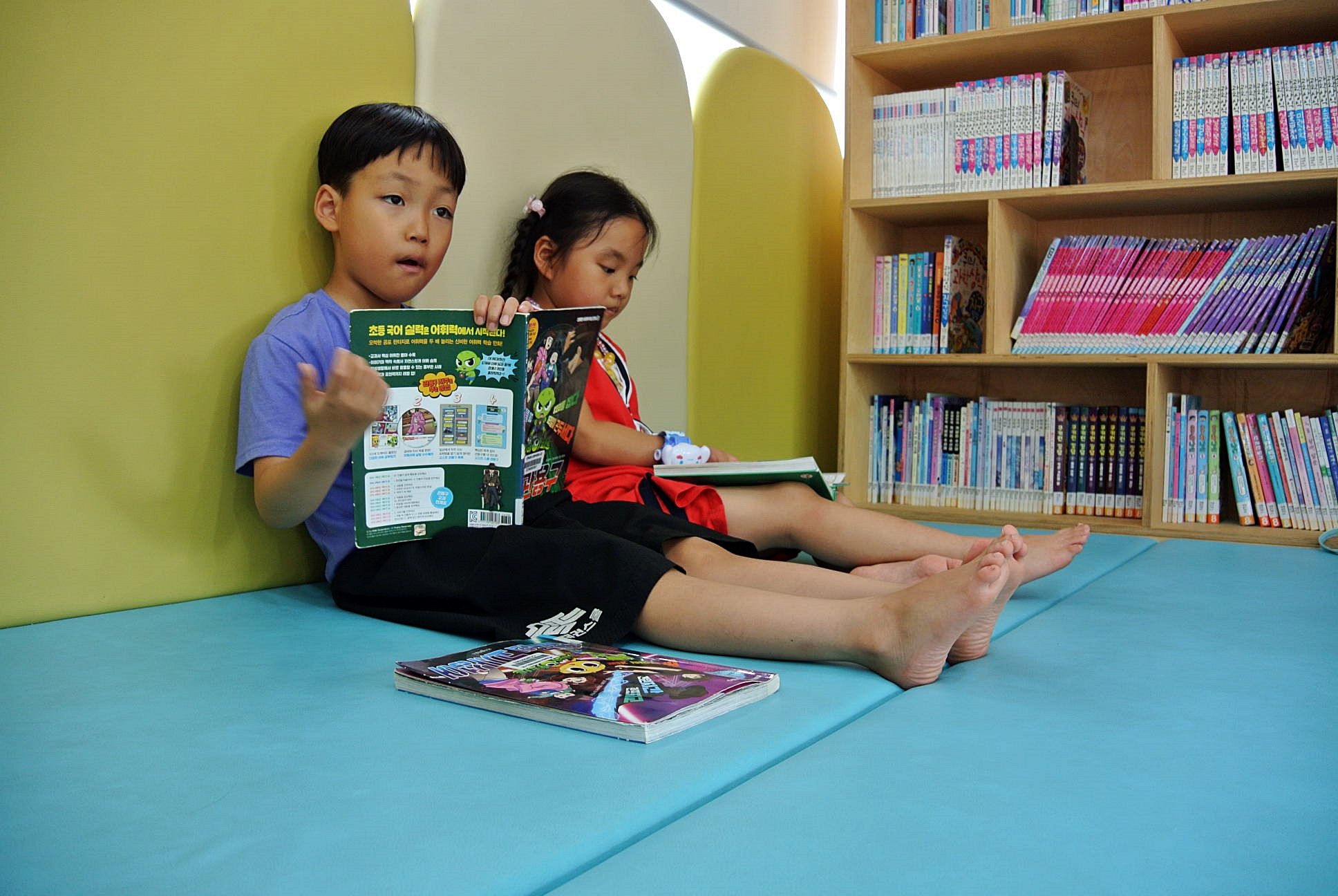 도서관 안에 들어 왔더니 시원하면서 조용하게 책 읽는 아이들이 많았다