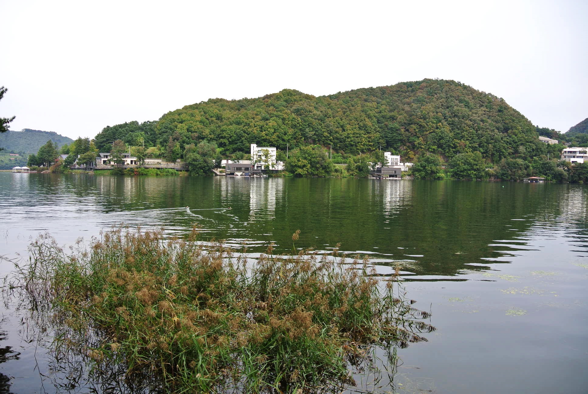 청평호수가로 집들이 나란히 있으니 좋아 보이고 ...