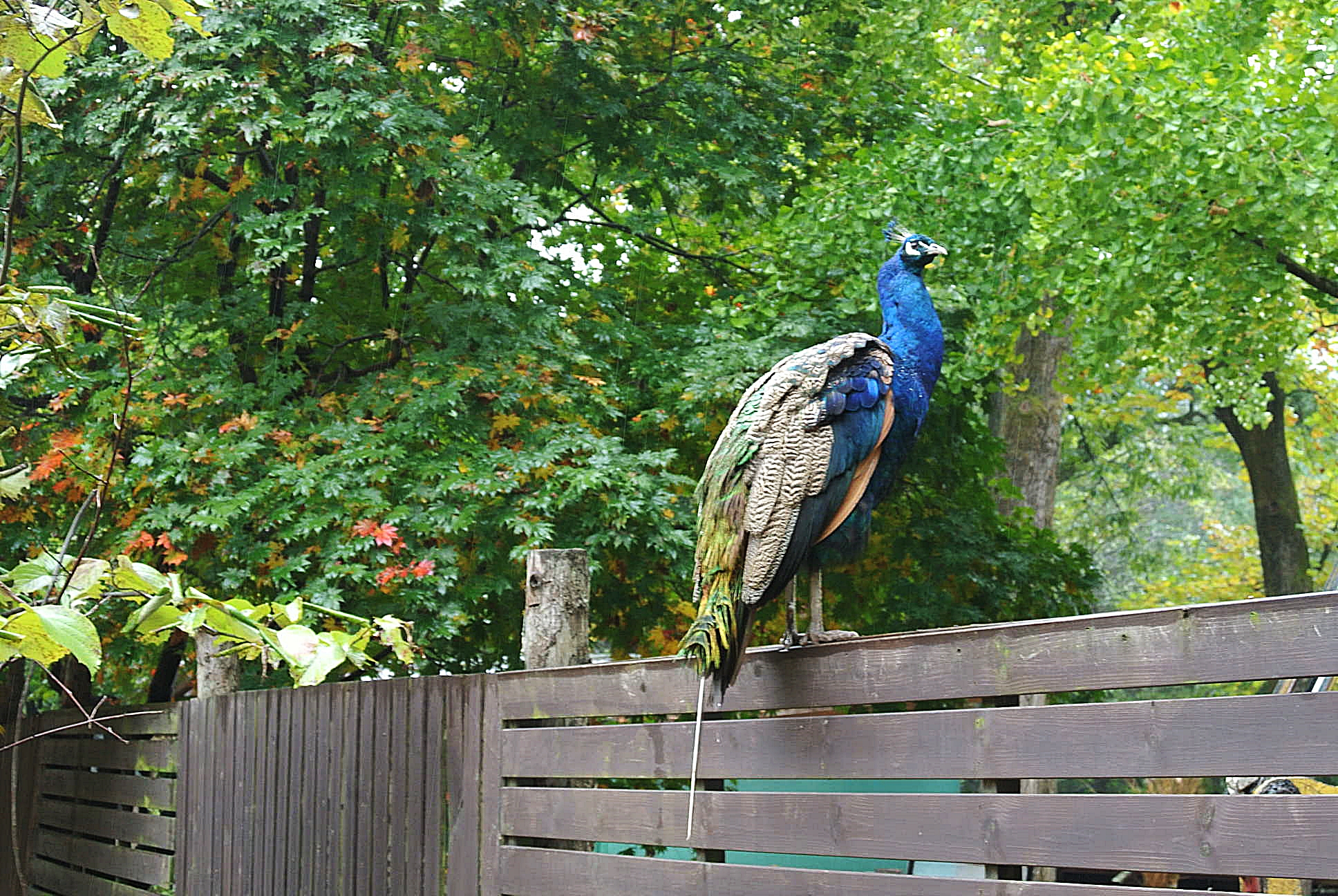 공작새도 앉아서 비를 쫄딱 맞고 있네.
