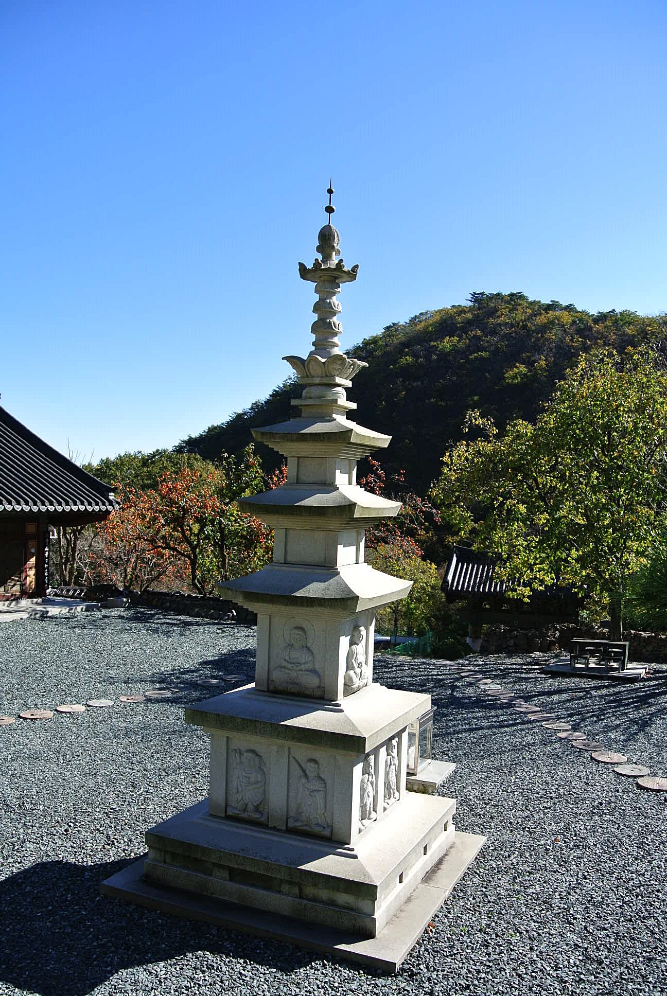 마당에 삼층석탑