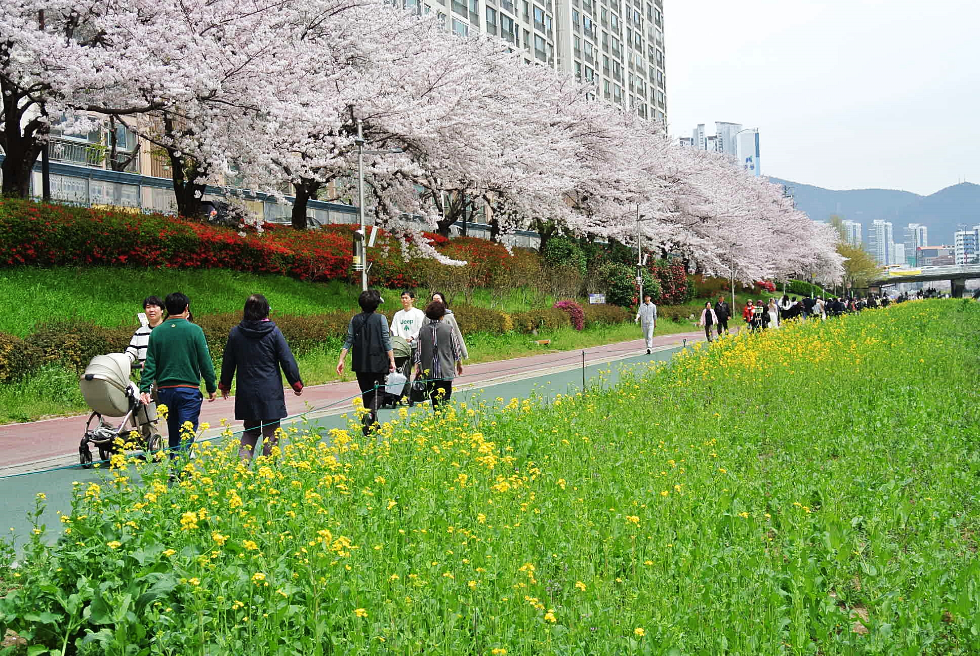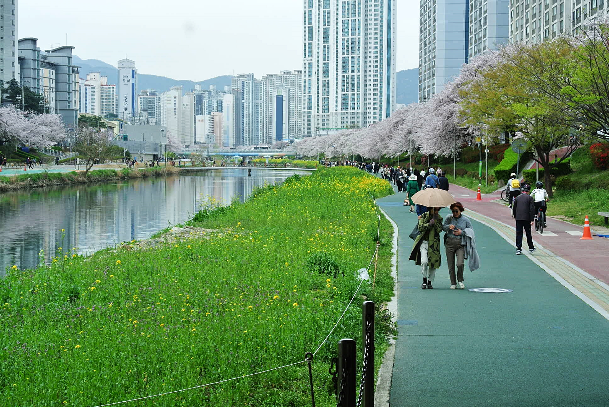 나가보지 않을수가 없어서 온천천 벗꽃과 유채꽃을 보려고 길을 나서 본다
