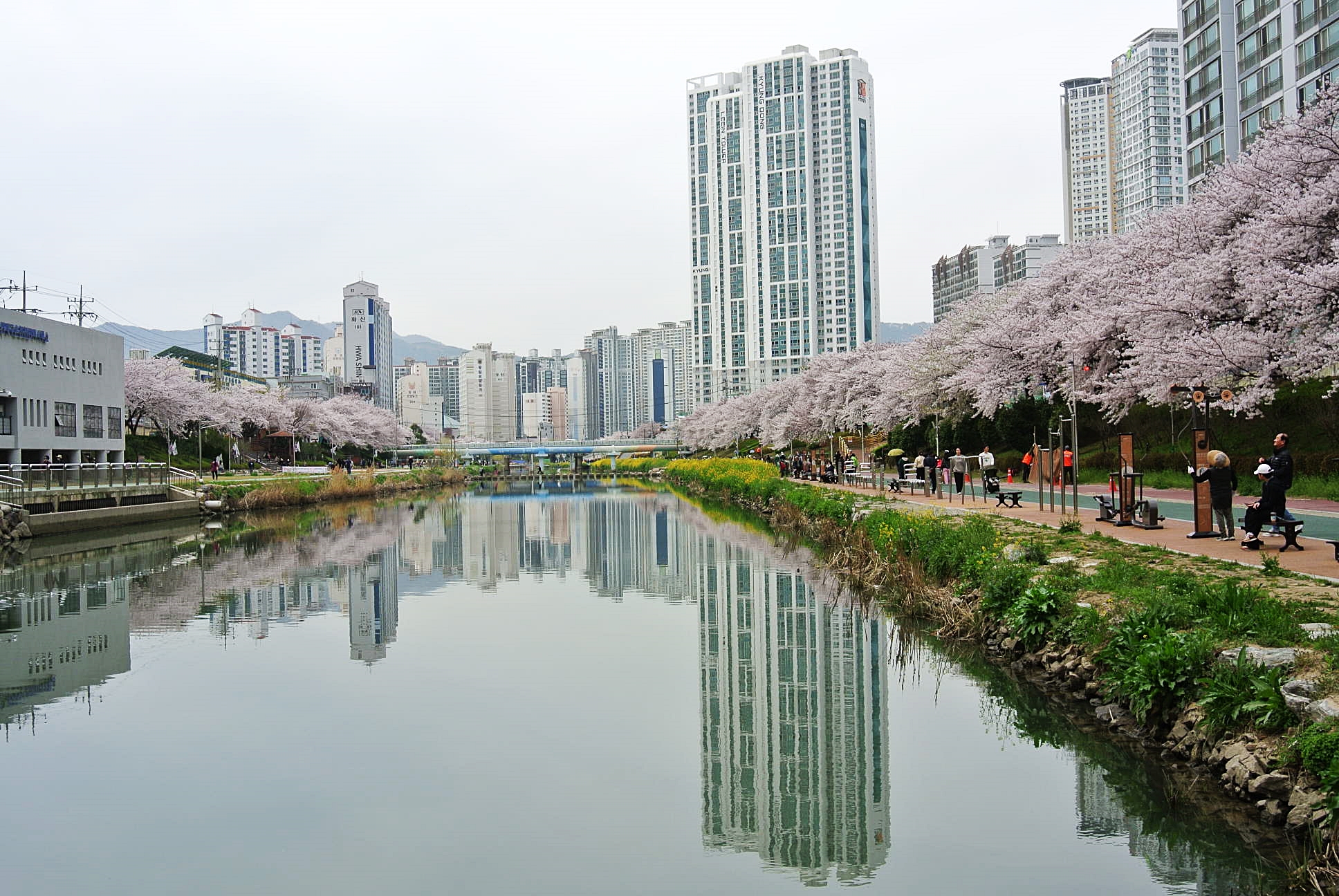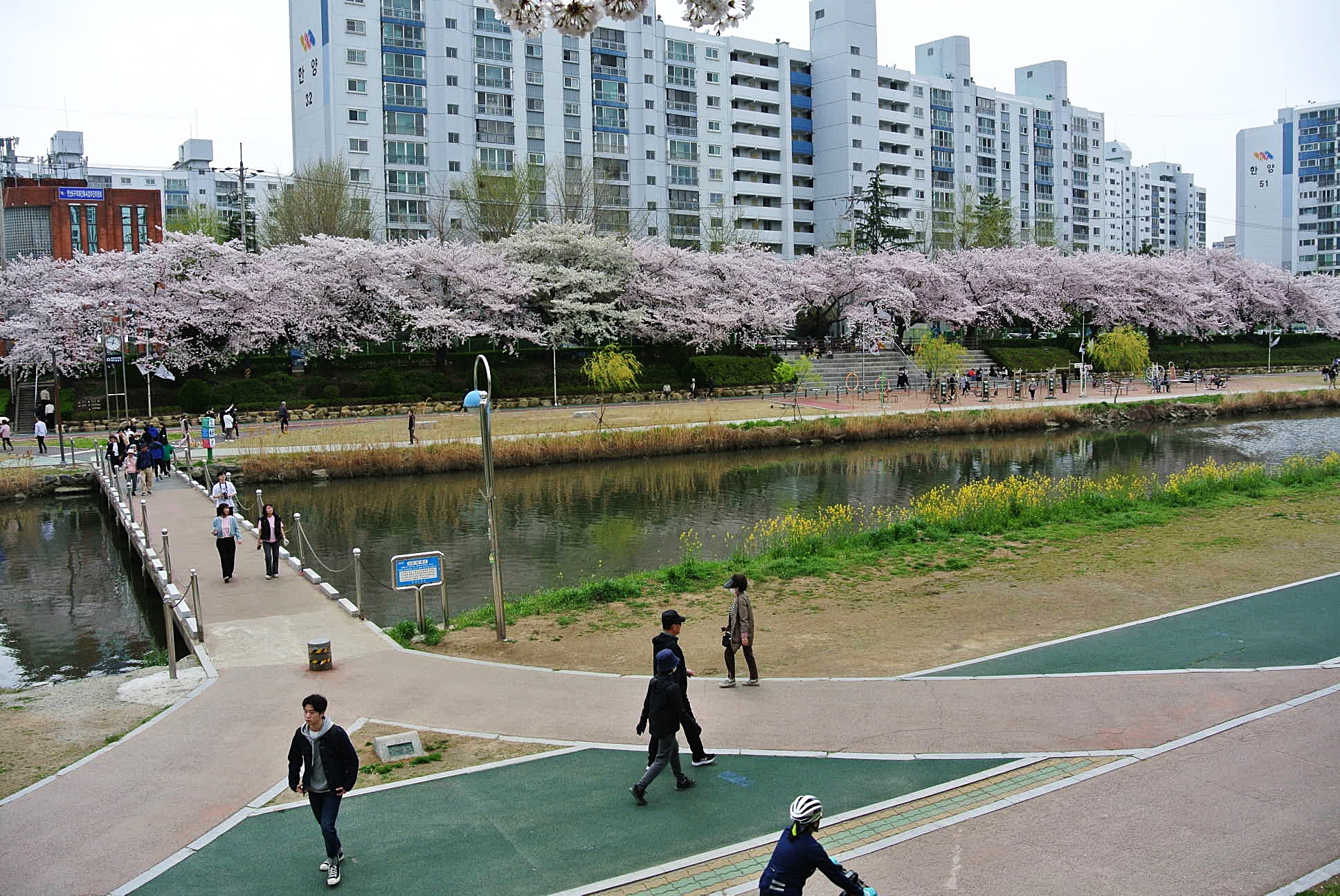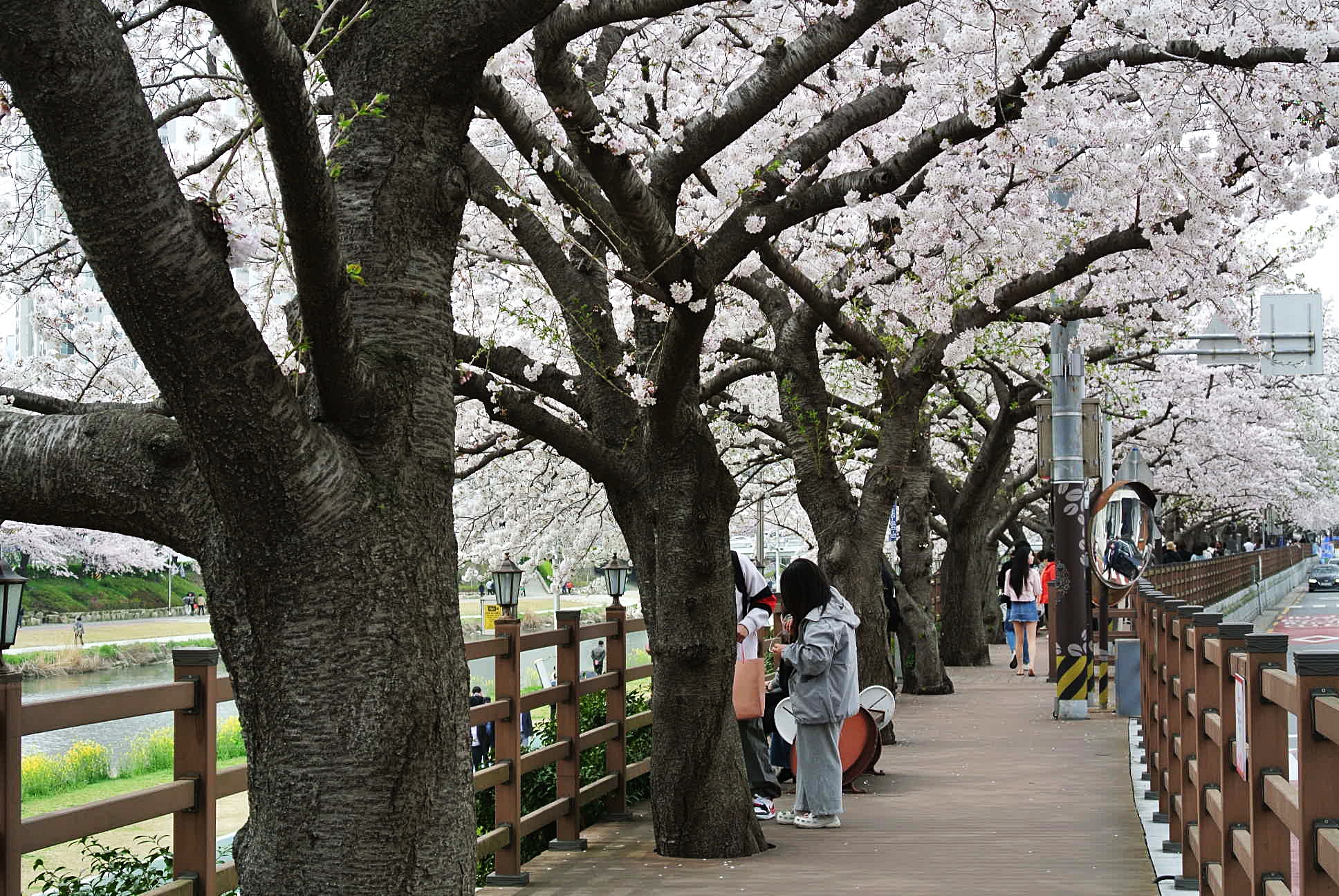 만개하여 절정을 이루고 있는 온천천 벗꽃길 걷는 사람들이 많았다